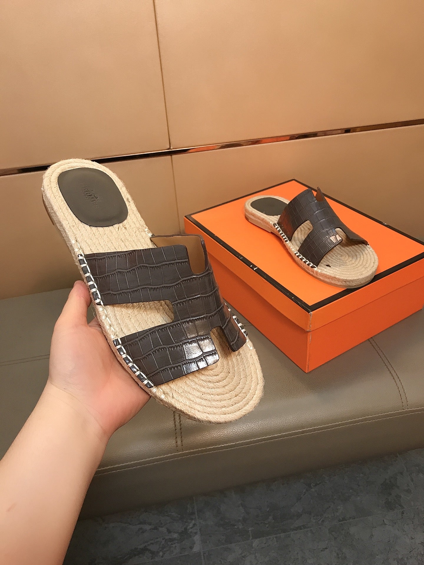 HM Men's Antigua Espadrille Dark Grey Embossed Cowhide 704136