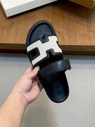 HM Men's Chypre Sandals White Black Cowhide 642697