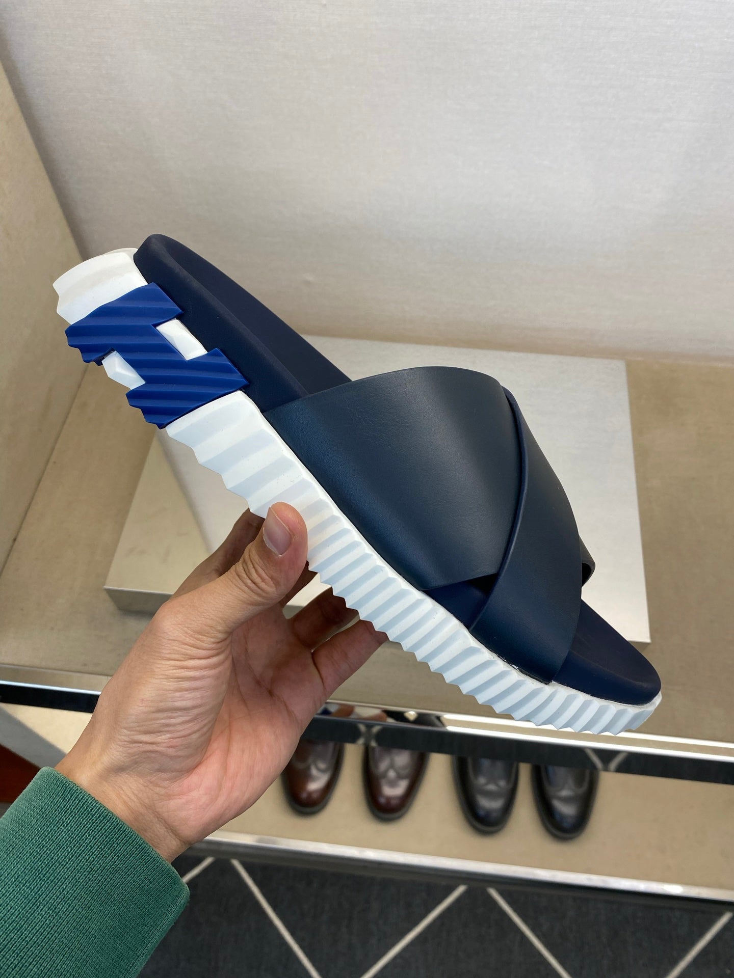 HM Men's Infra Slide Navy Blue Calfskin 602611