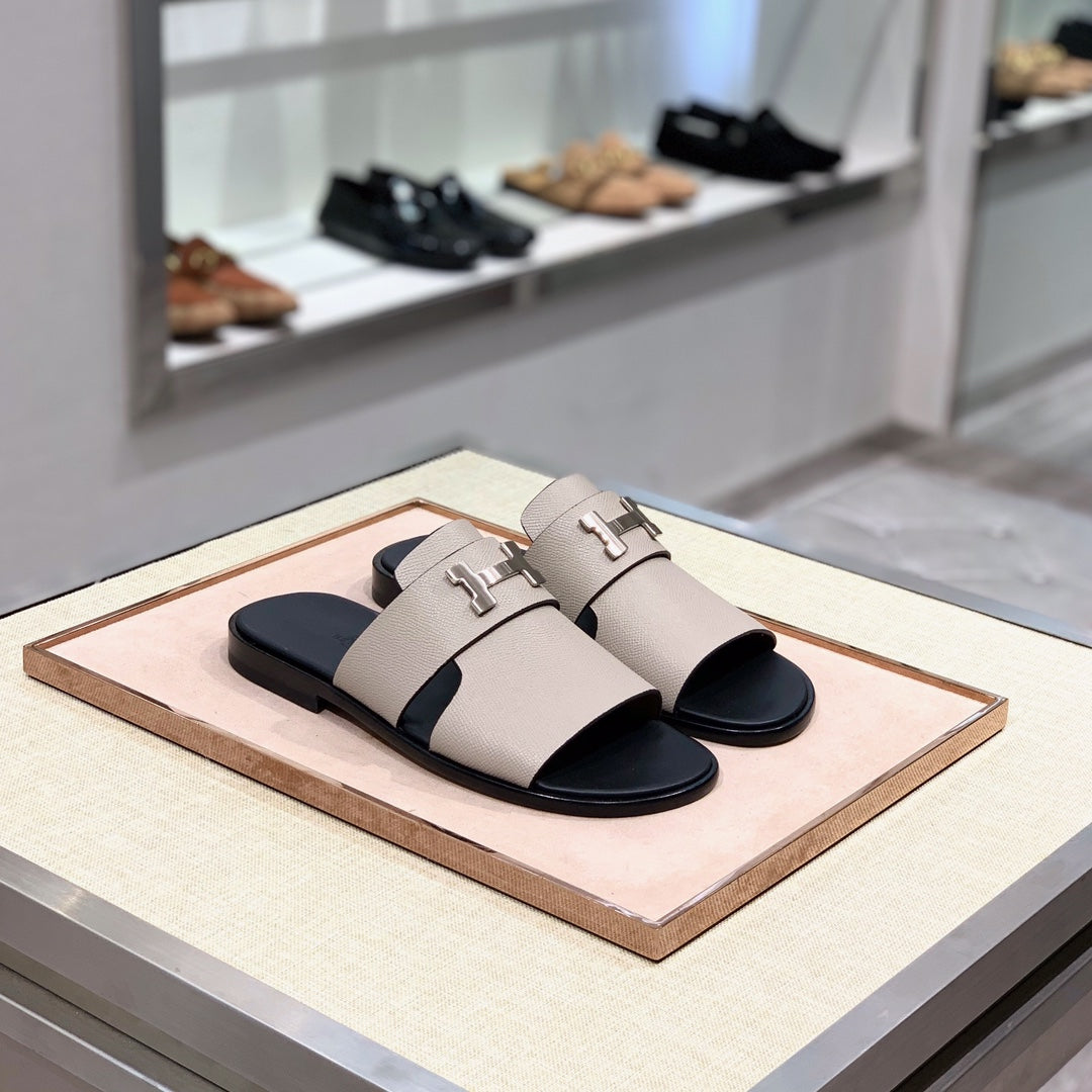 HM Men's Slide Beige Cowhide 567151