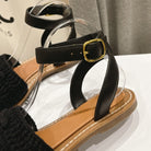 LYMPIA SANDAL IN TRIOMPHE MACCRAMÉ COTTON & CALFSKIN BLACK