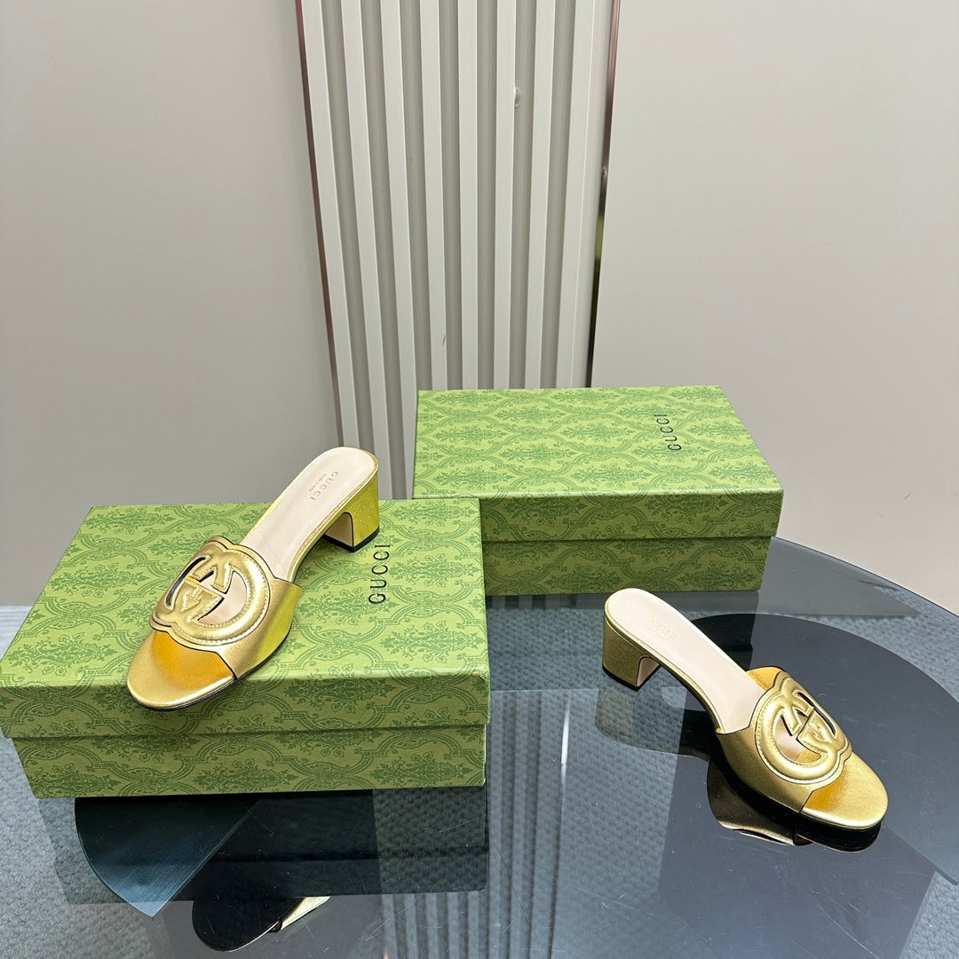 MID-HEEL 5 CM MULE IN GOLDEN CALFSKIN