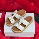 Sandal Flat White Brown Canvas