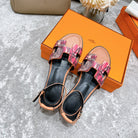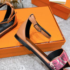 • Material: Sandal in Clafskin with straight cut edges, "H" cut-out detail and thin ankle strap.