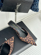 SL BARBARA MULES 55 LEOPARD MOTIF SATIN