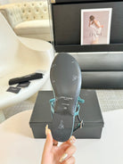 SL Silk Bow T-Strap Flat Sandals Cloud Blue Leather