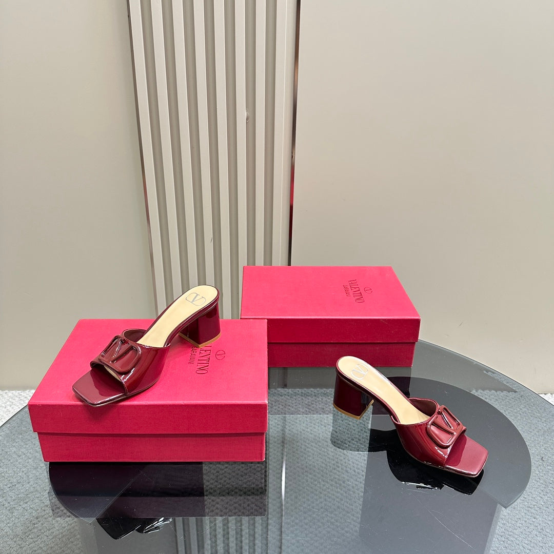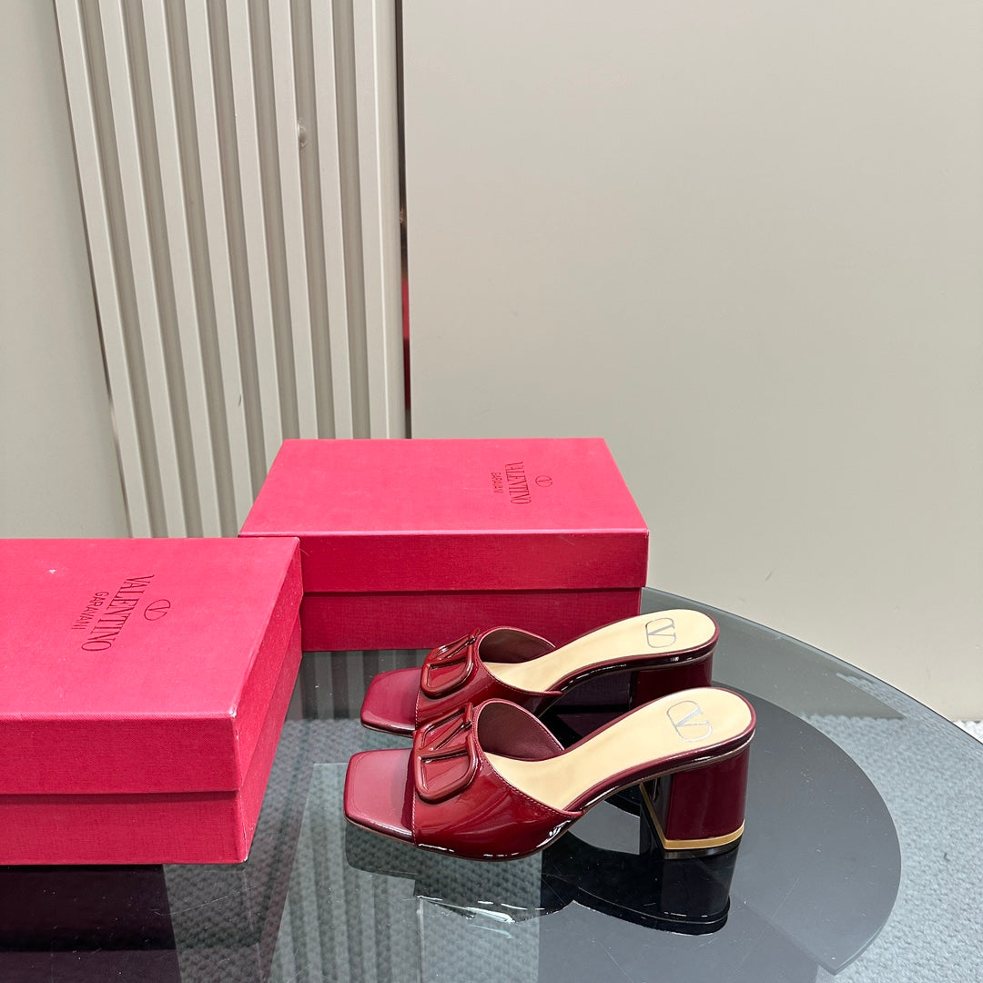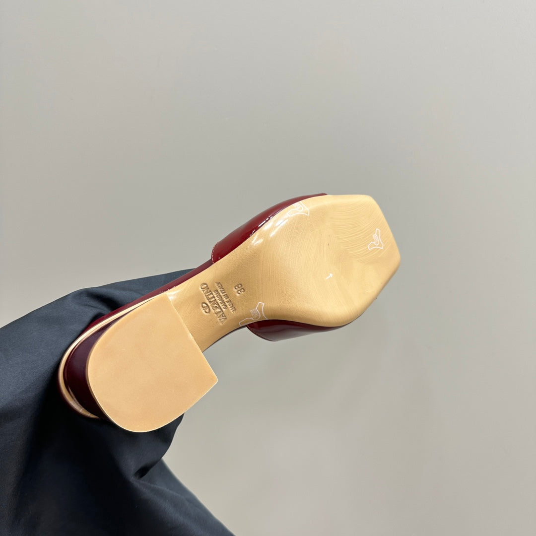 Vogo Signature High Shine Open Toe Sandals In Burgundy Glossy Lambskin 839829