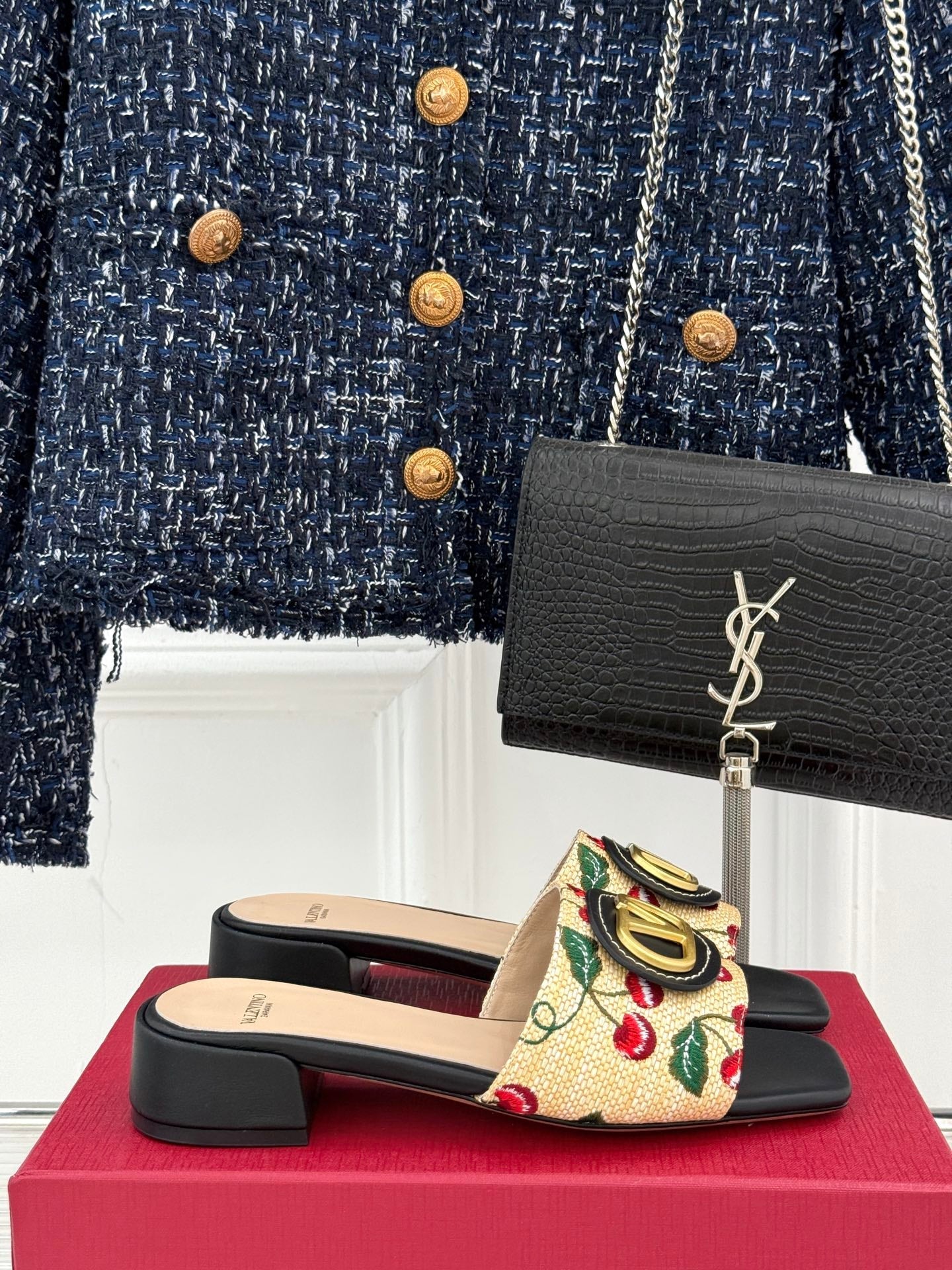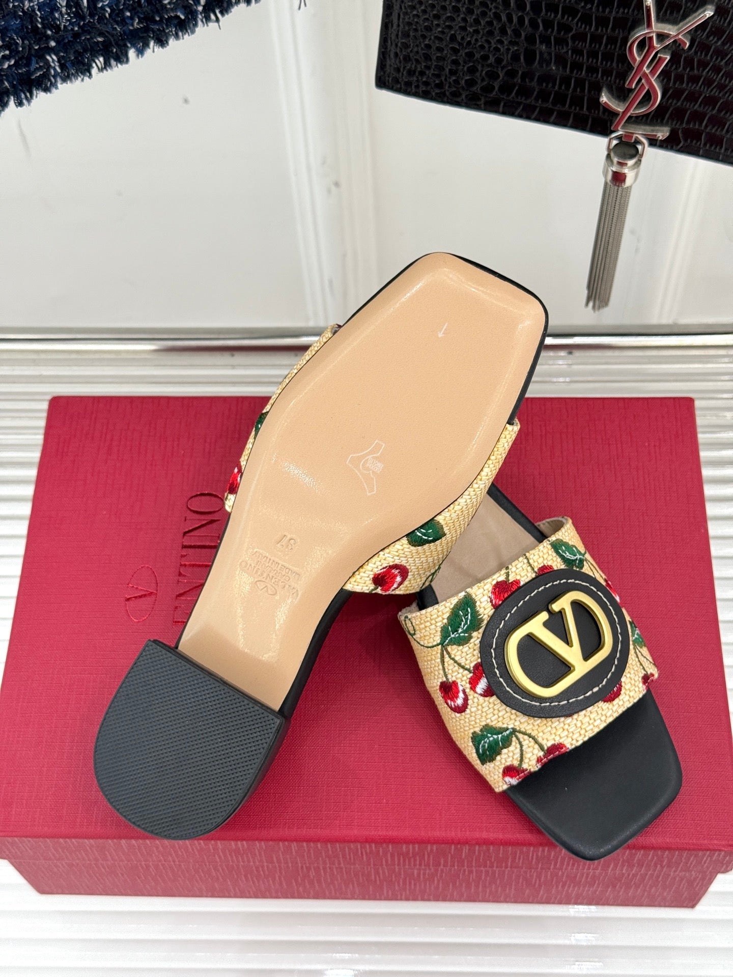 VT 25 Cherryfic Leather Trimmed Slides Black Sheepskin 286506