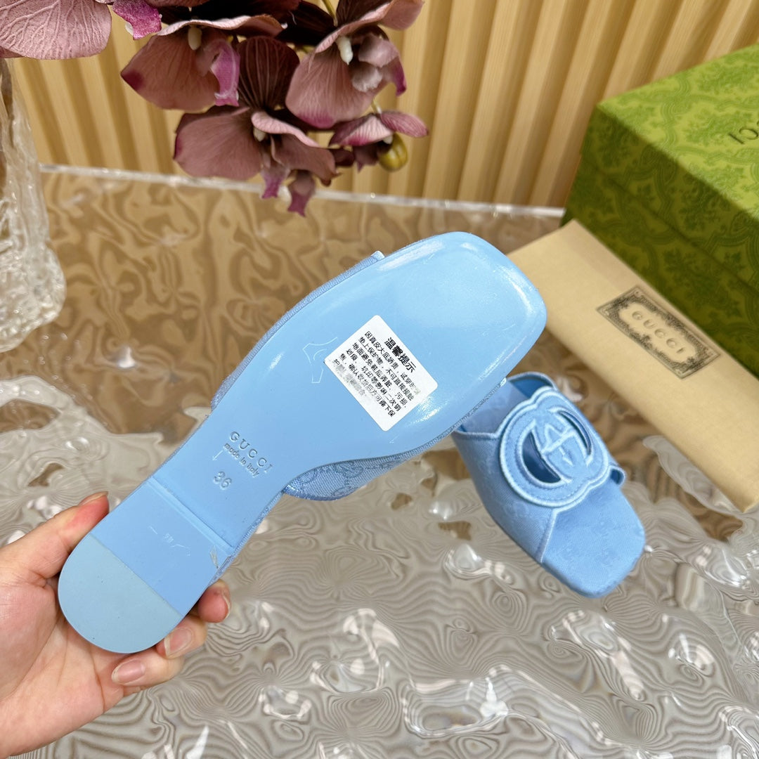 WOMEN'S INTERLOCKING G SLIDE SANDAL SKY CANVAS