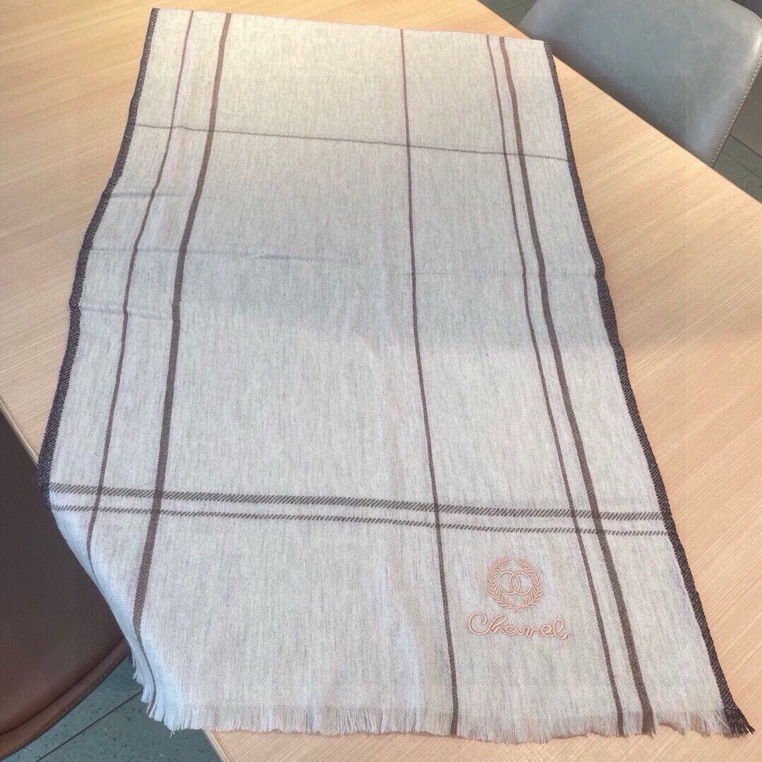 CC Scarf 190 CM In Light Grey With Brown Stripes Cashmere 411650