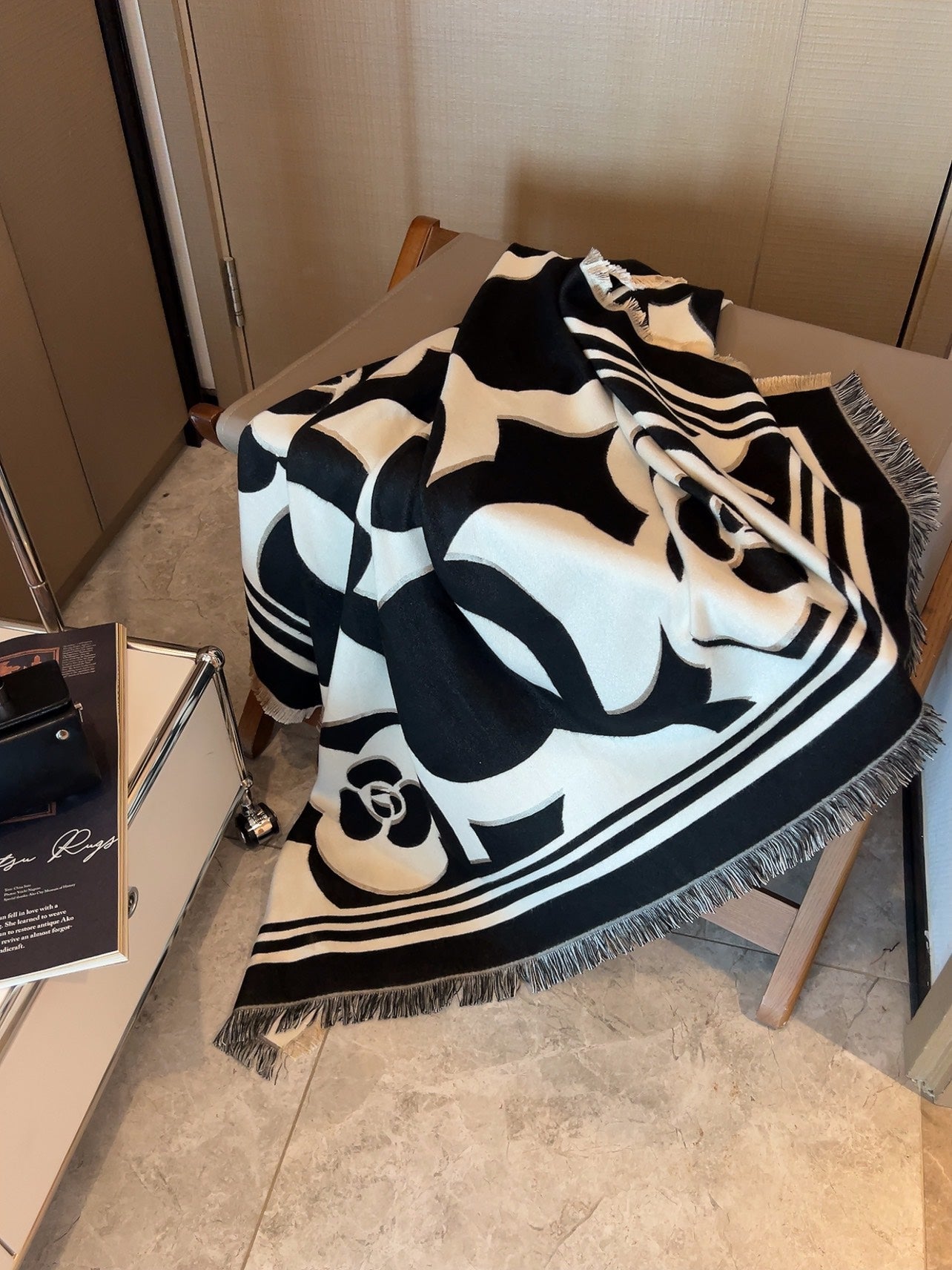 CC Square Scarf 140 CM In Black Mix White Cashmere 319061
