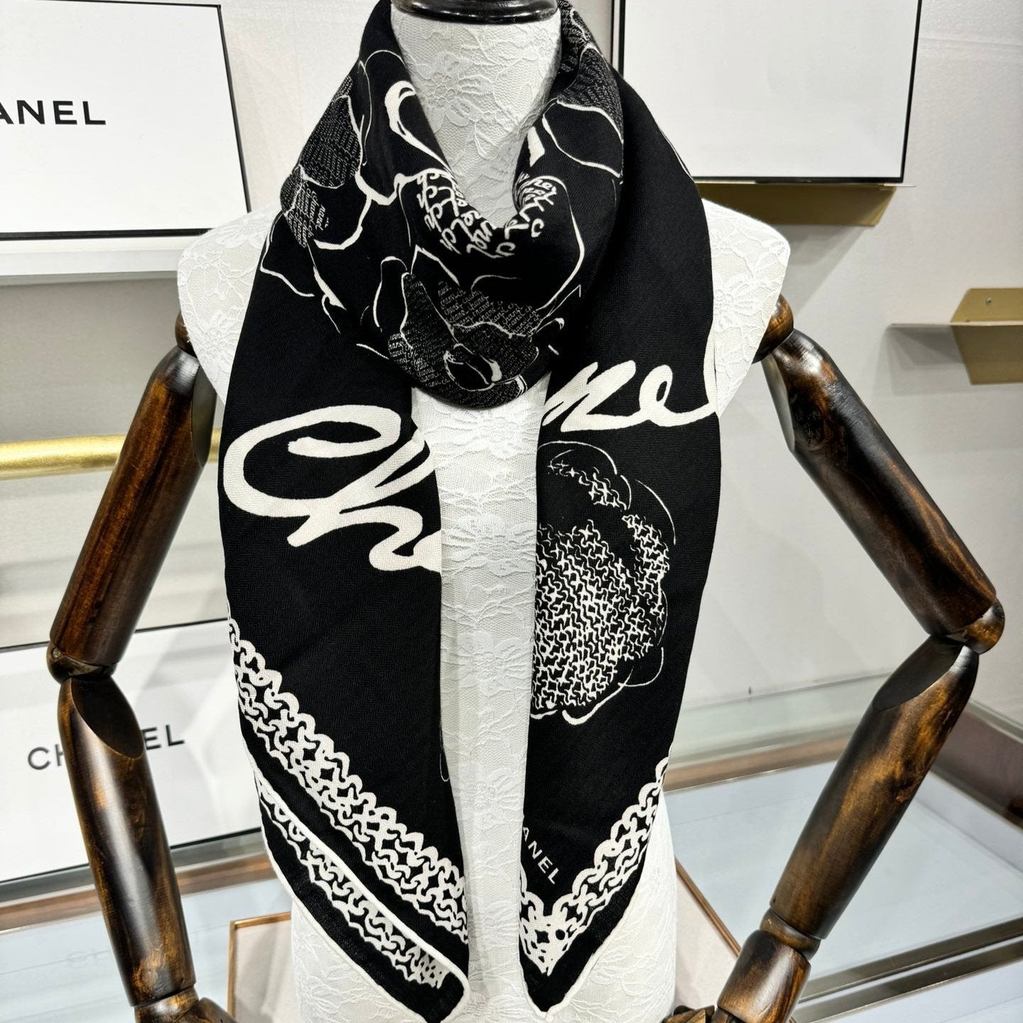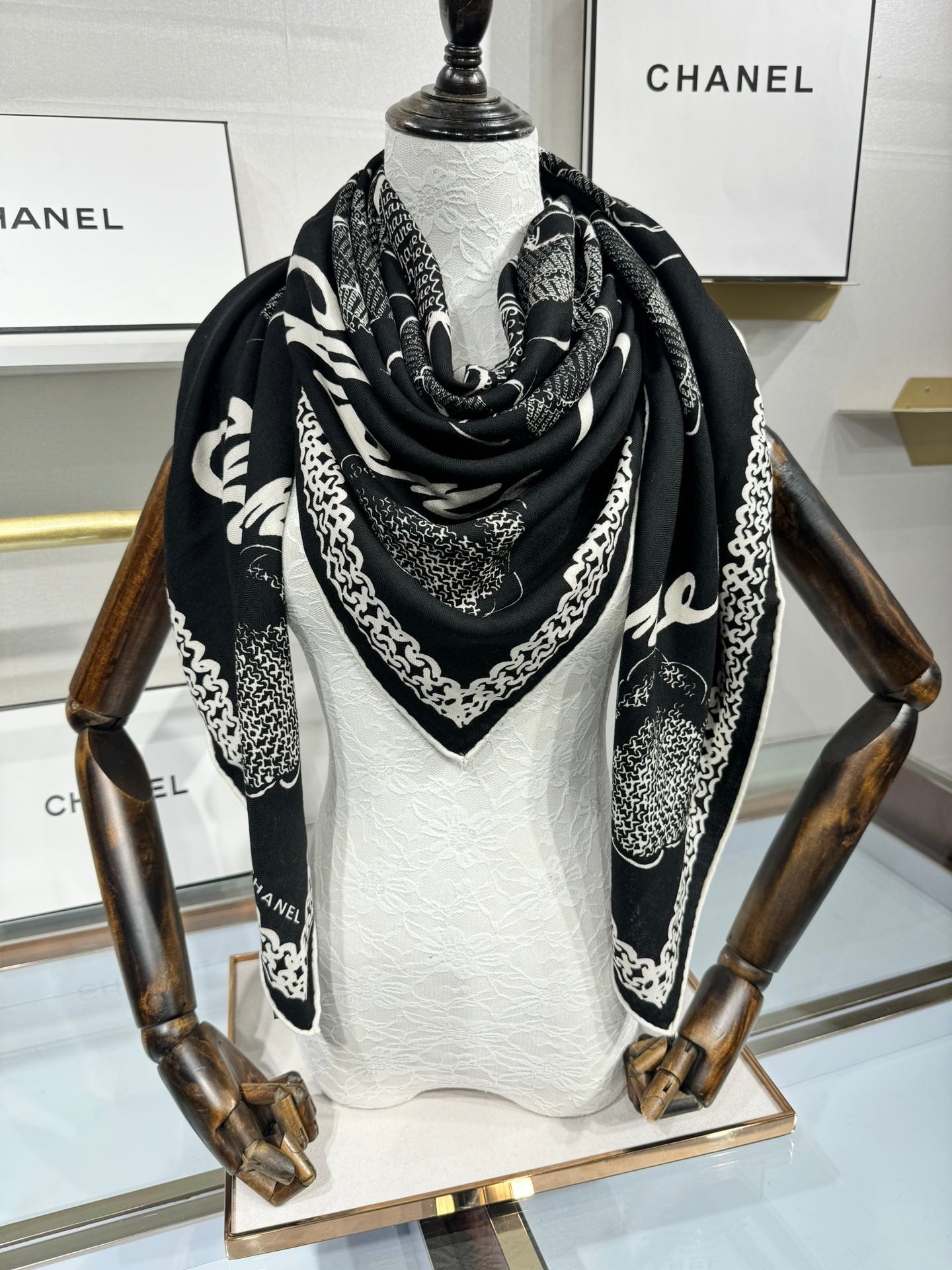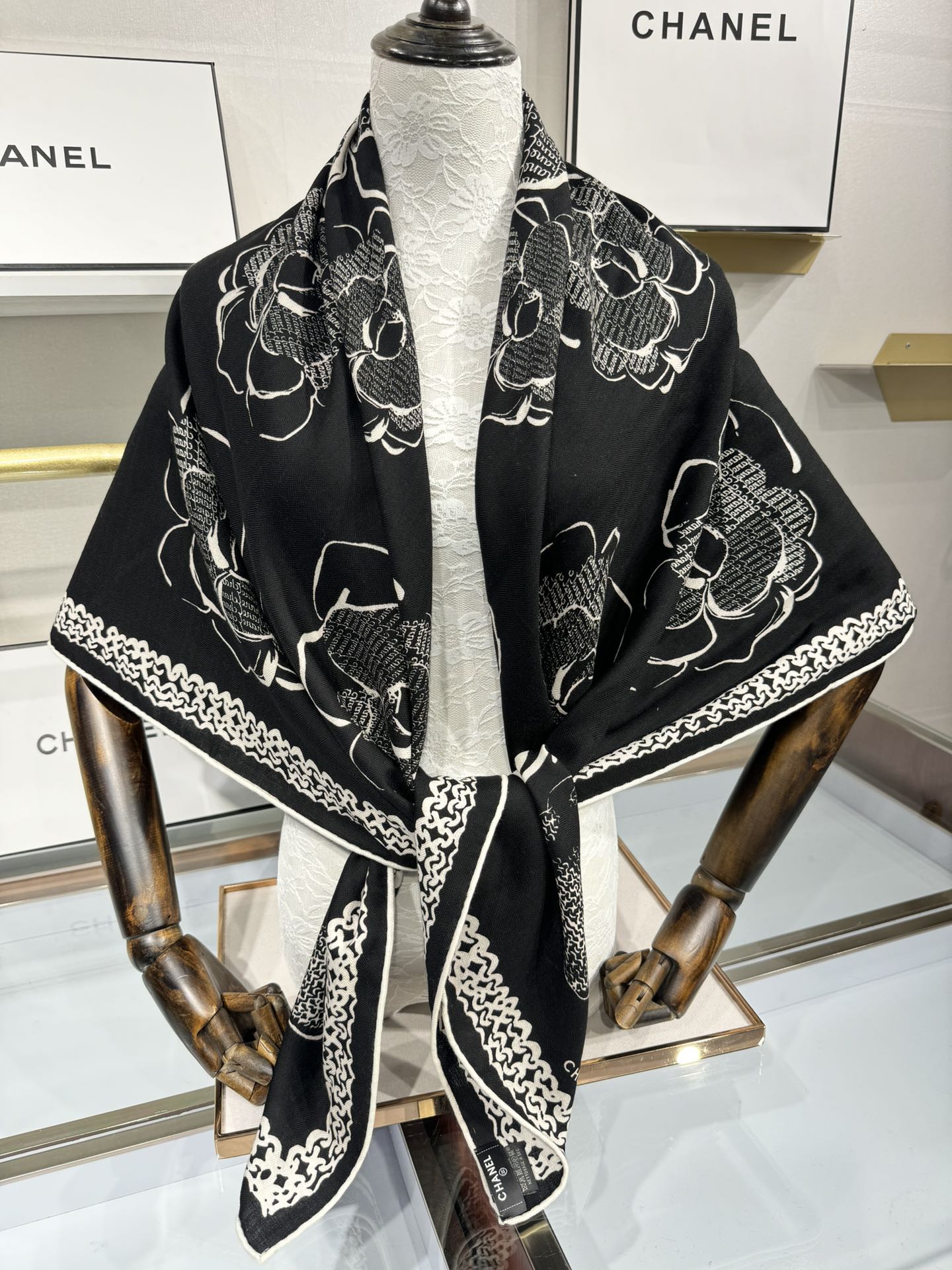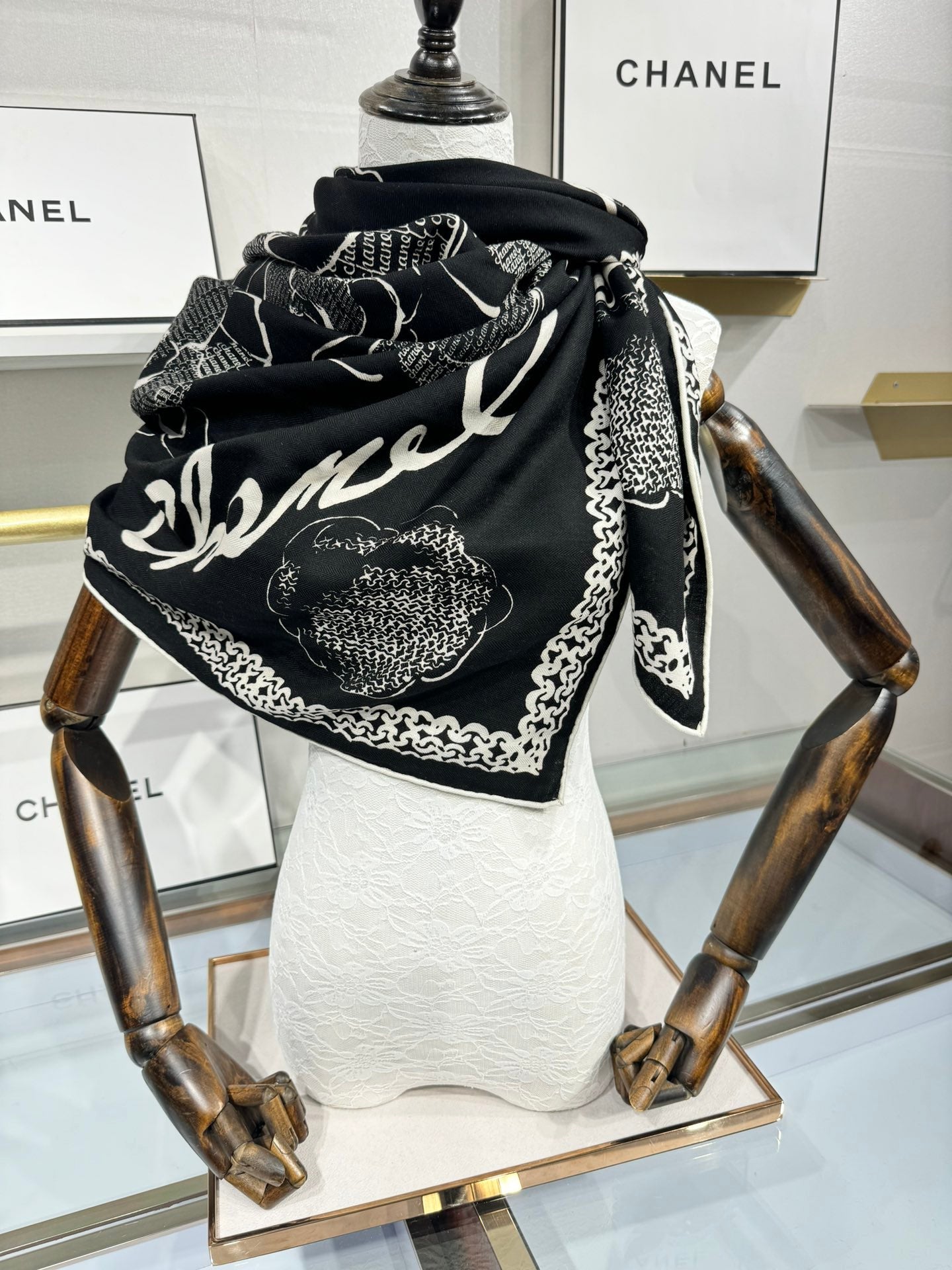 CC Square Scarf 140 CM In Black White Cashmere Silk 408418