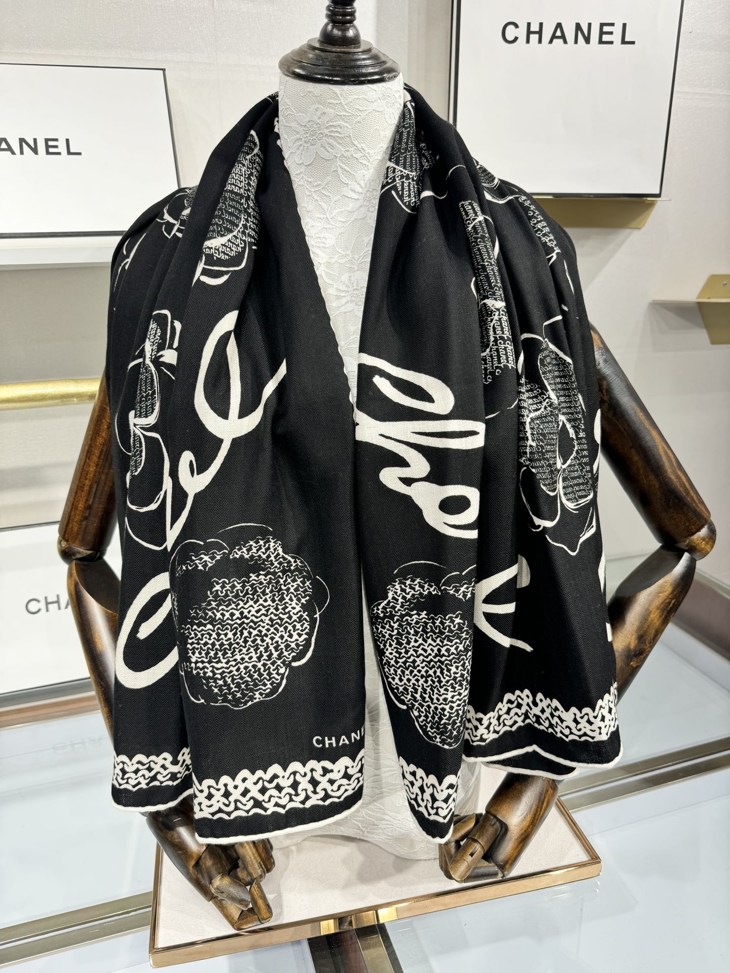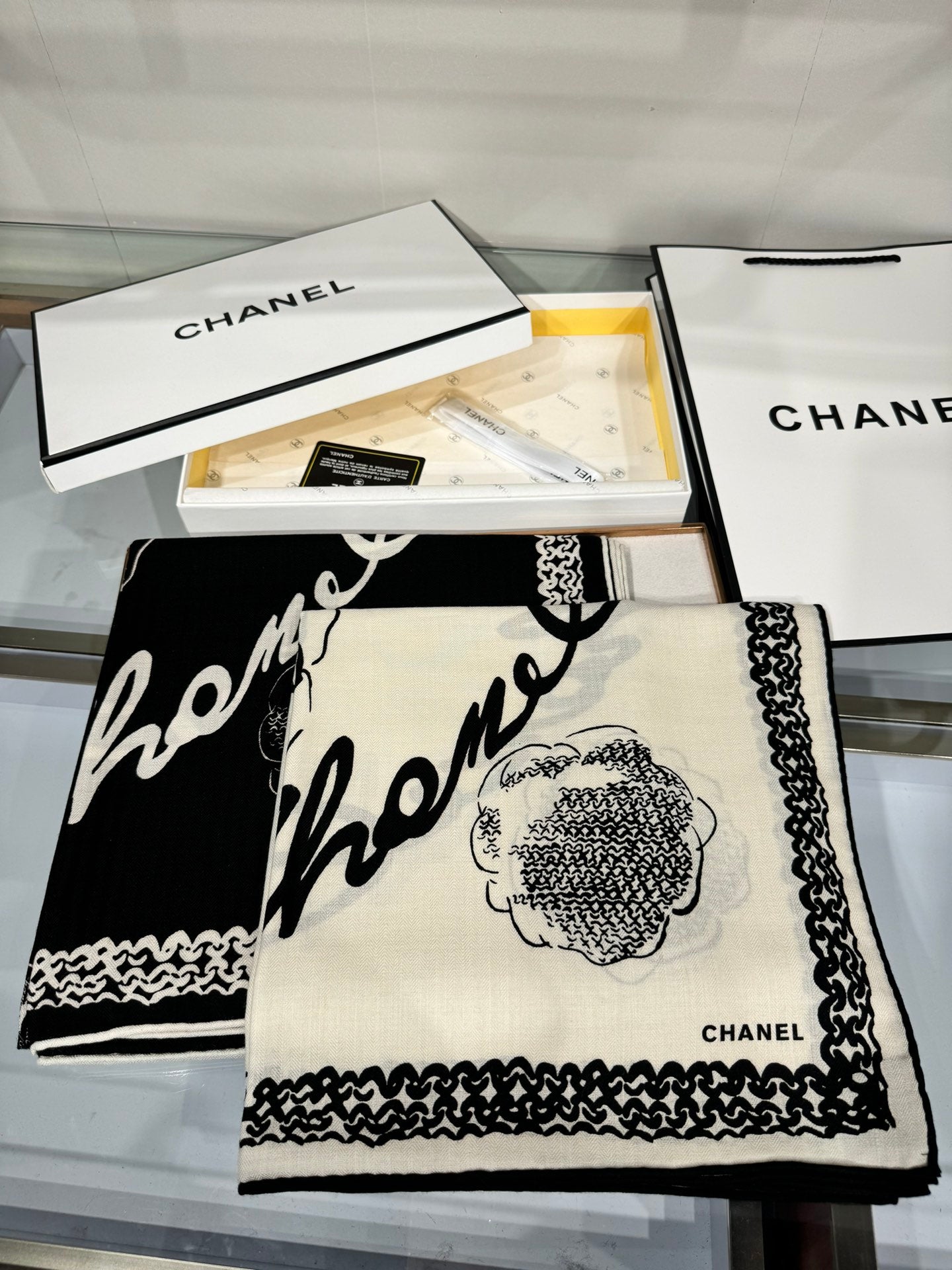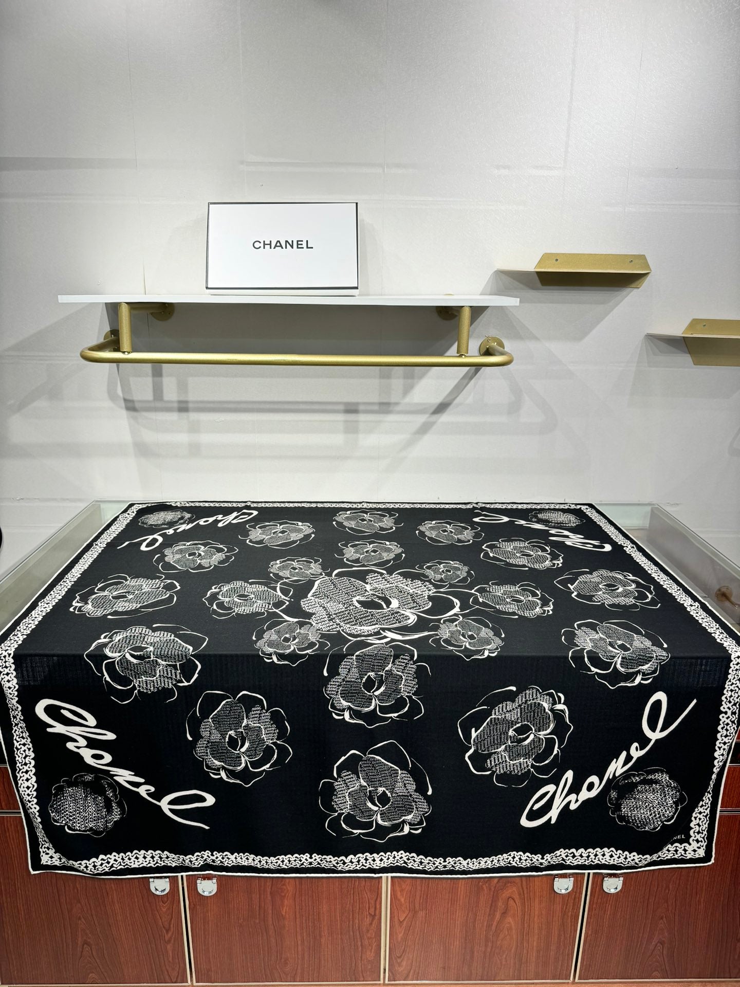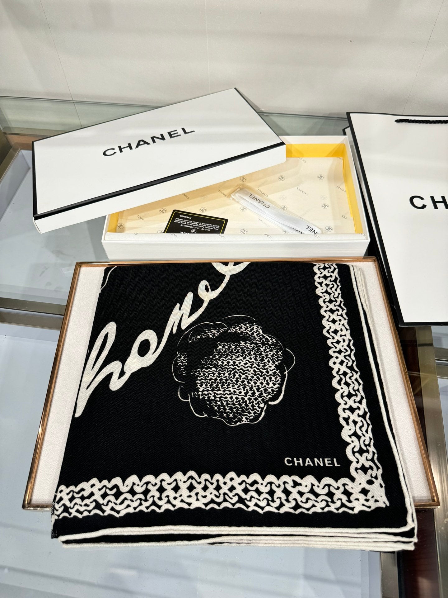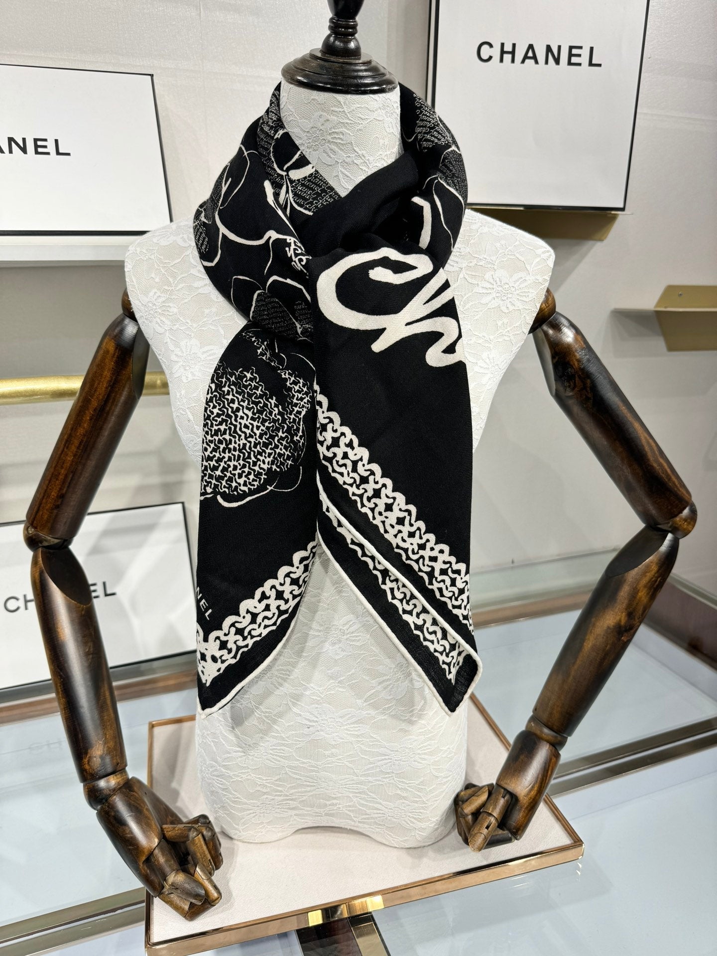 CC Square Scarf 140 CM In Black White Cashmere Silk 408418