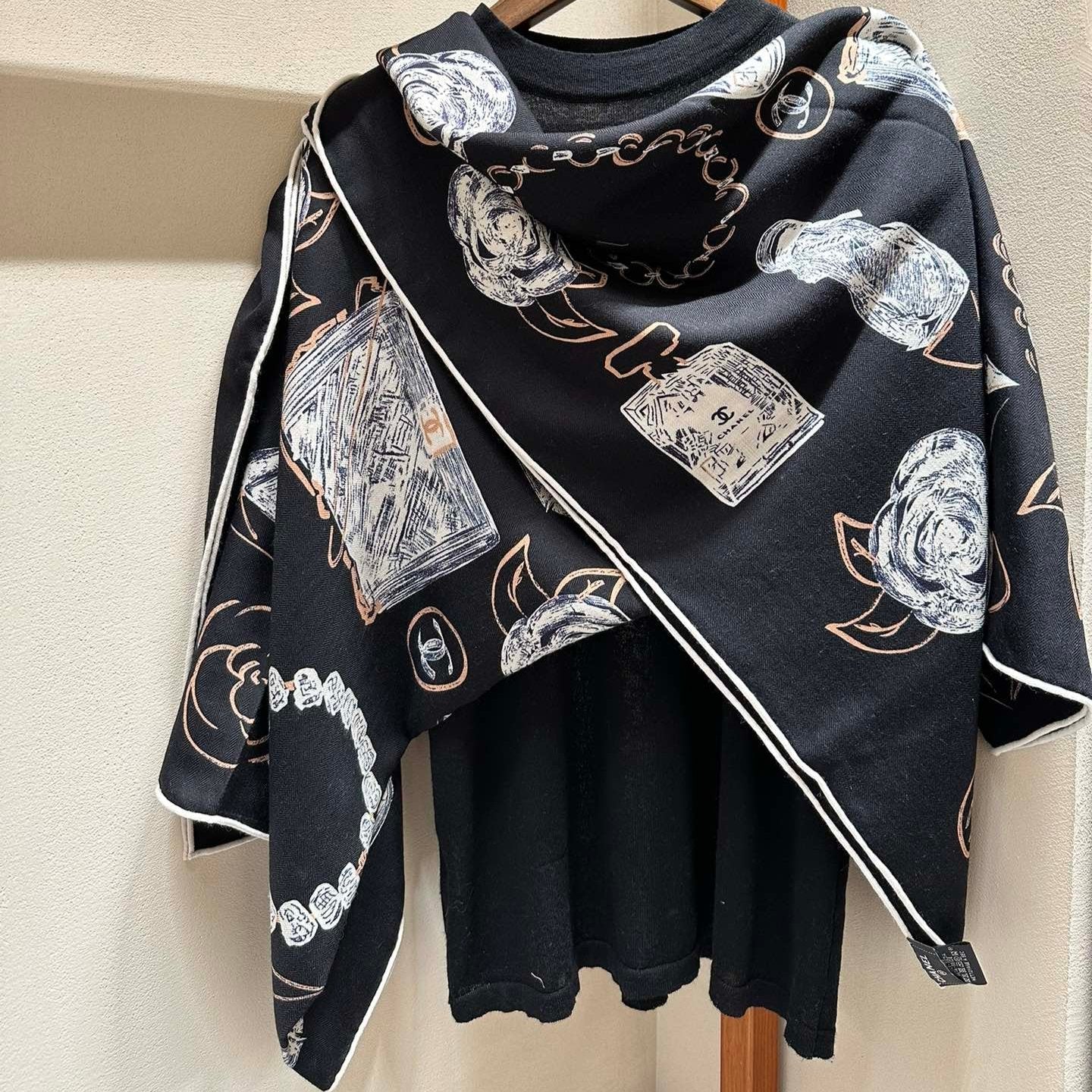 CC Square Scarf 140 CM In Black White Cashmere Silk 408655
