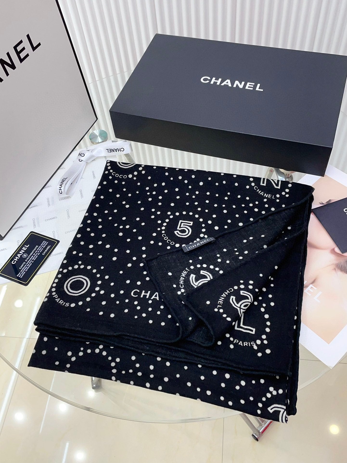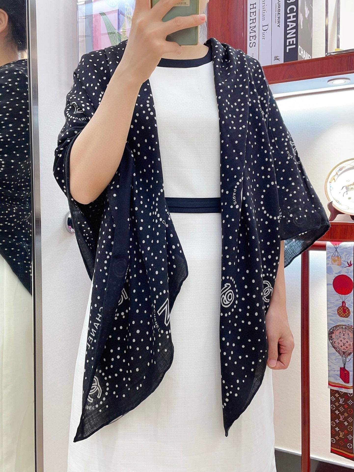 CC Square Scarf 140 CM In Black White Polka Dot Cashmere Silk 337147