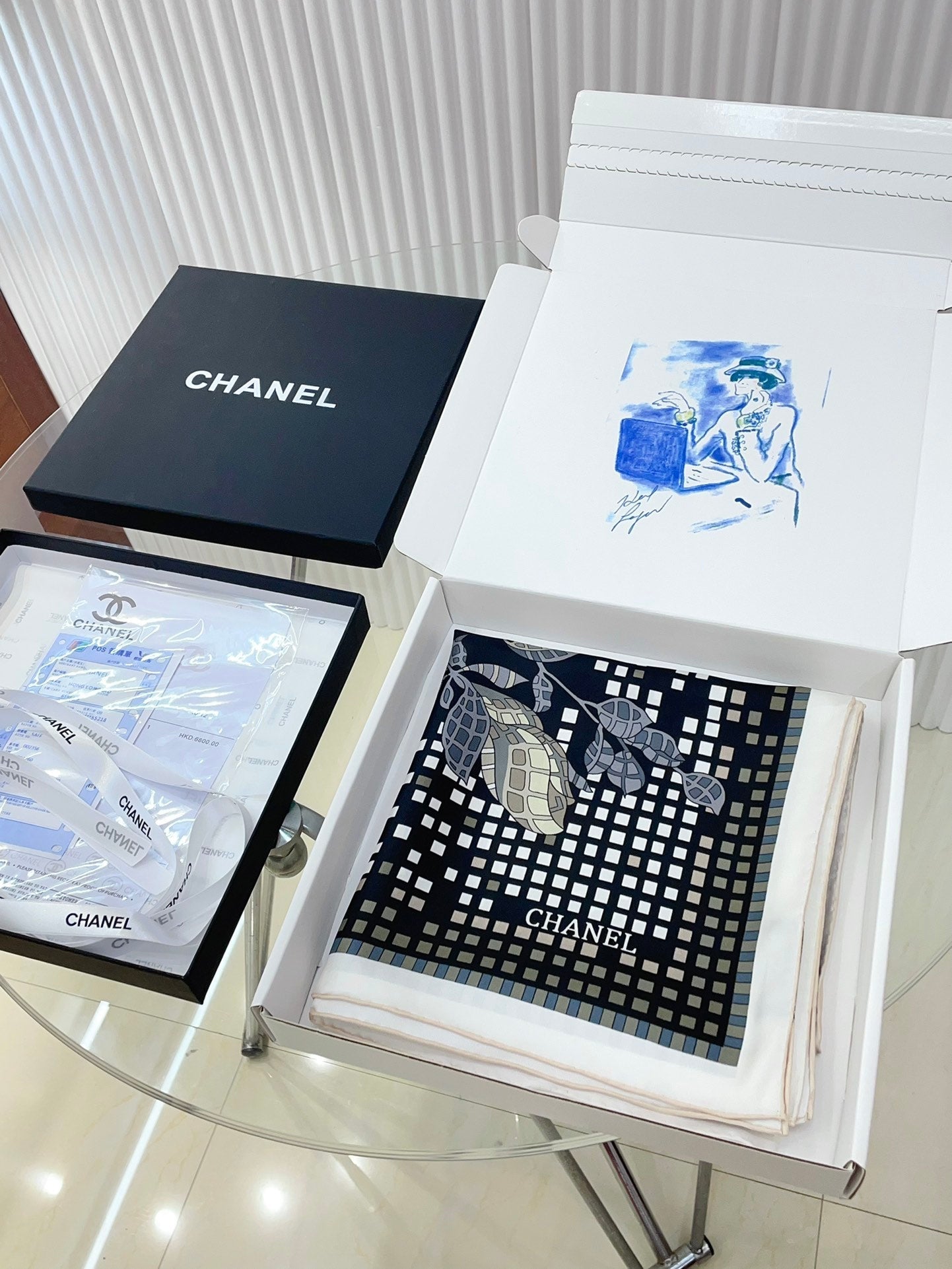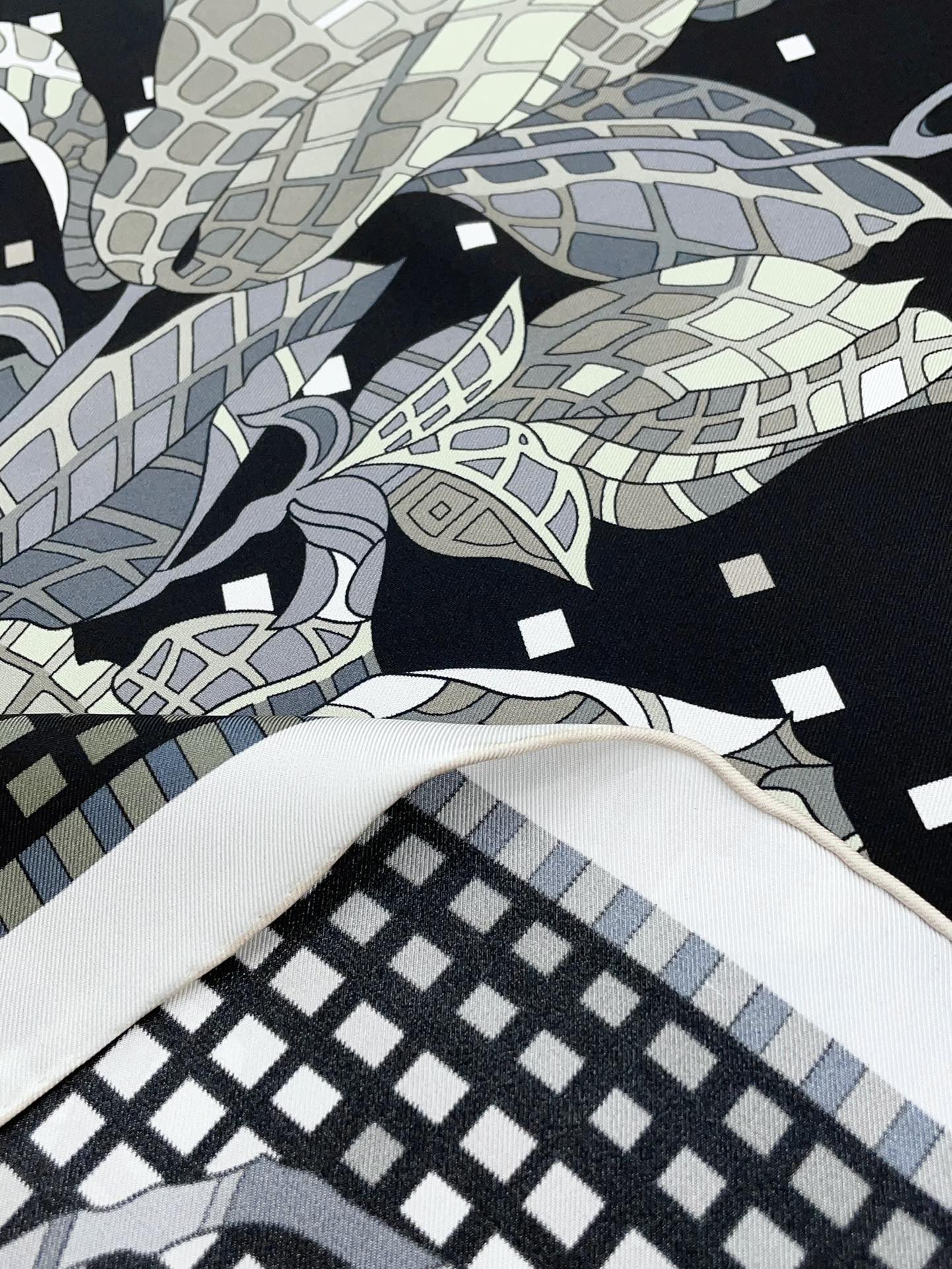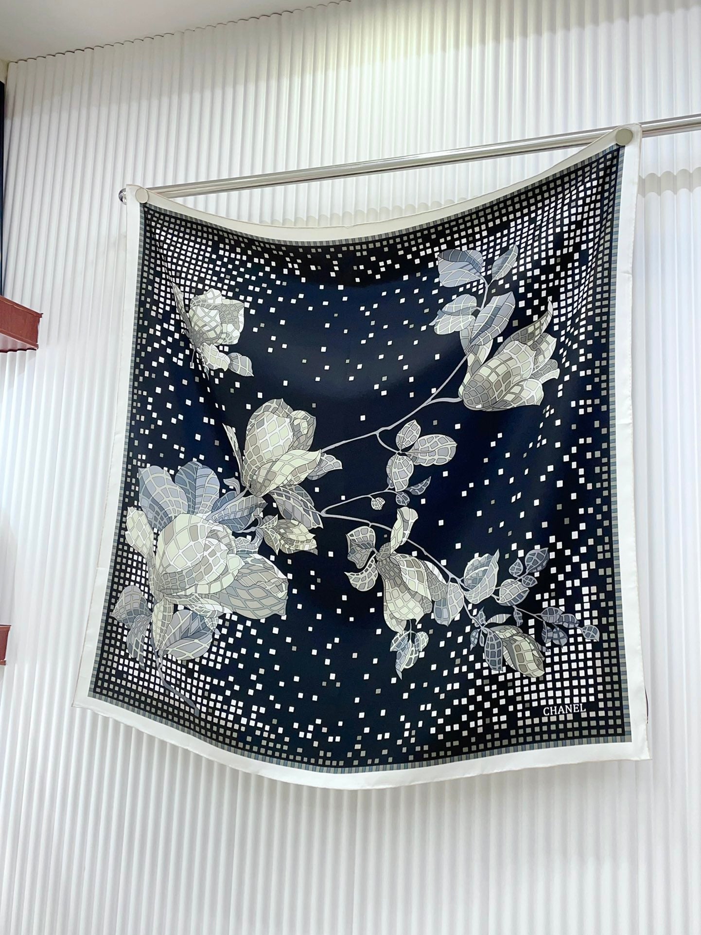 CC Square Scarf 90 CM In Black Camellia Silk Twill 193837