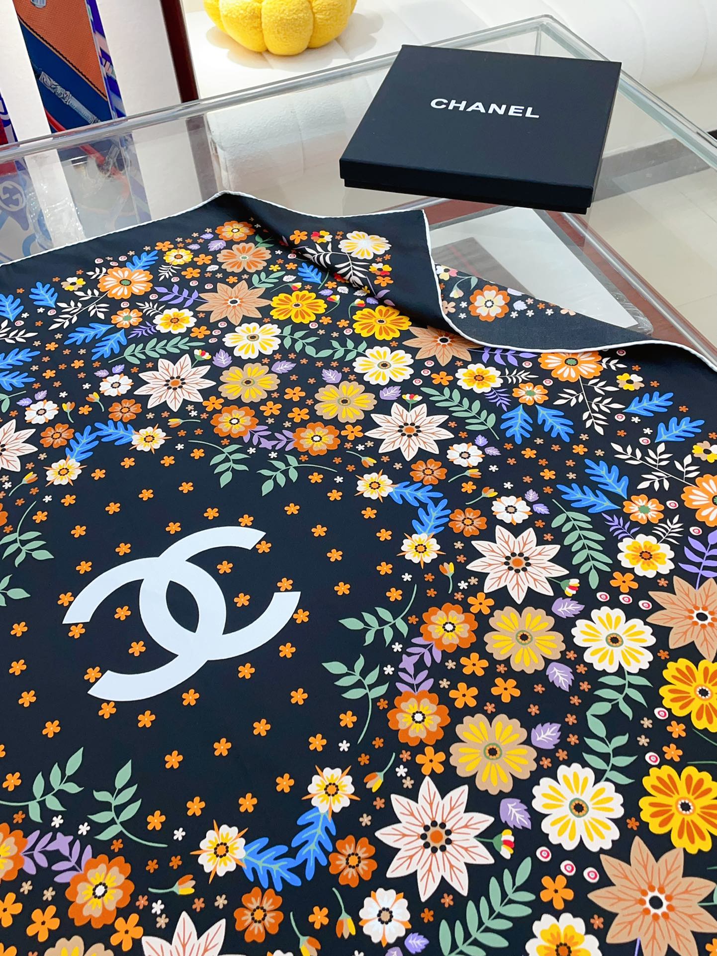 CC Square Scarf 90 CM In Black Colorful Silk Twill 234597