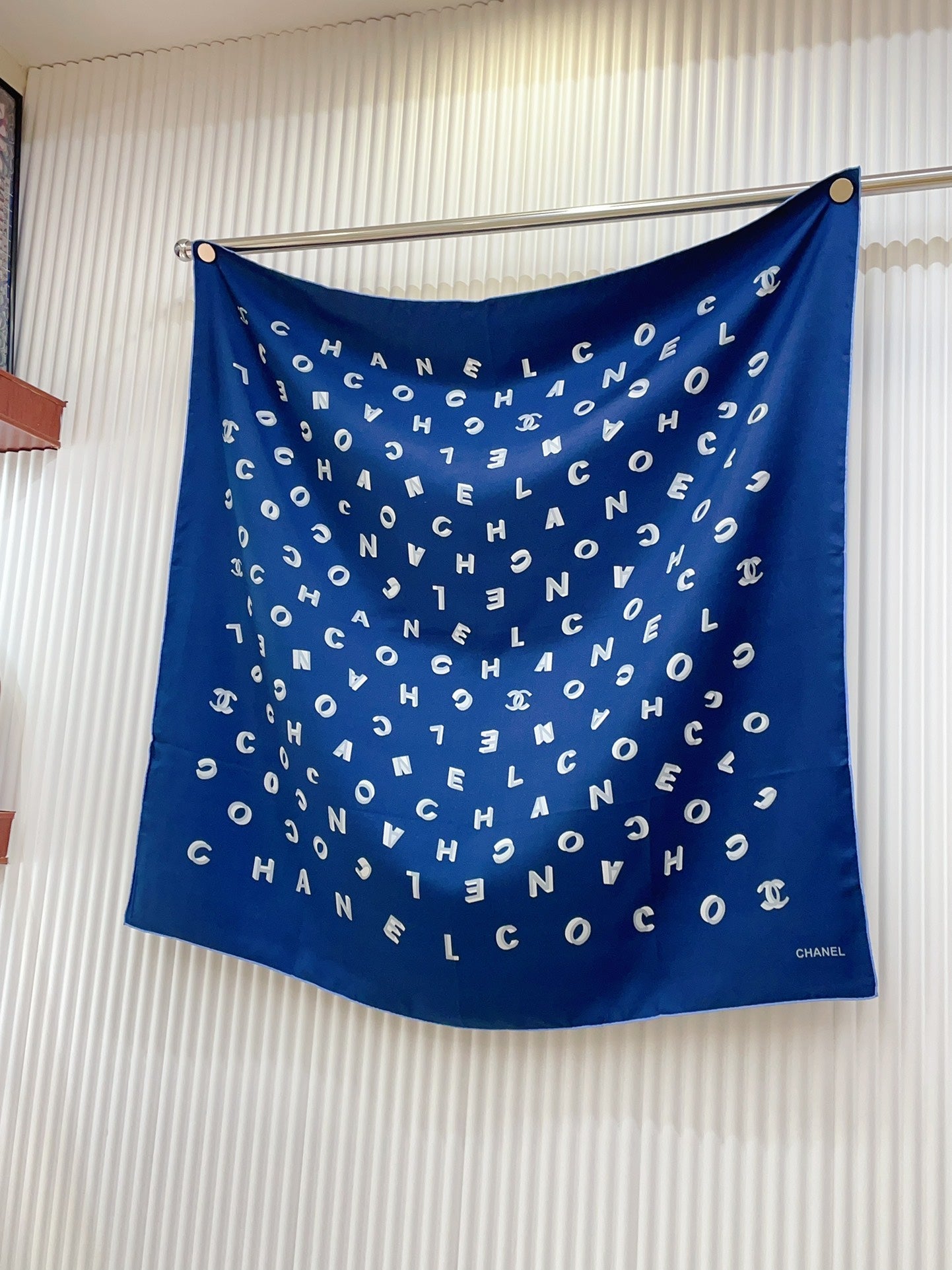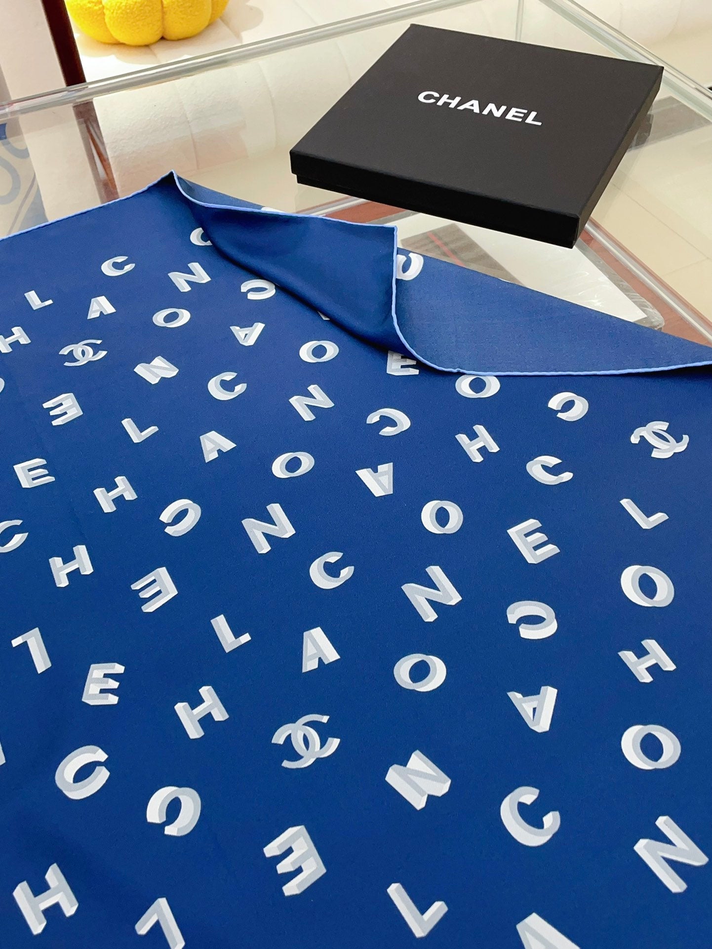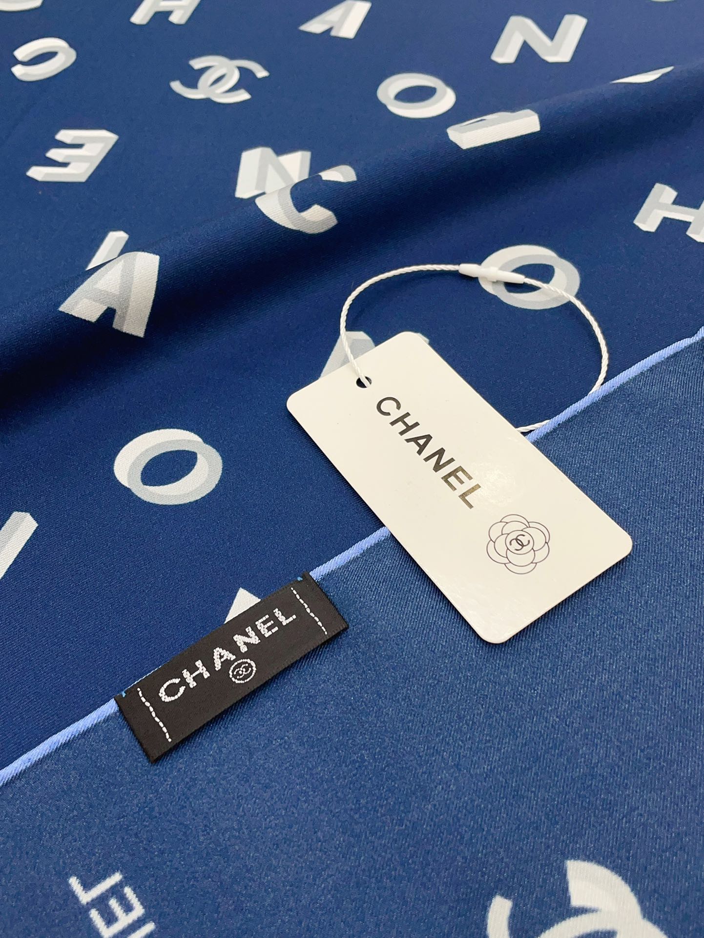 CC Square Scarf 90 CM In Blue With Printed Letters Silk Twill 208581