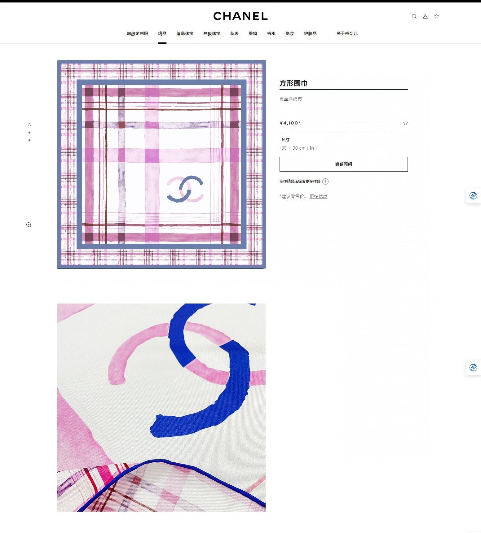 CC Square Scarf 90 CM In Colorful Silk Twill 217211