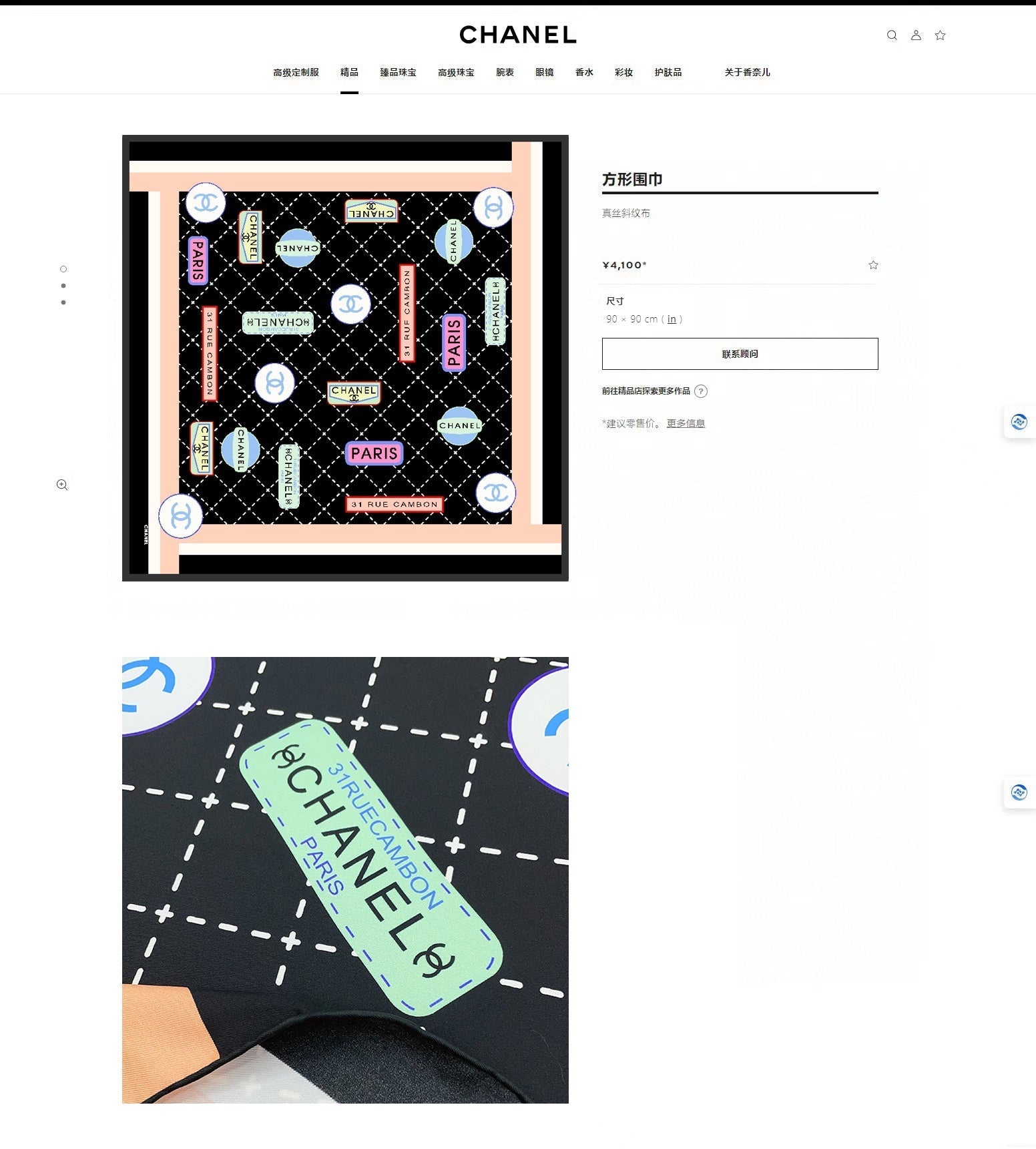 CC Square Scarf 90 CM In Colorful Silk Twill 218095