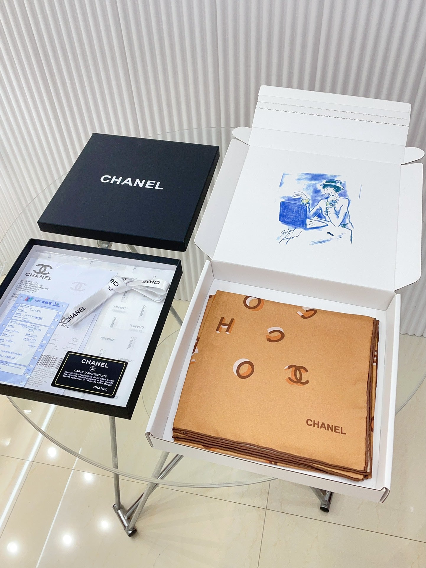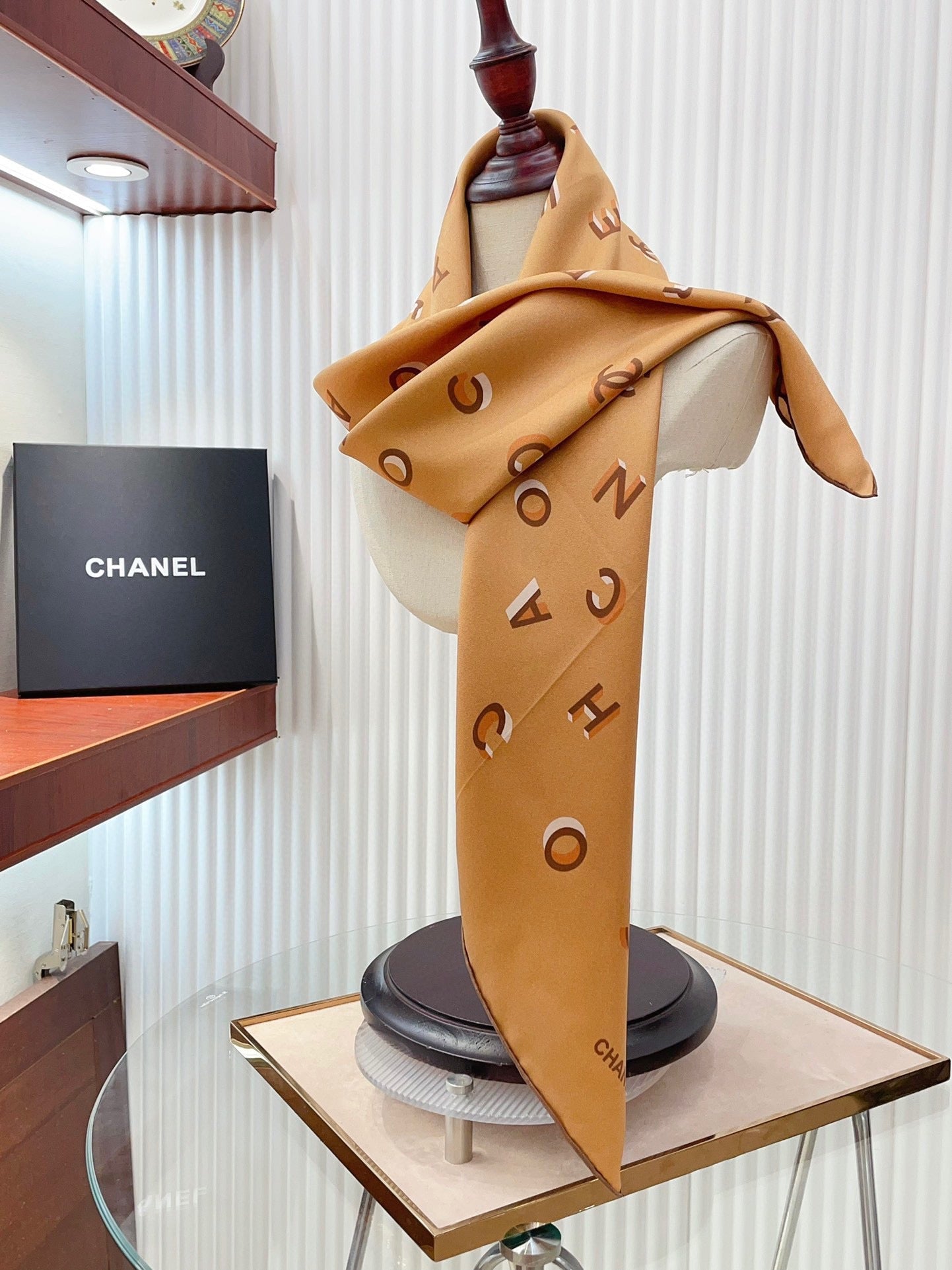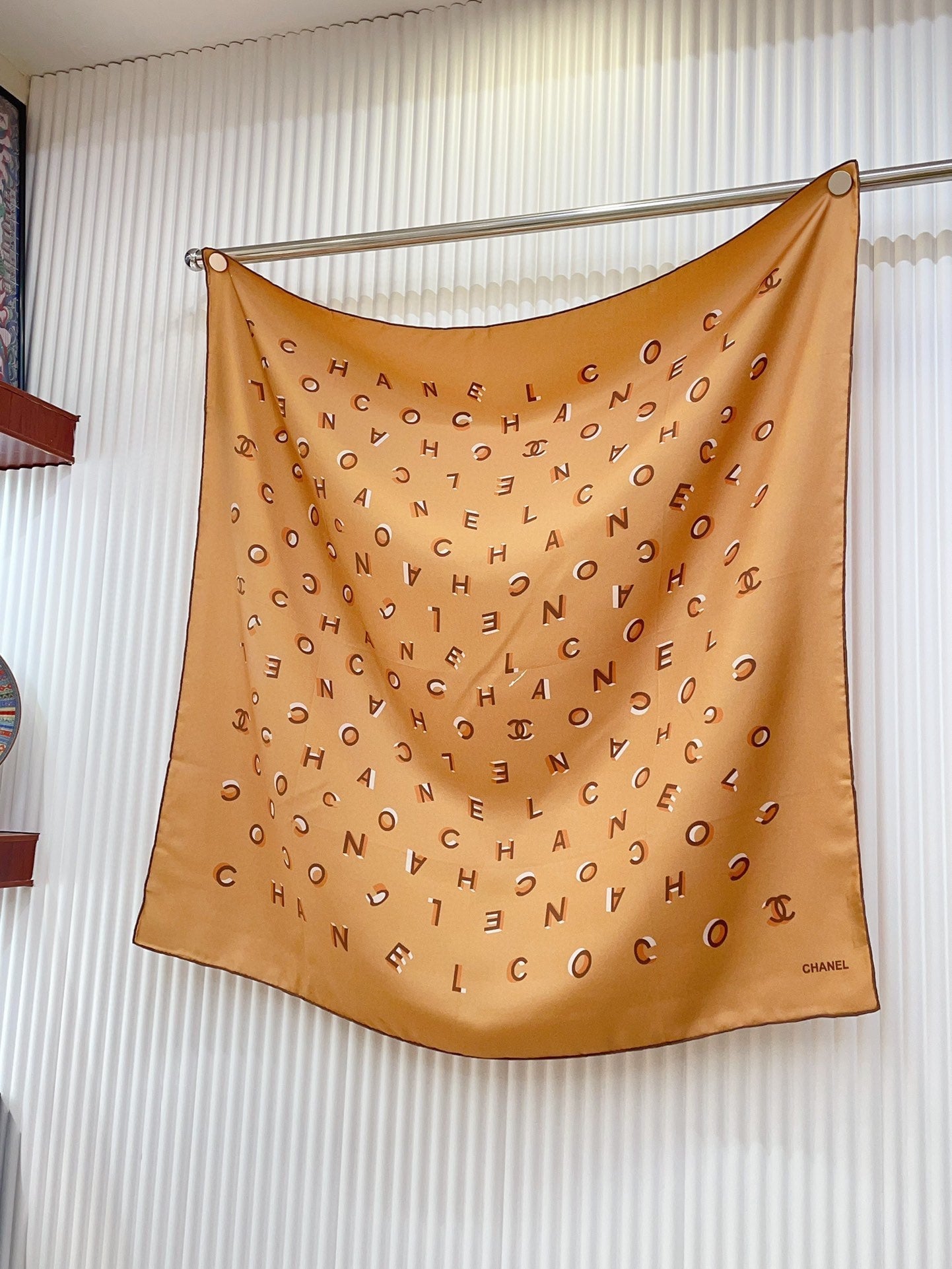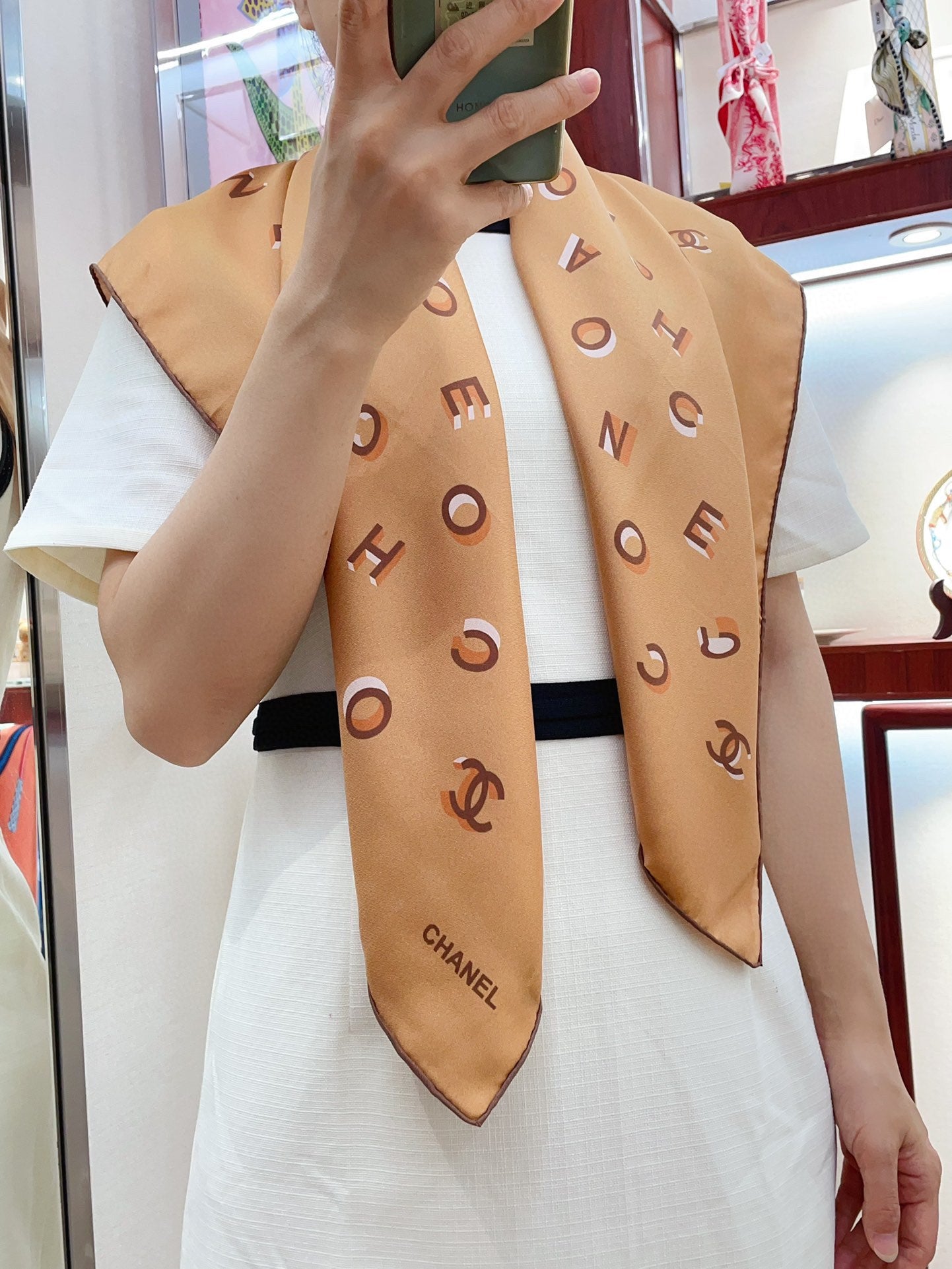 CC Square Scarf 90 CM In Dark Beige With Printed Letters Silk Twill 300436