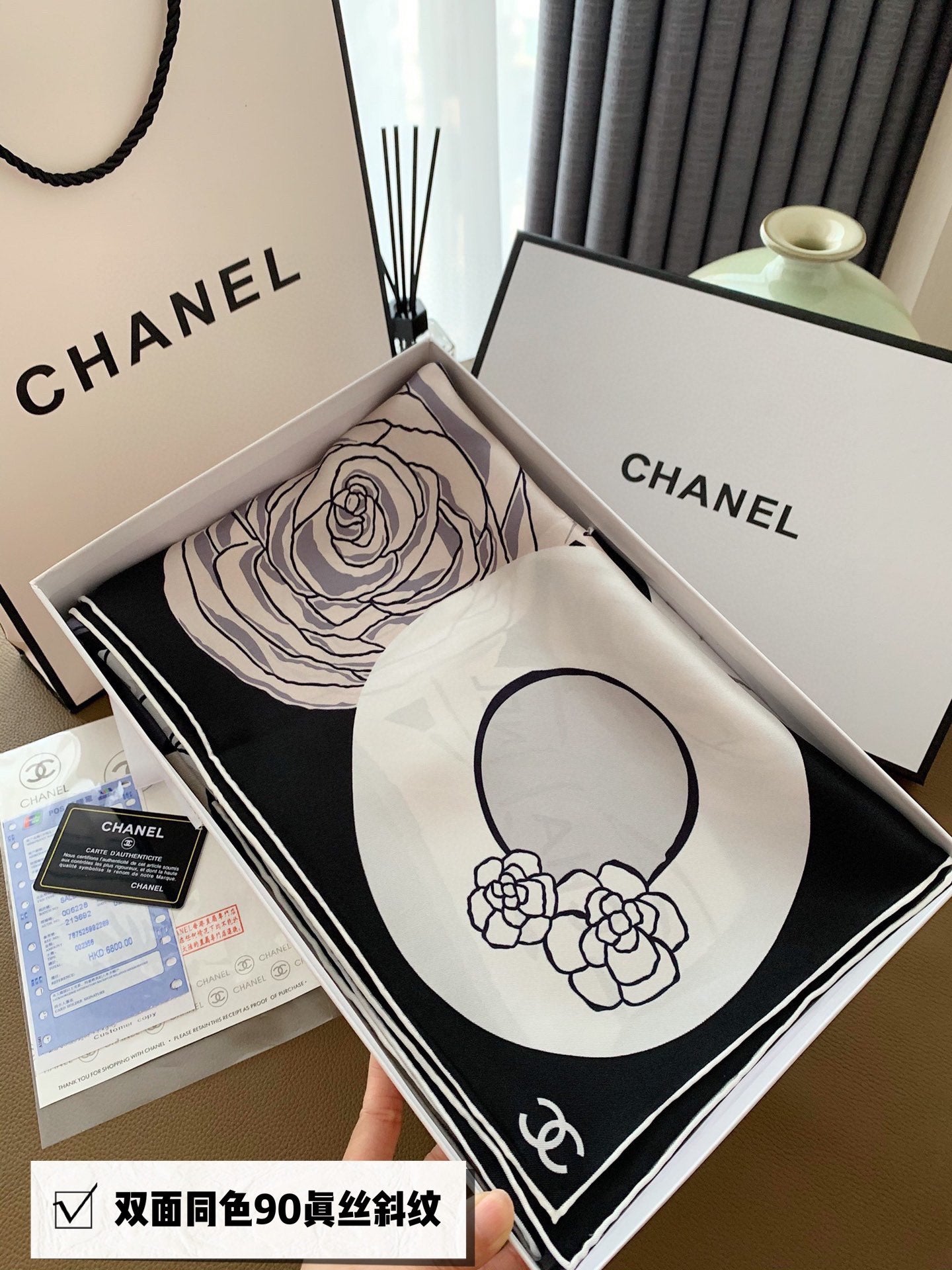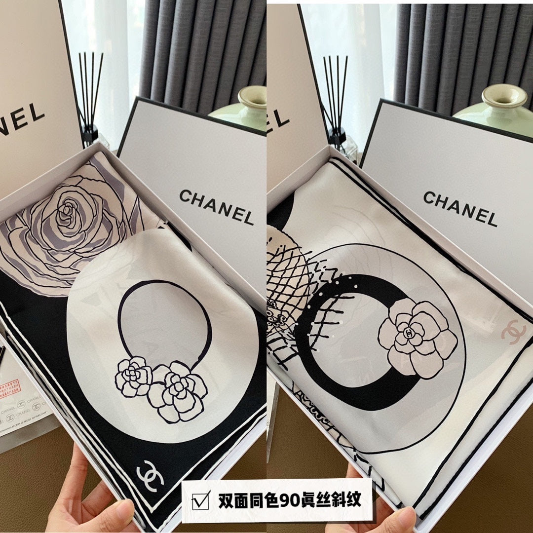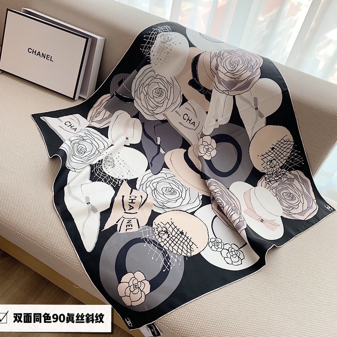 CC Square Scarf 90 CM In White Black Mix Grey Light Beige Silk 288698