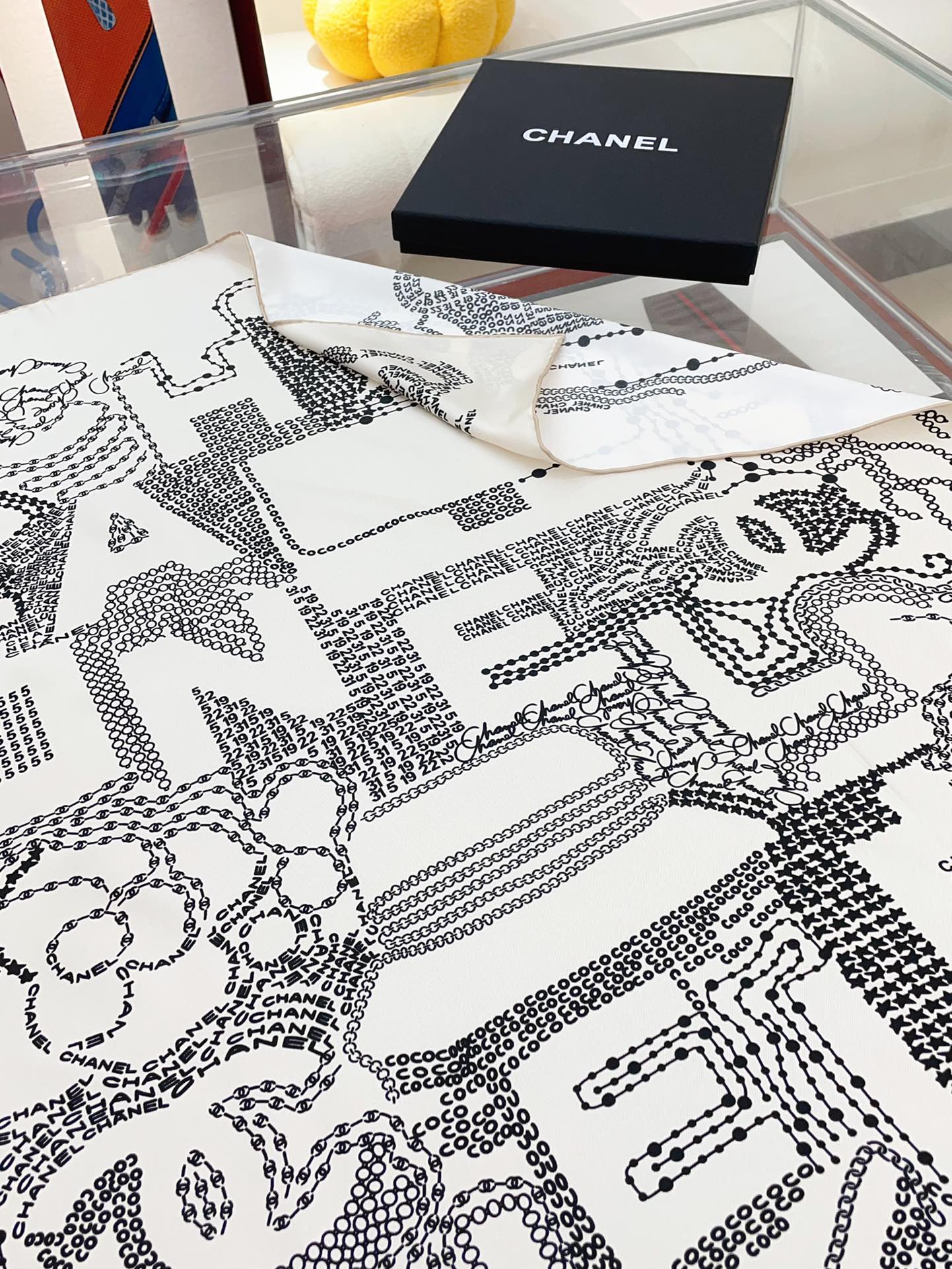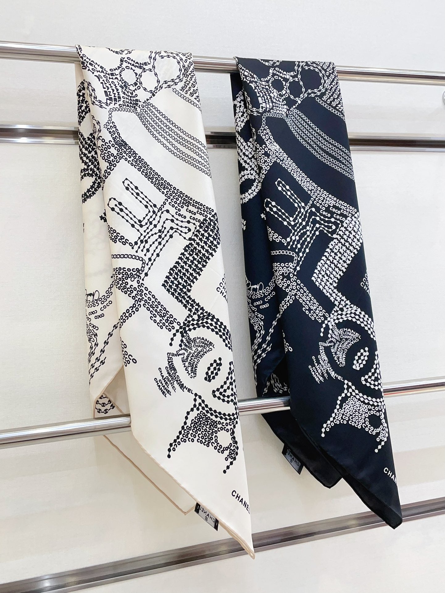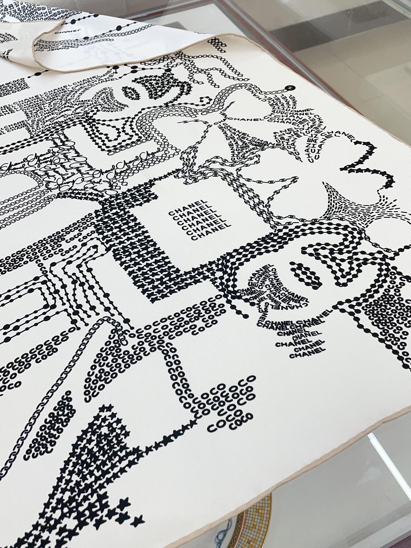 CC Square Scarf 90 CM In White Black Silk Twill 198569