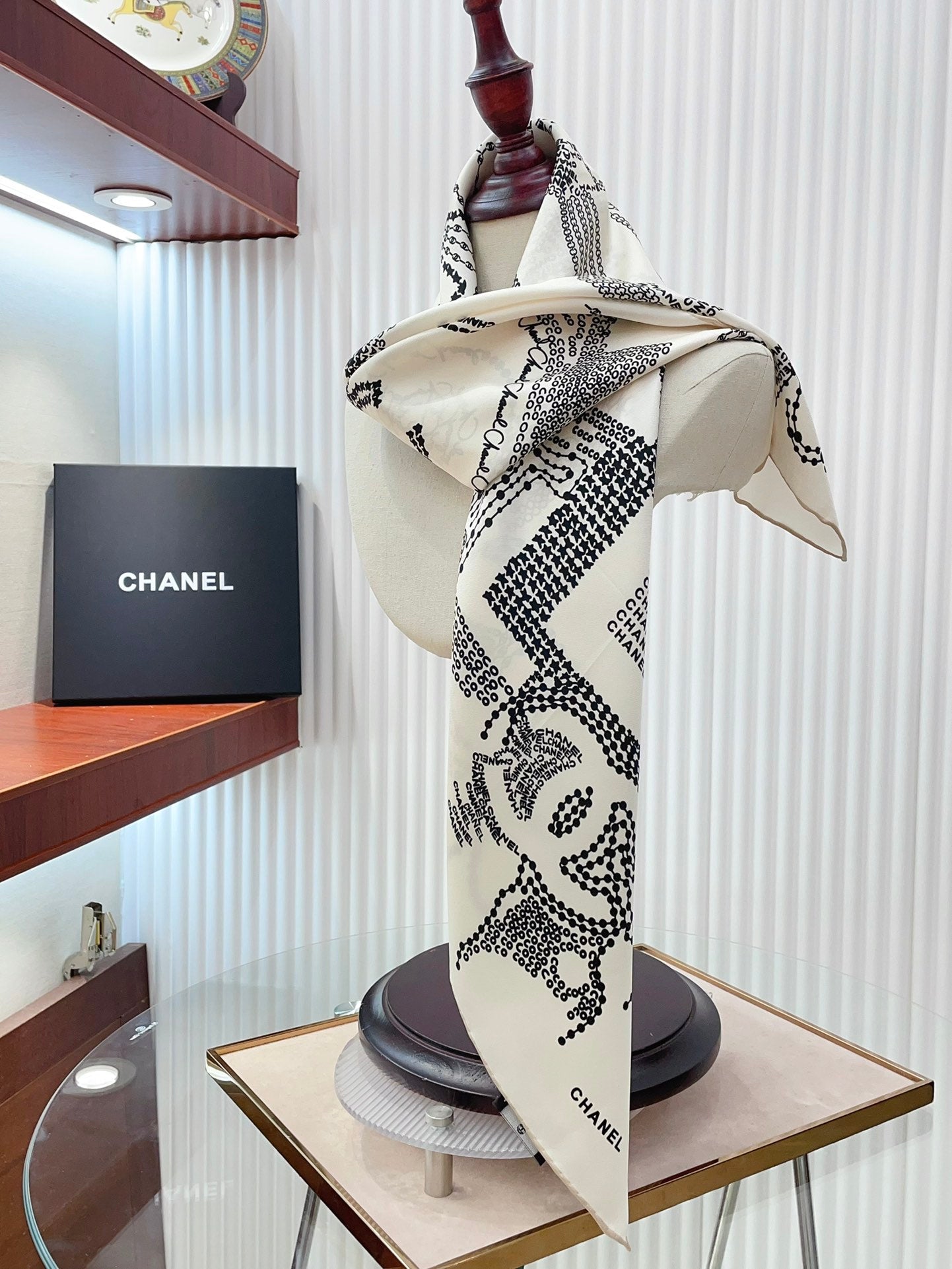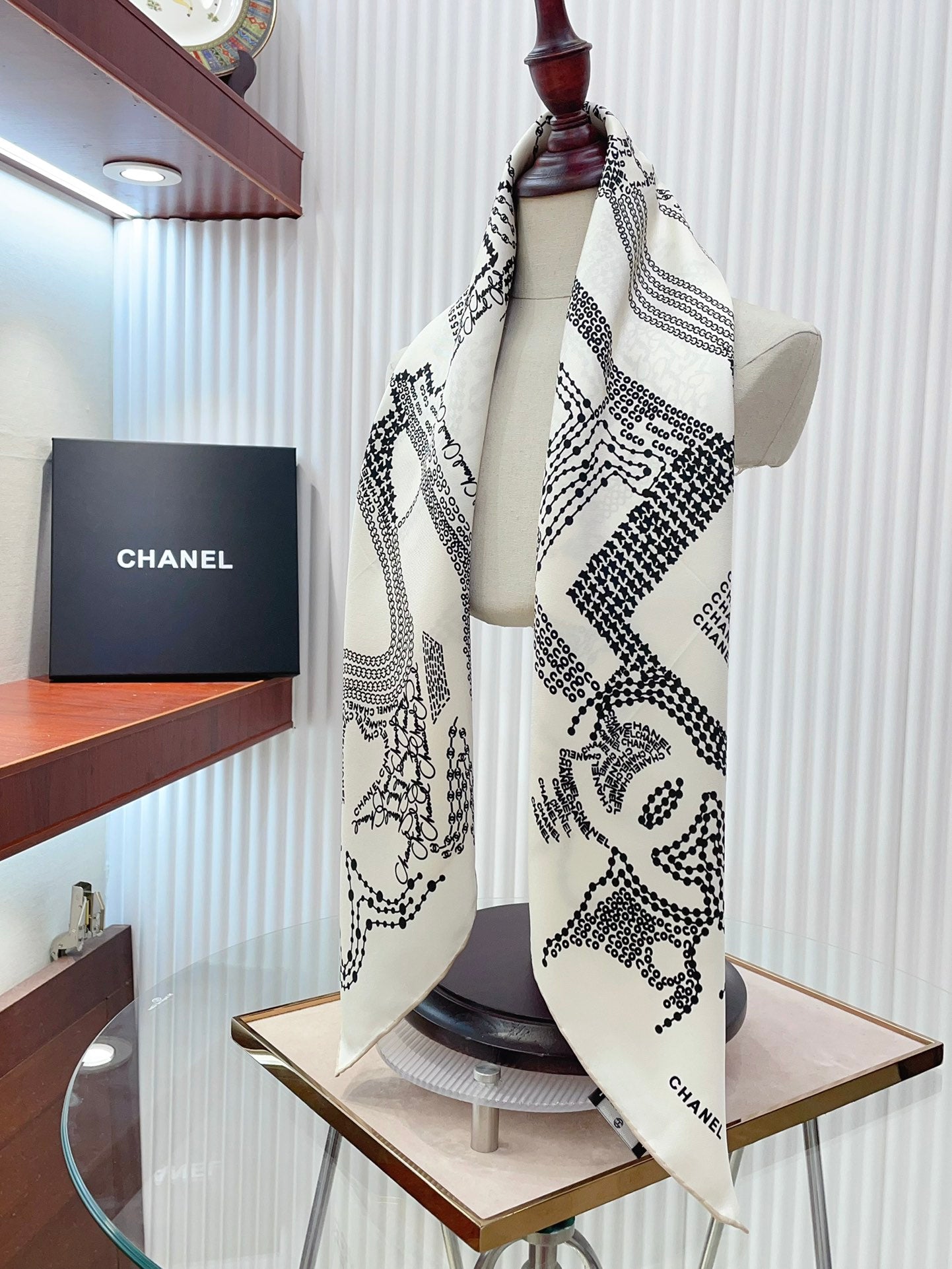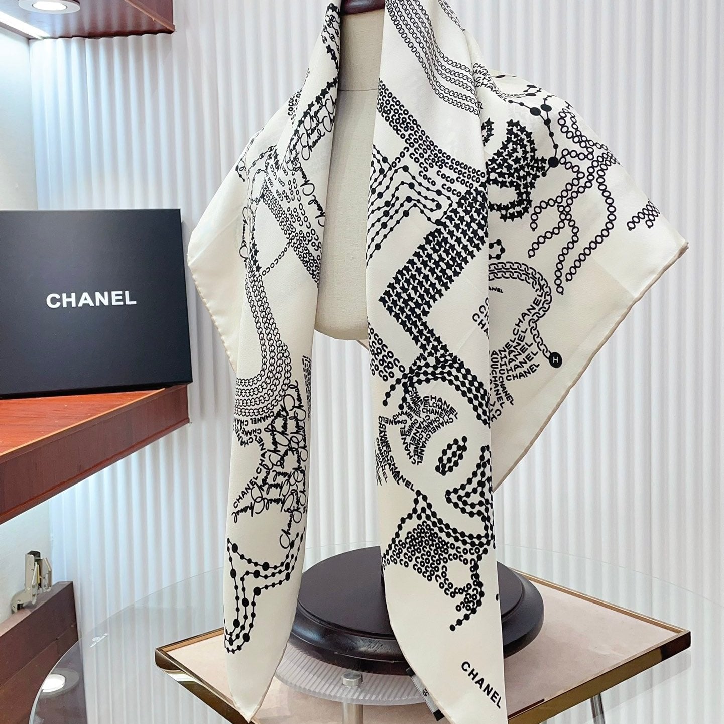 CC Square Scarf 90 CM In White Black Silk Twill 198569