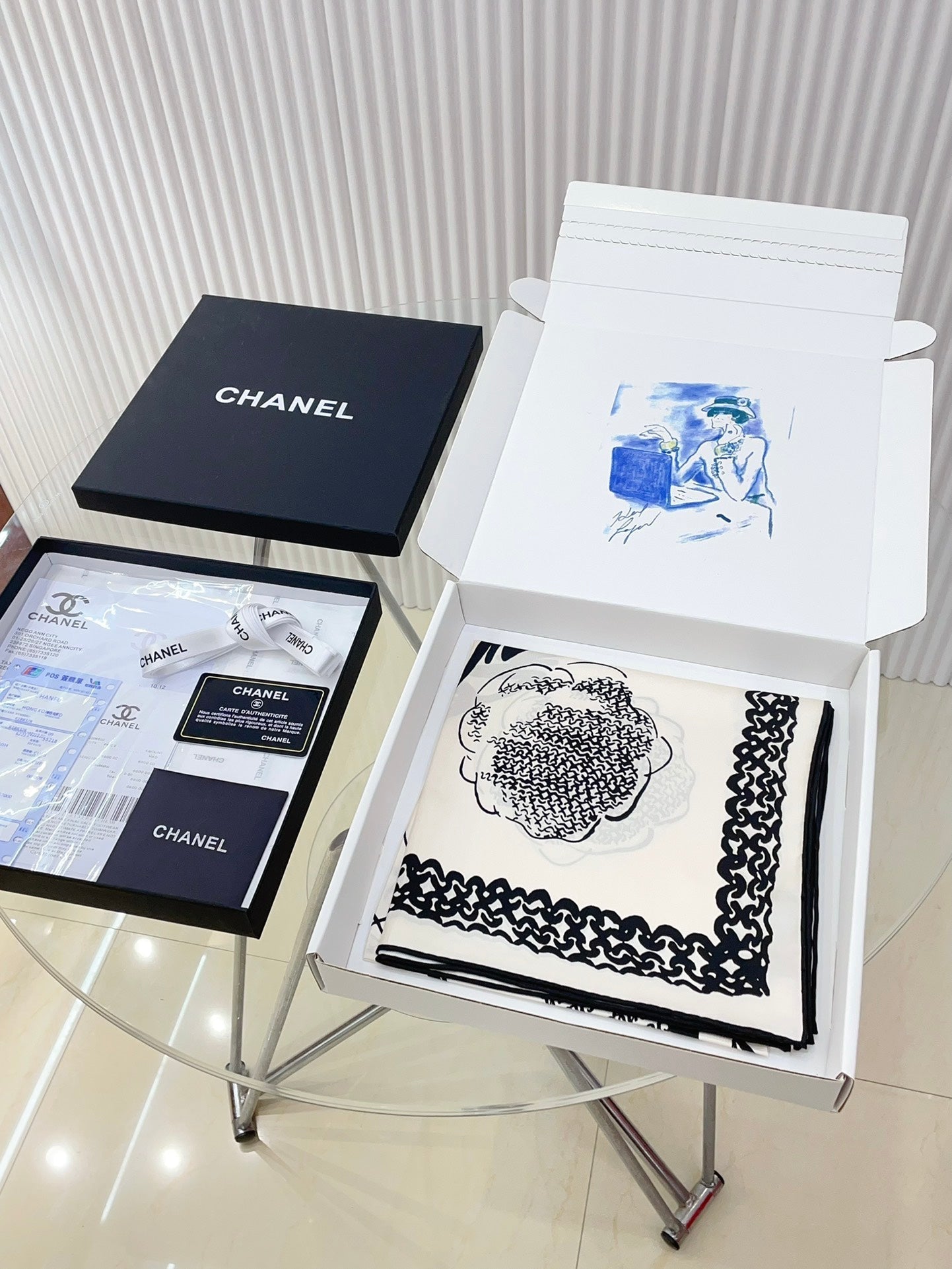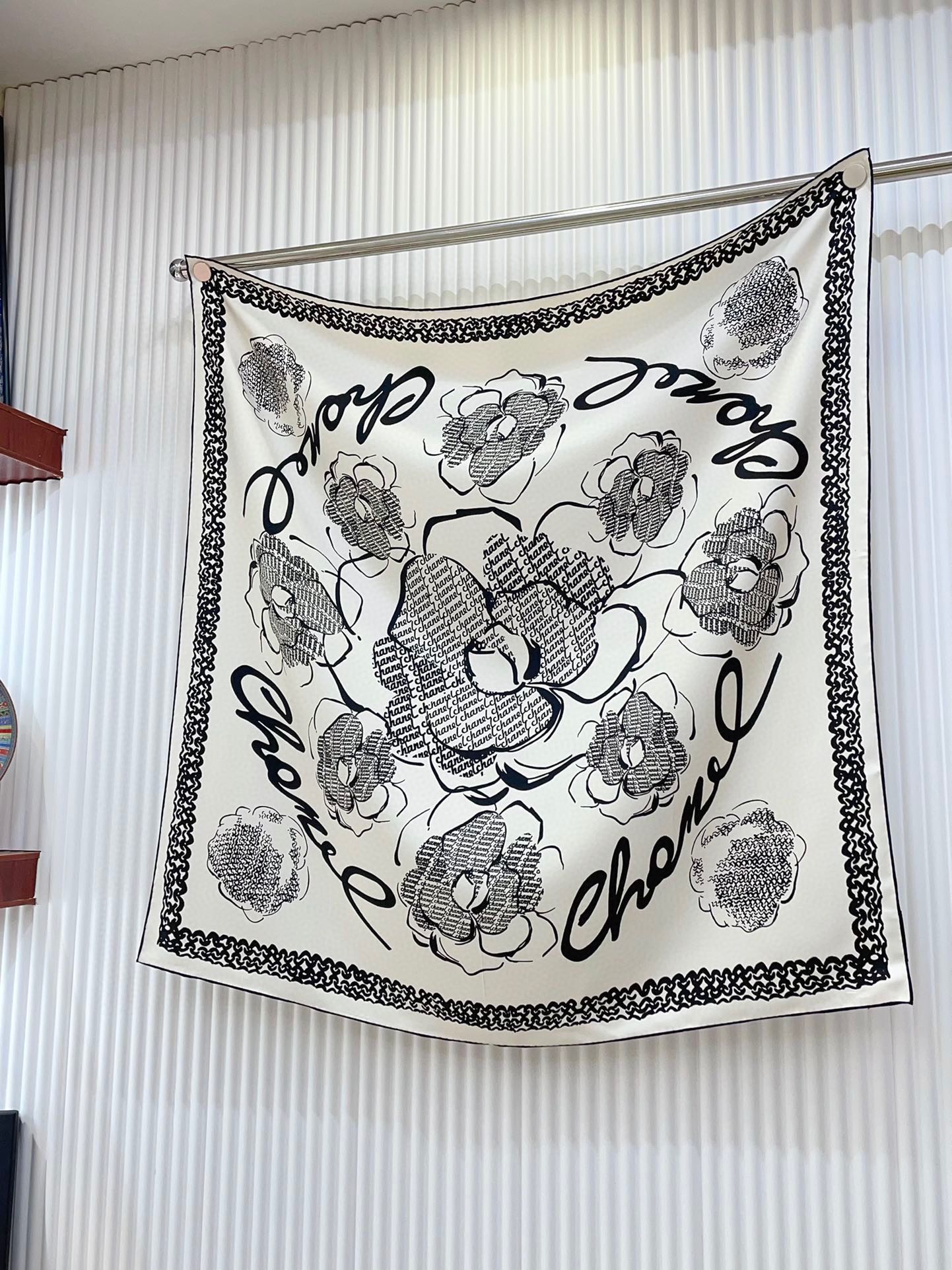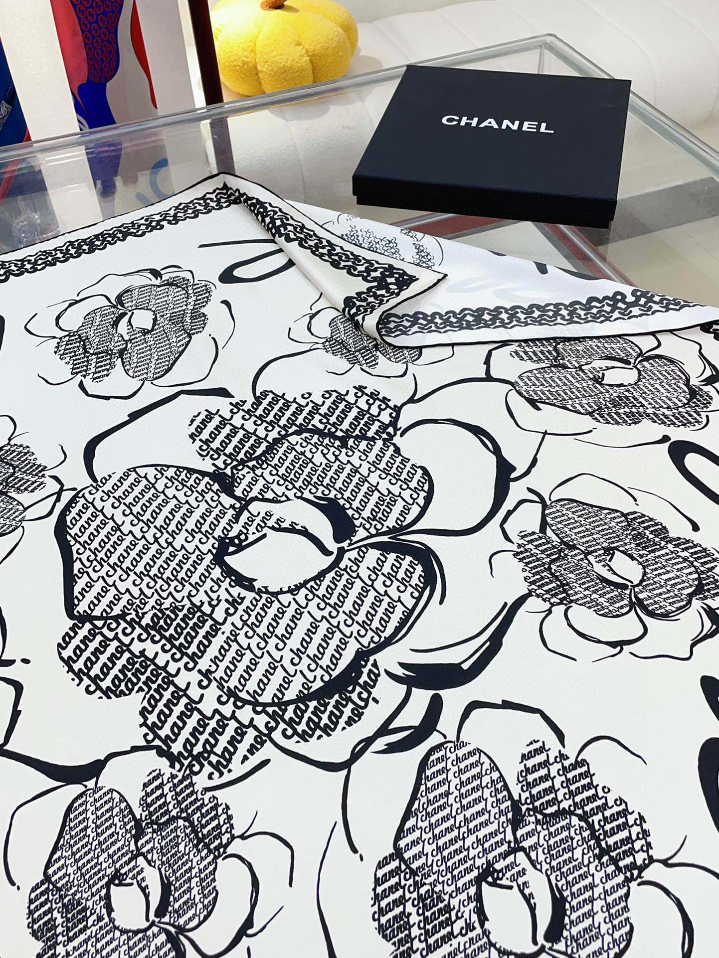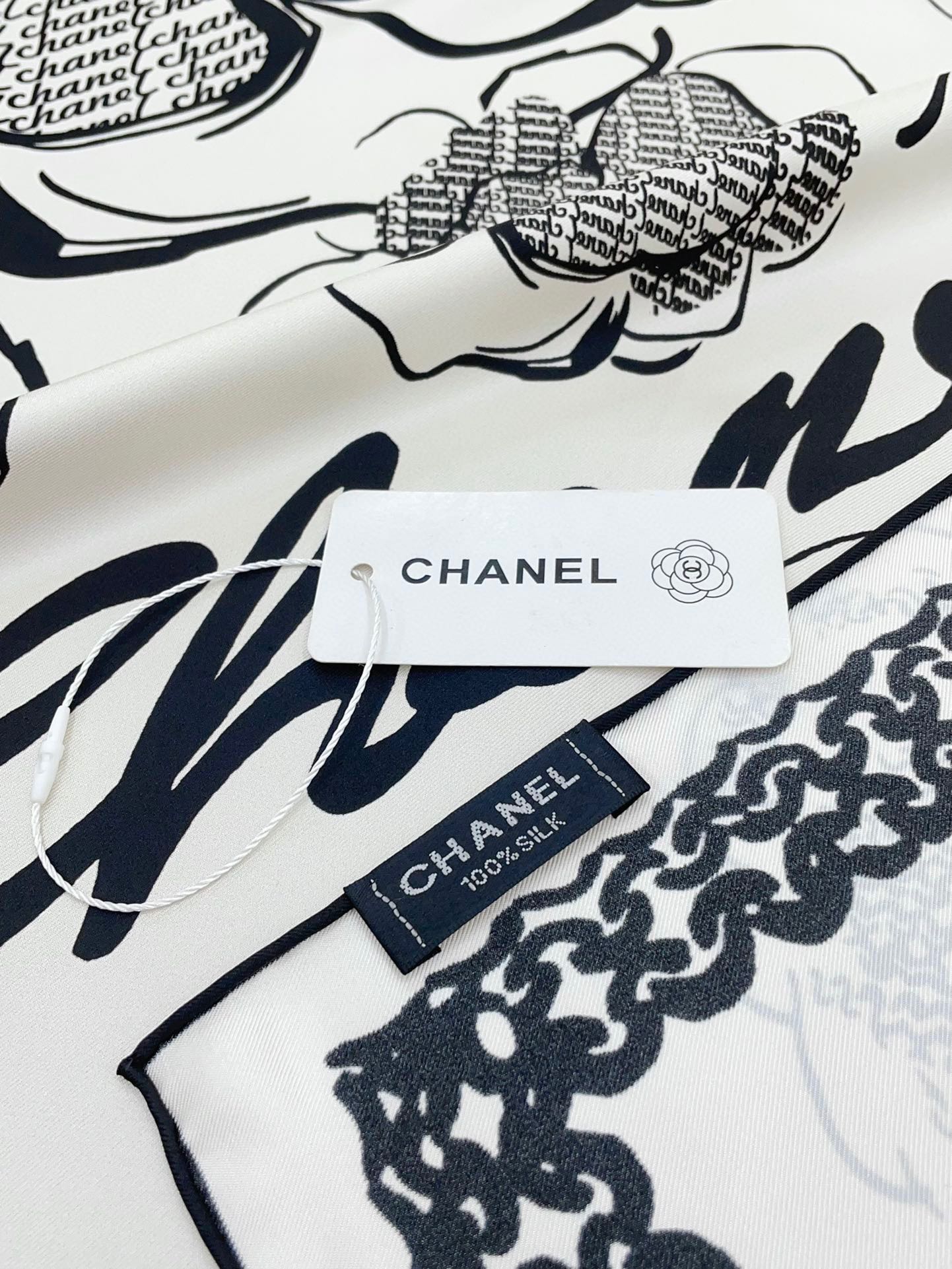 CC Square Scarf 90 CM In White Black Silk Twill 271782