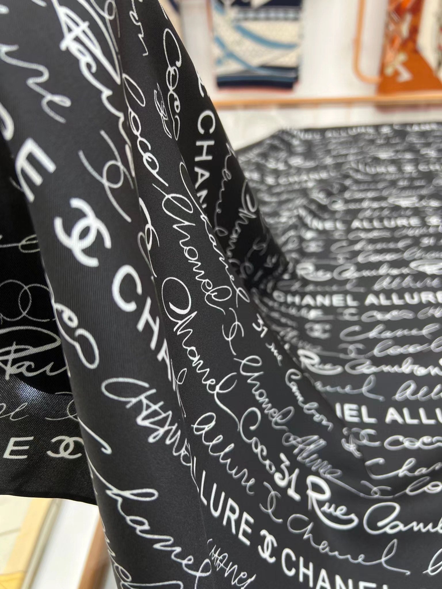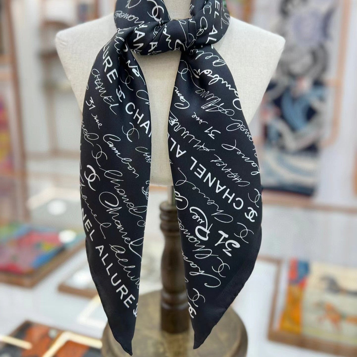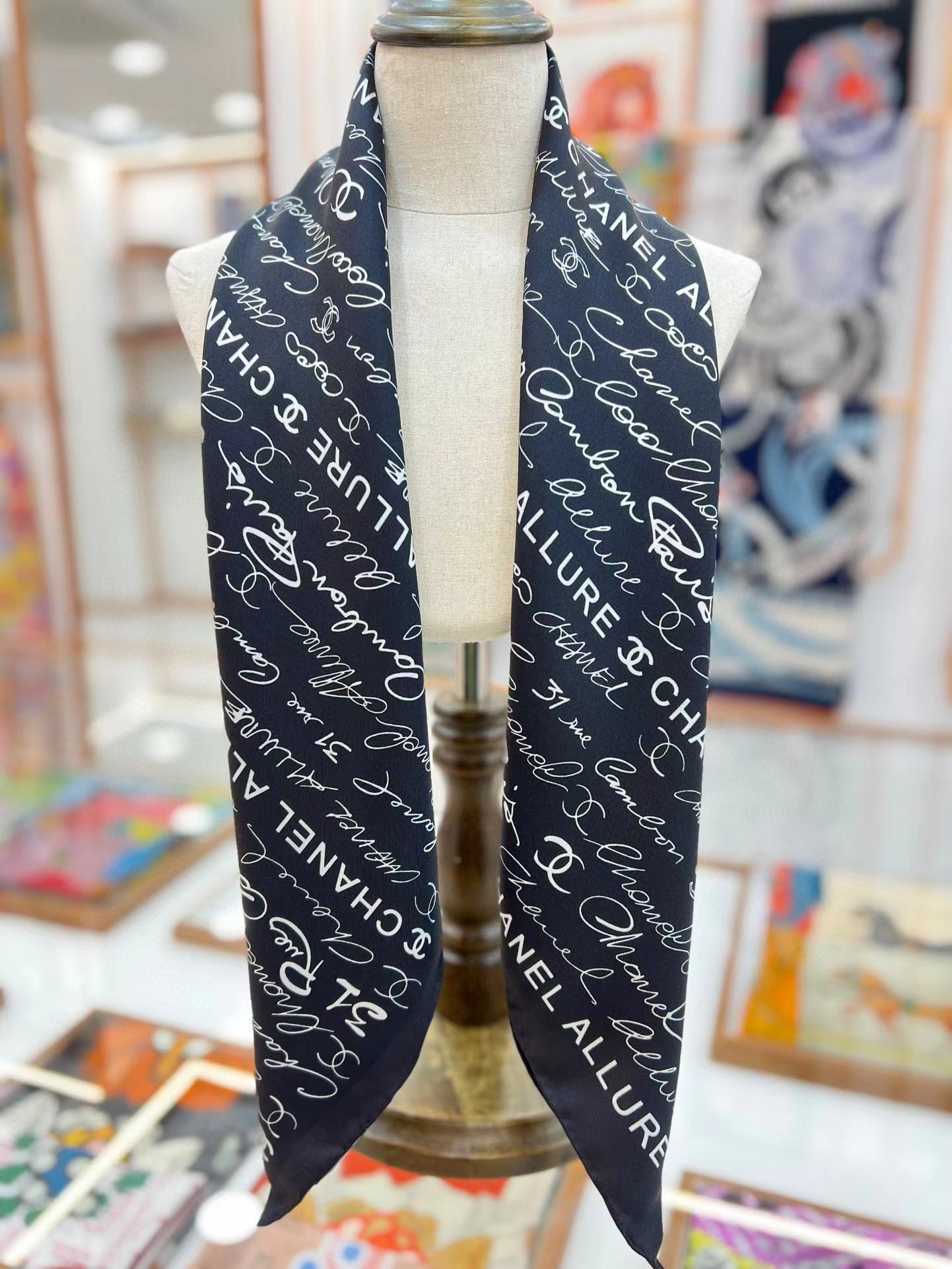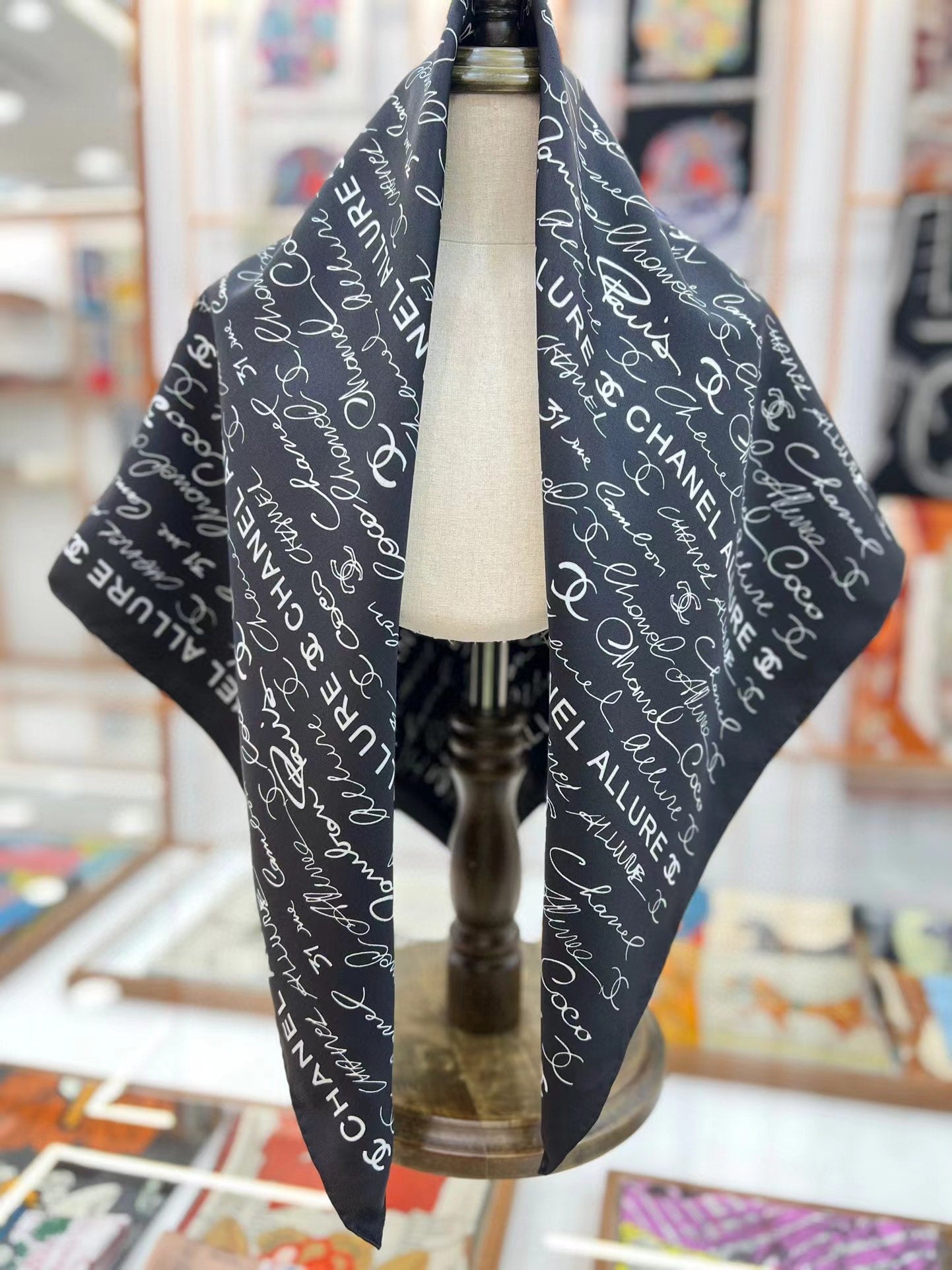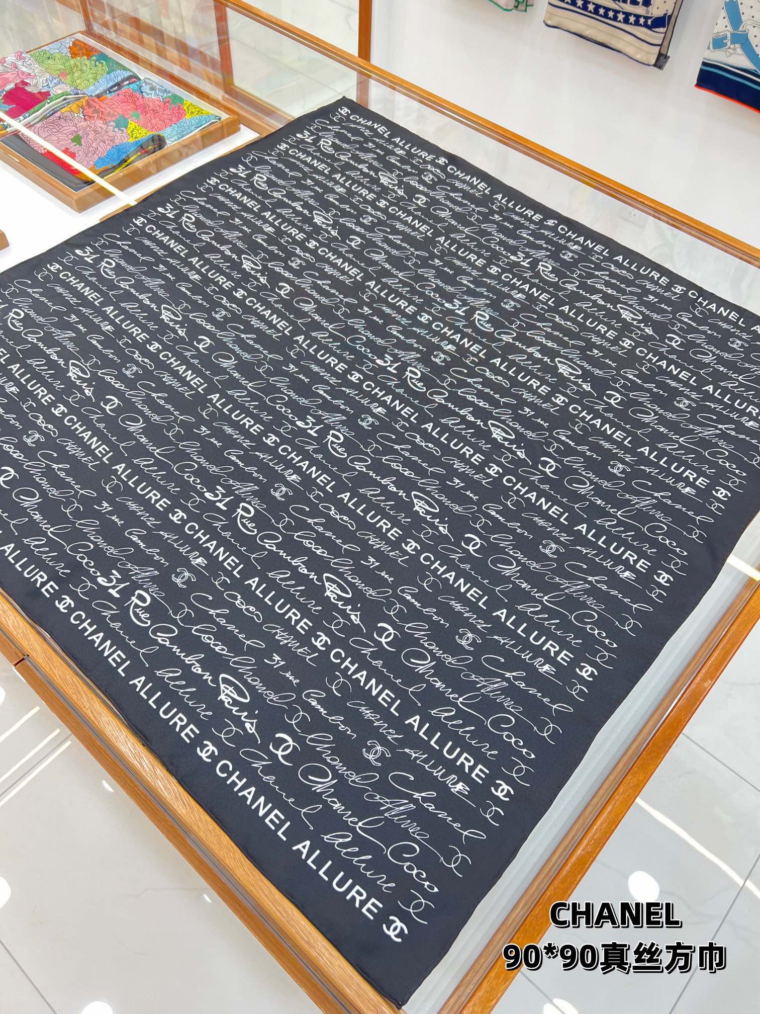 CC Square Scarf 90 CM In Black With White Text Silk 288695
