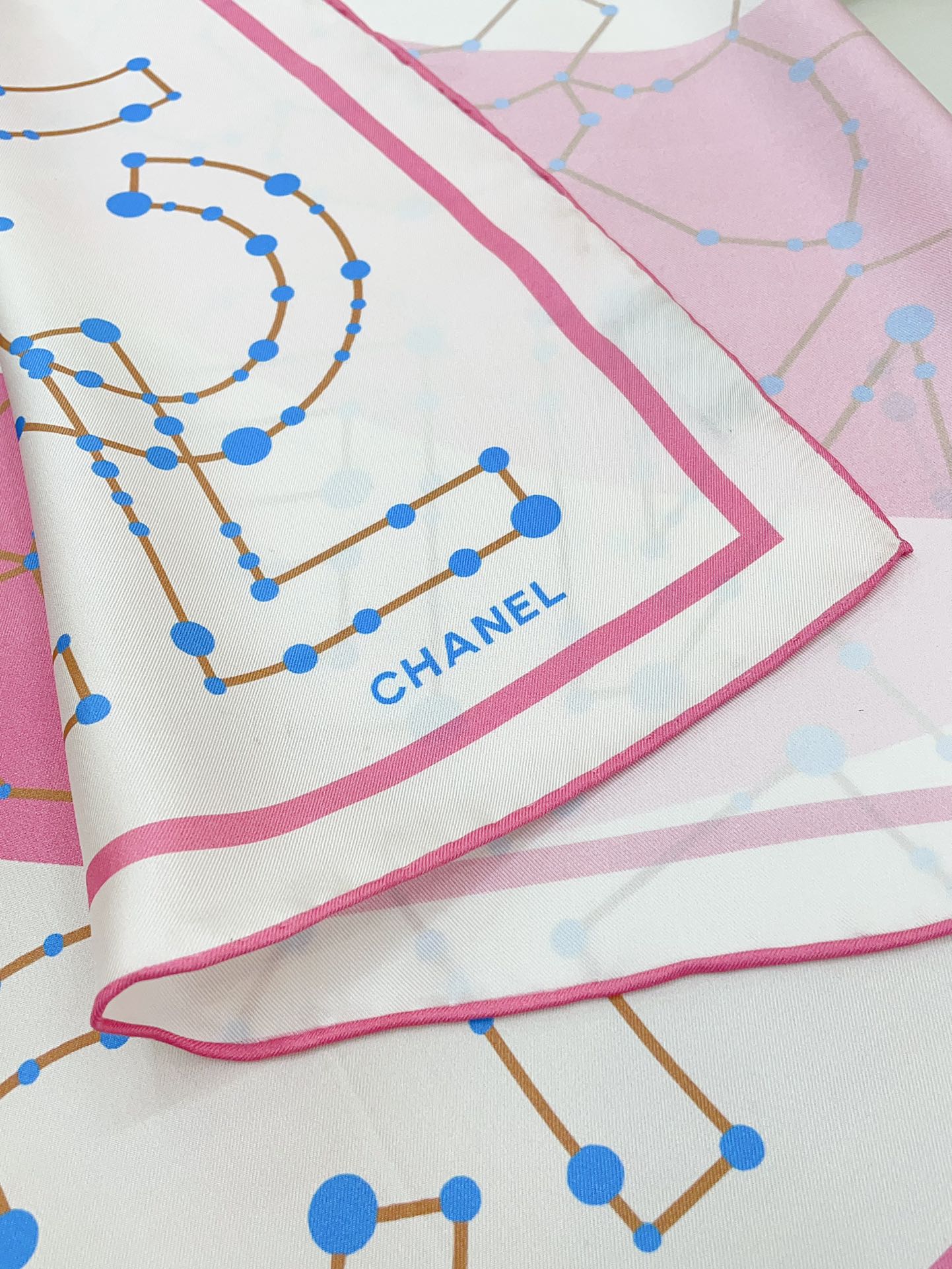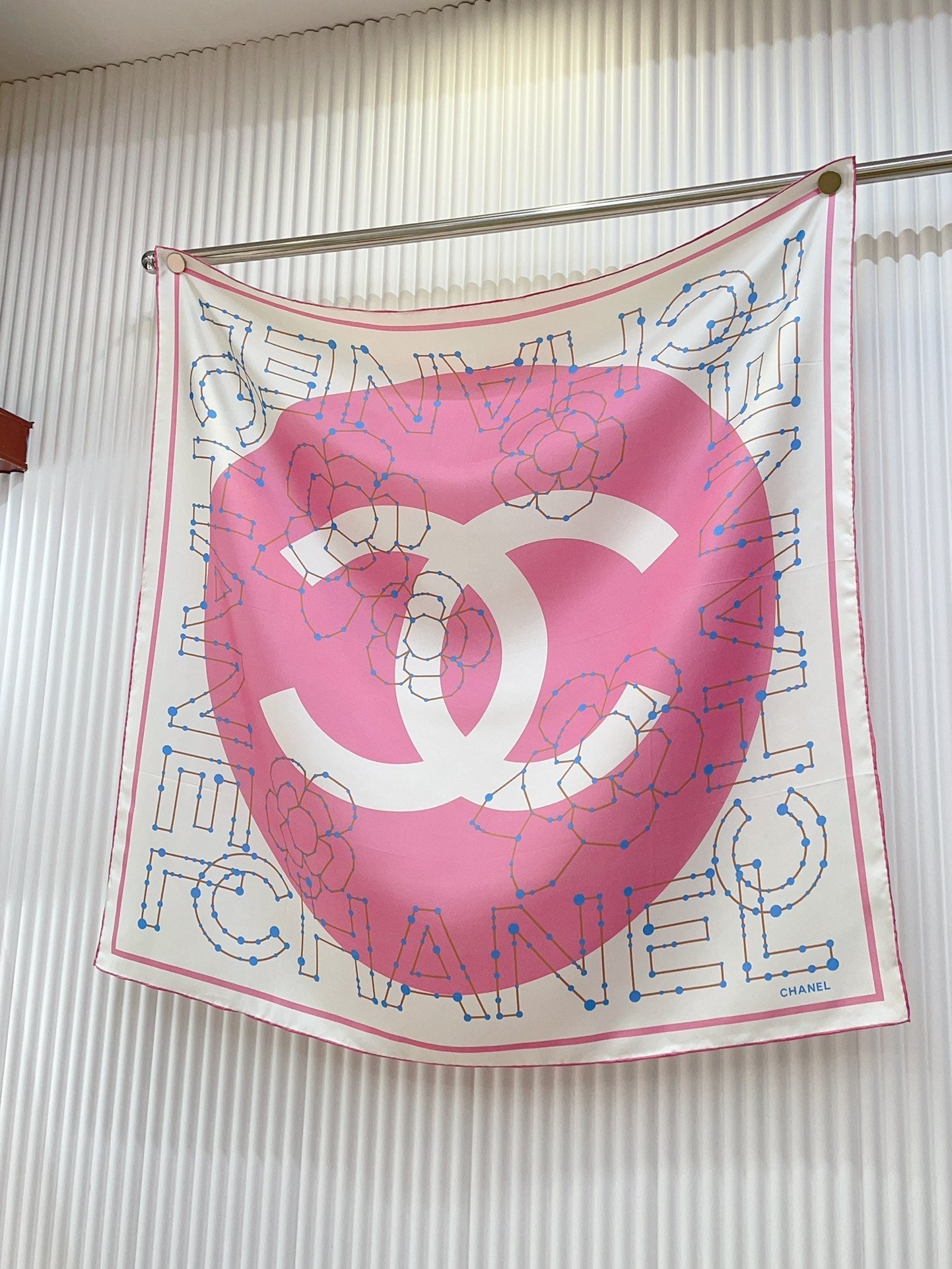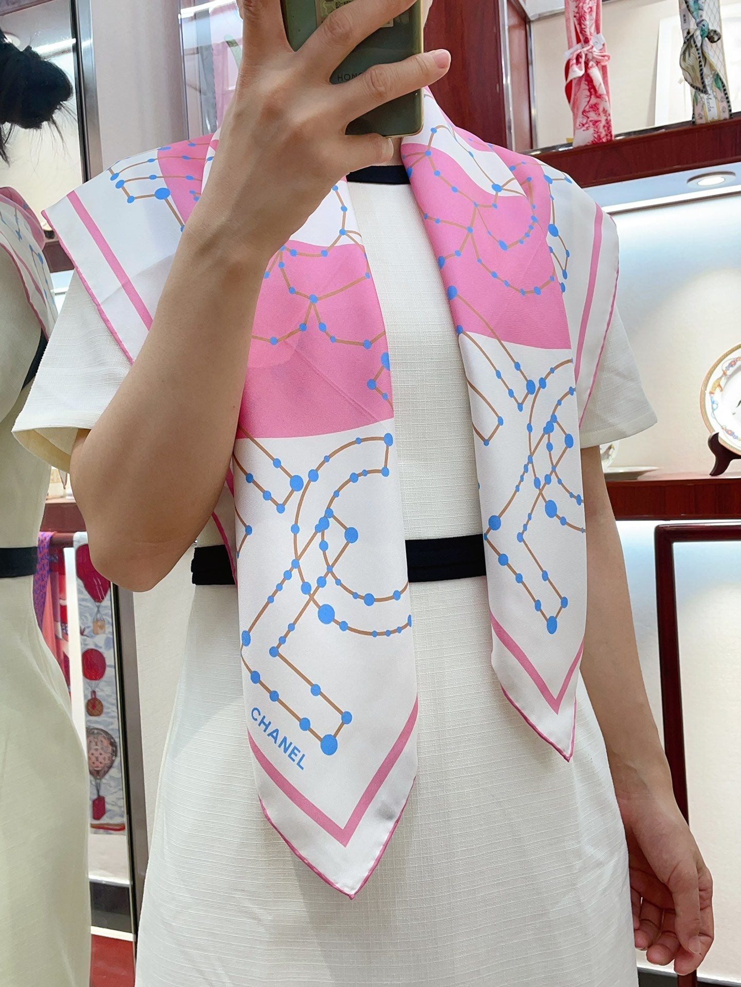 CC Square Scarf 90 CM In White Mix Pink Silk Twill 174874
