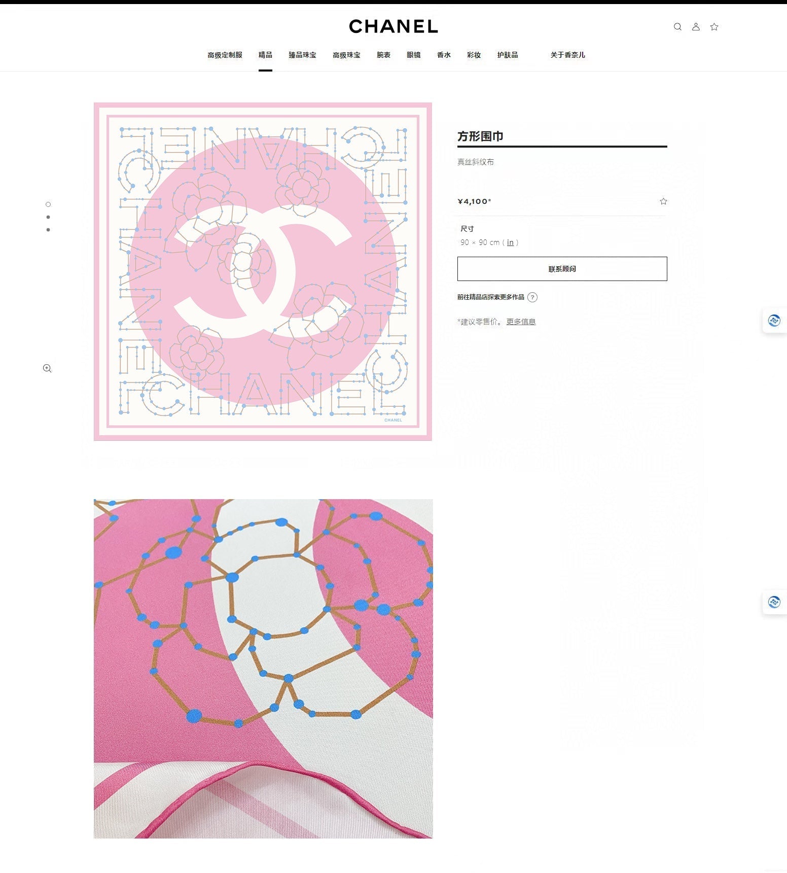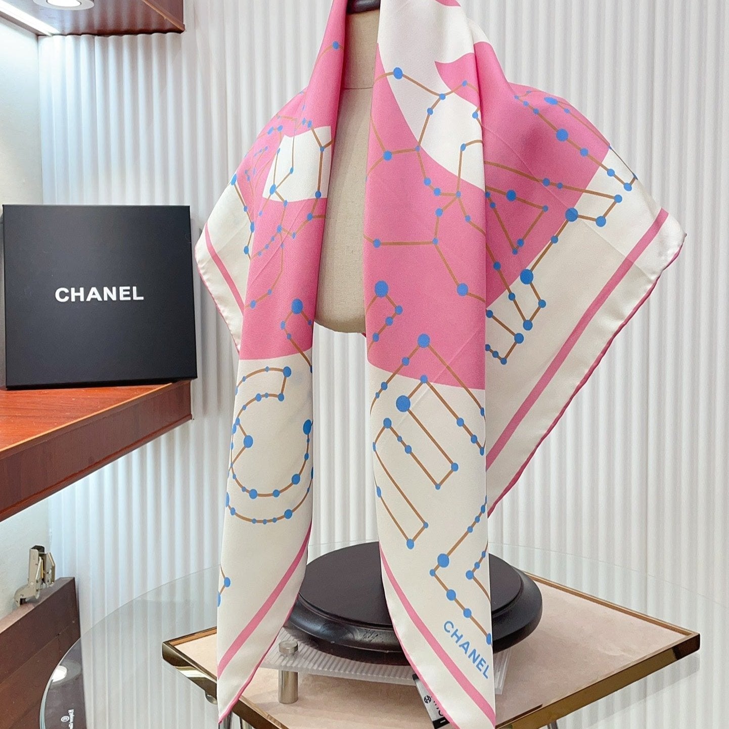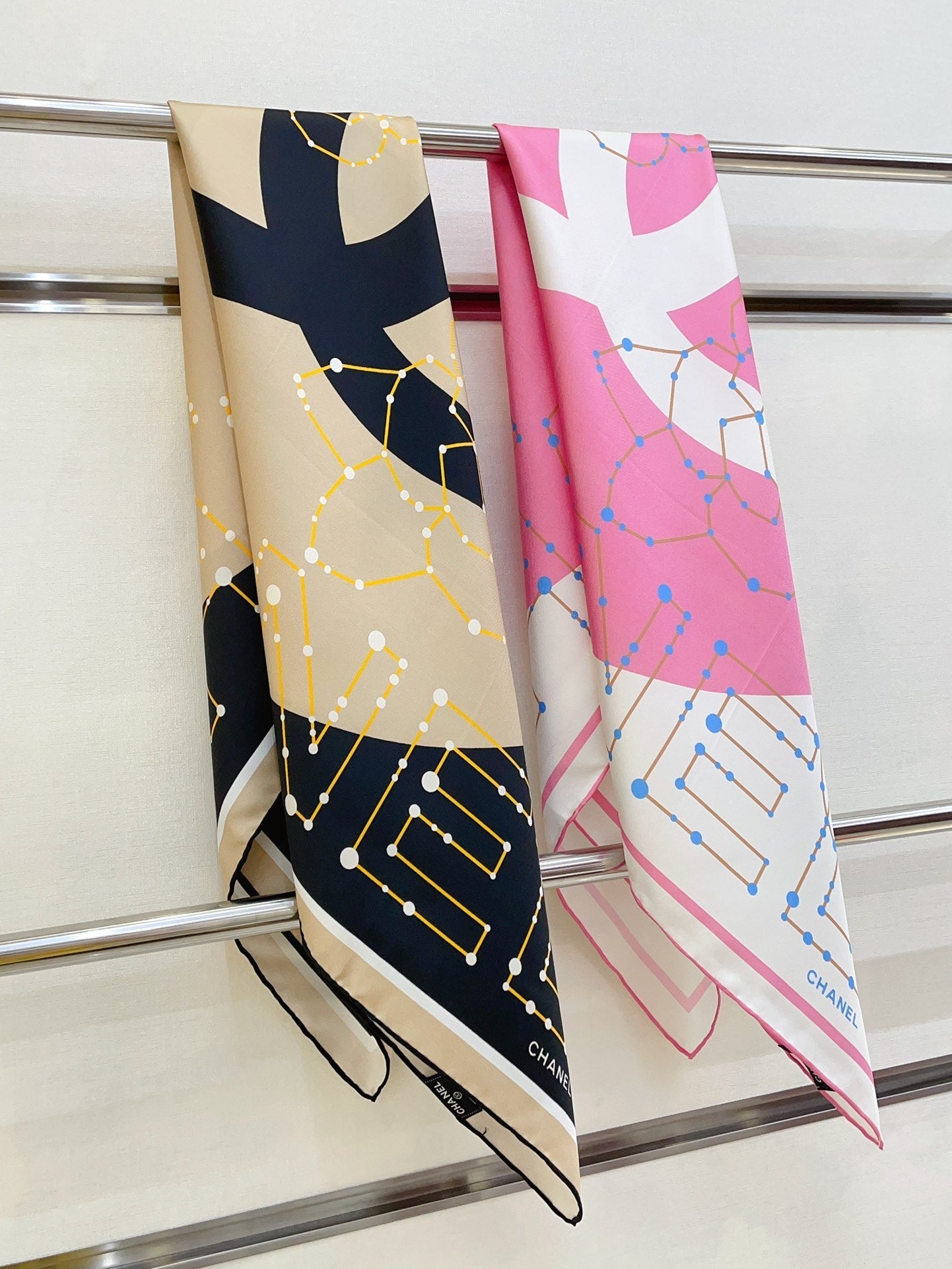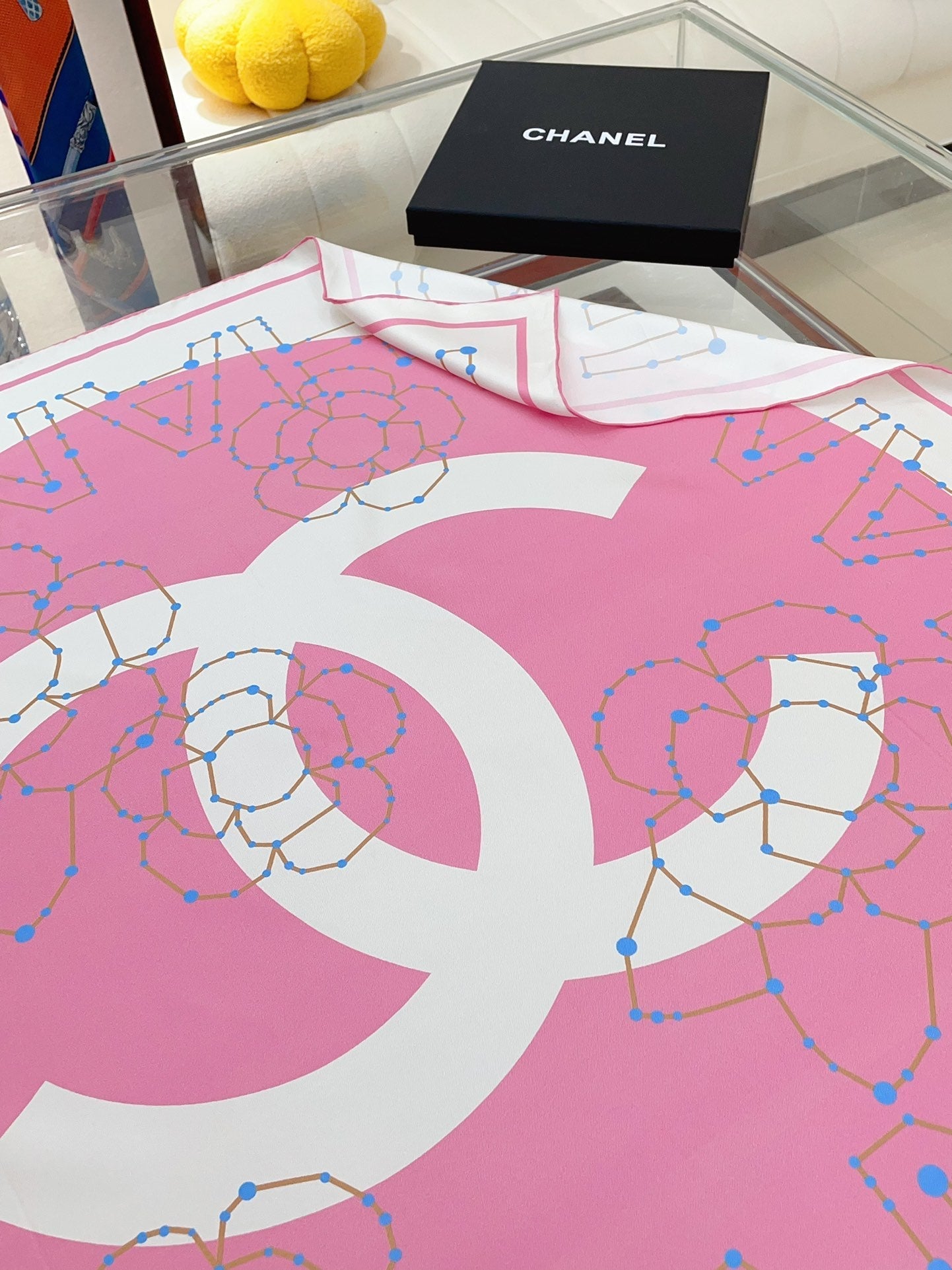 CC Square Scarf 90 CM In White Mix Pink Silk Twill 174874