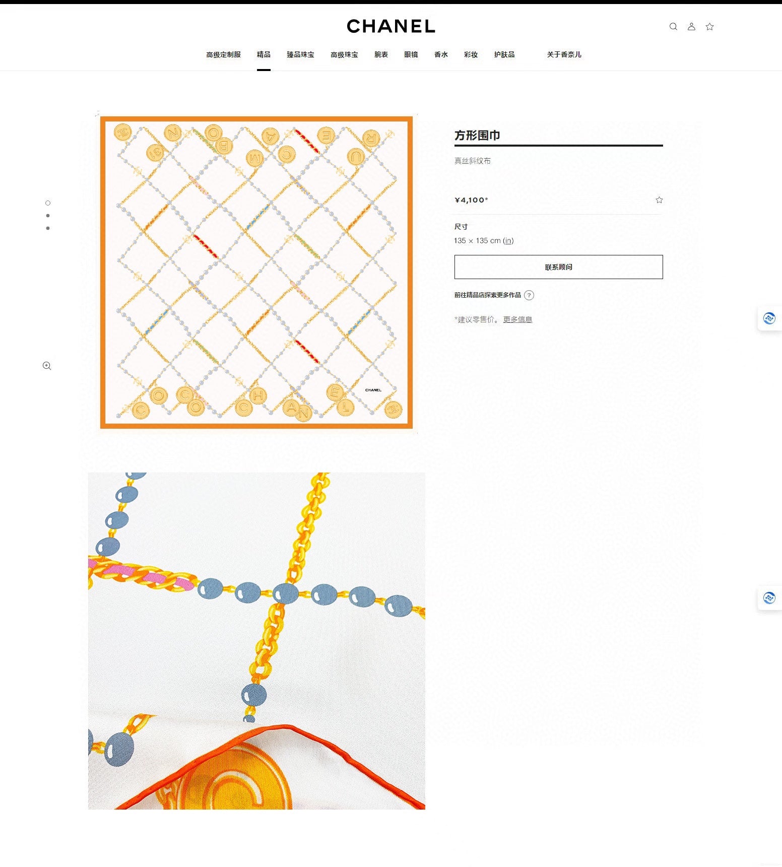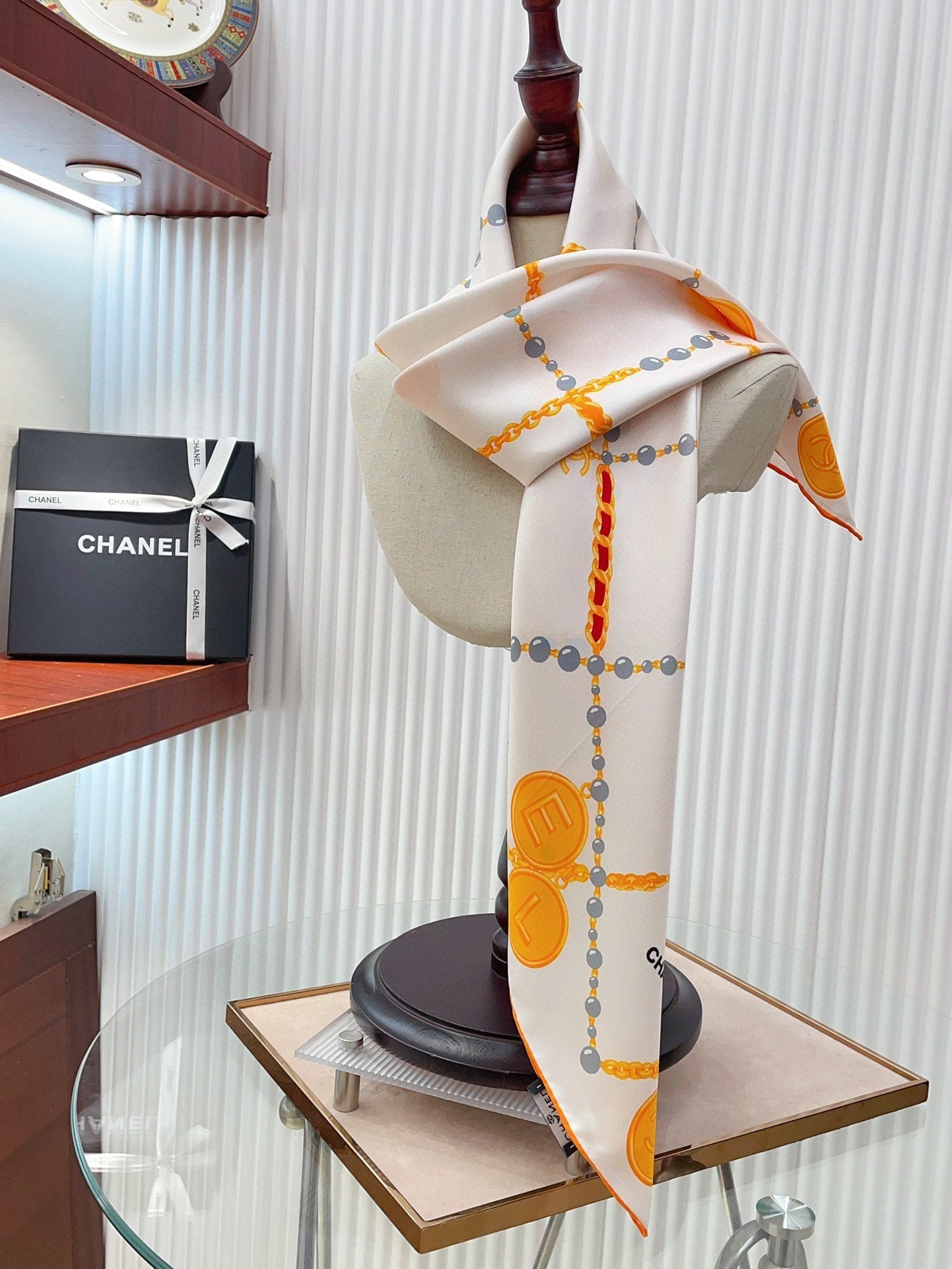 CC Square Scarf 90 CM In White Mix Yellow Silk Twill 176345