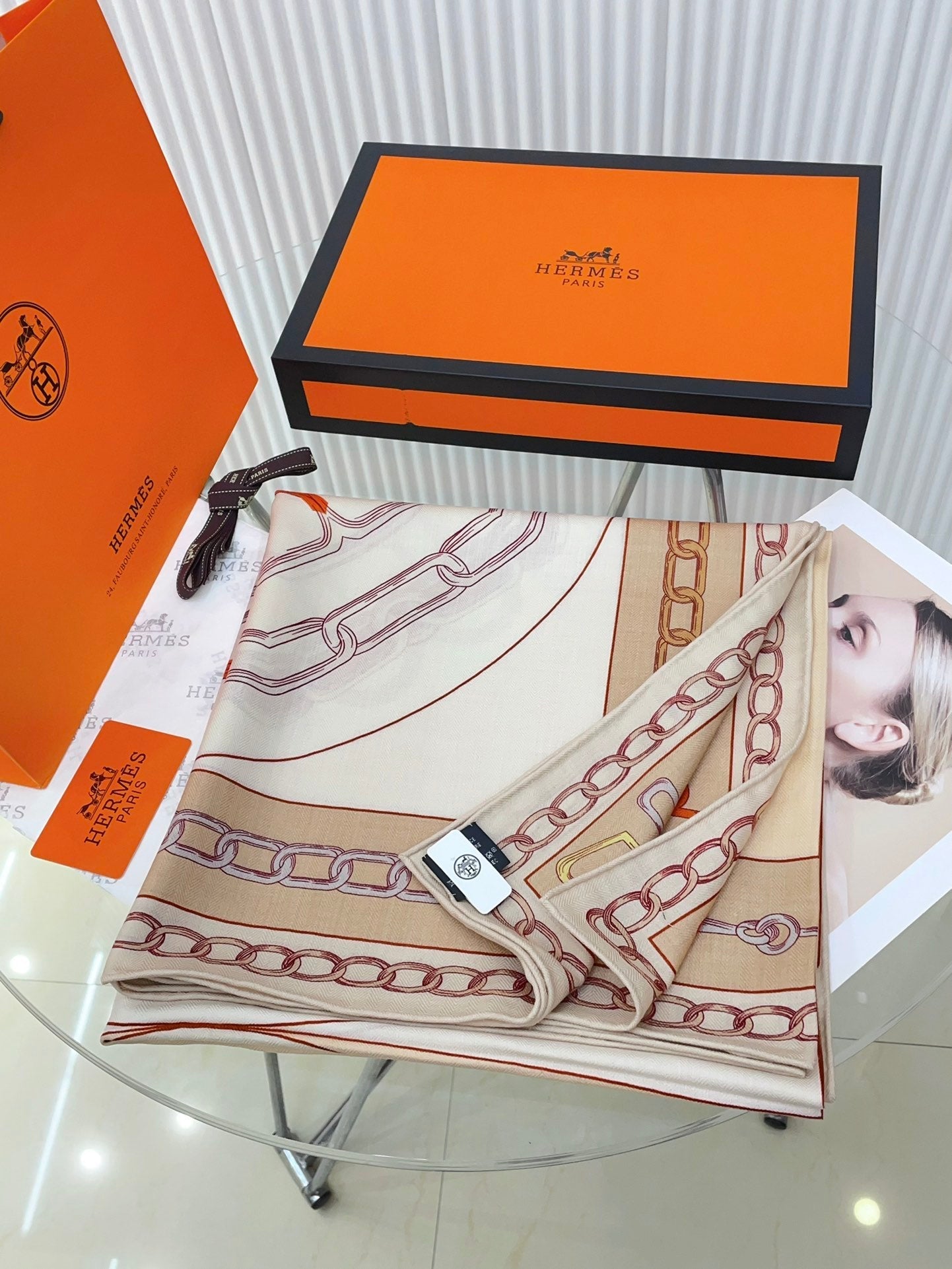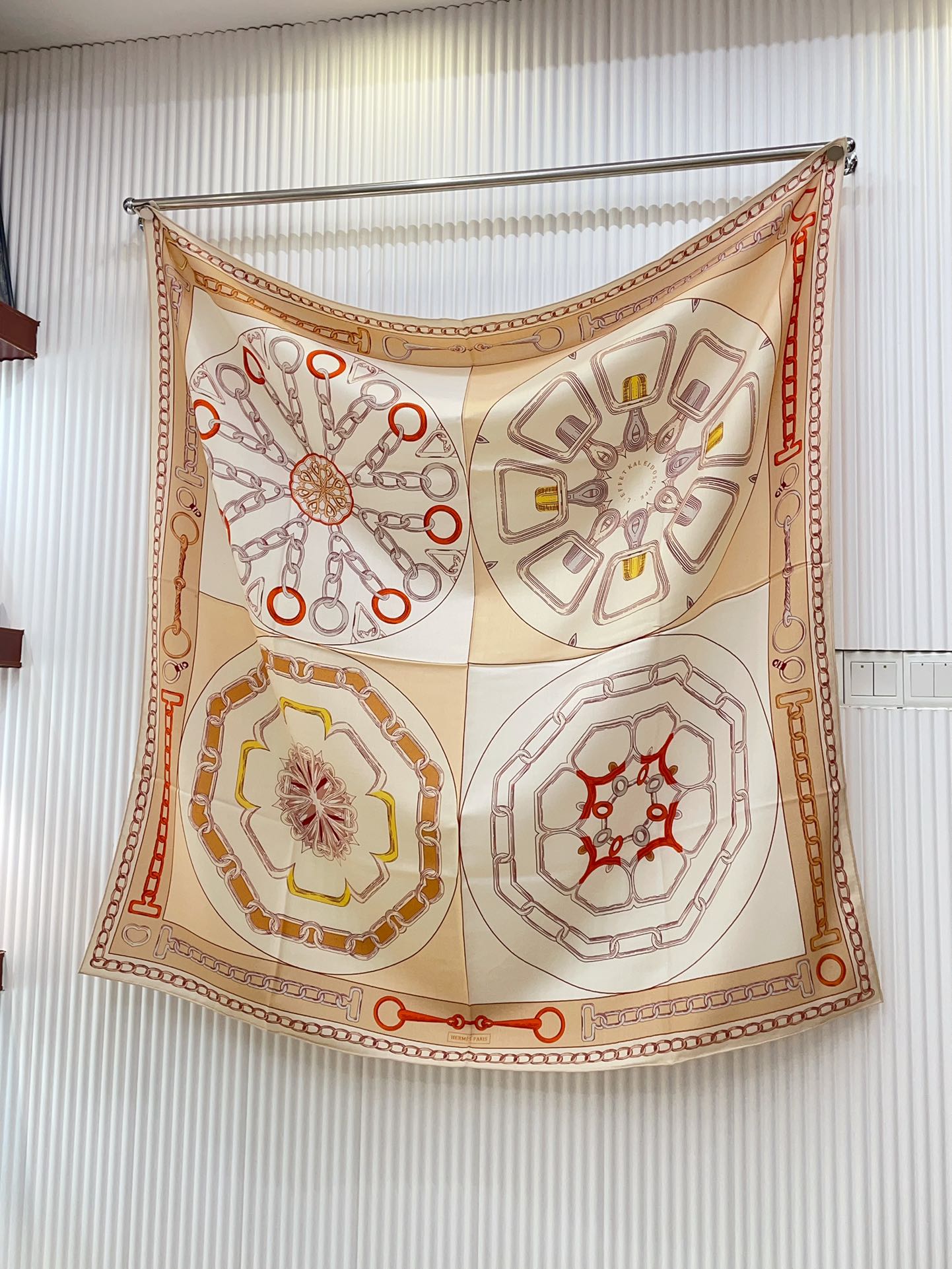Effet Kaleidoscope Shawl 135 CM In Beige Colorful Cashmere And Silk 382610