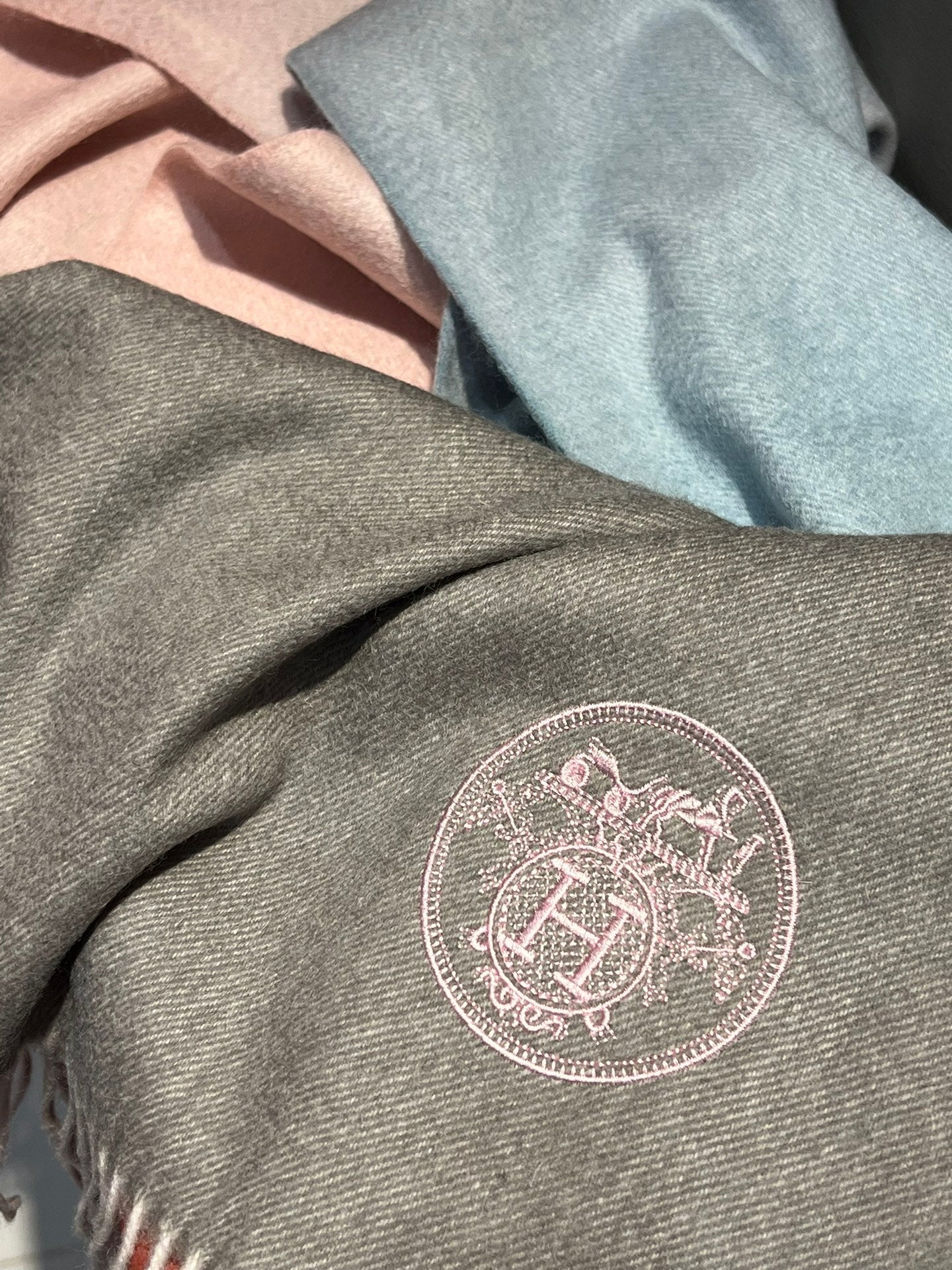 Scarf 190 CM In Grey Pink Mix Light Blue Cashmere