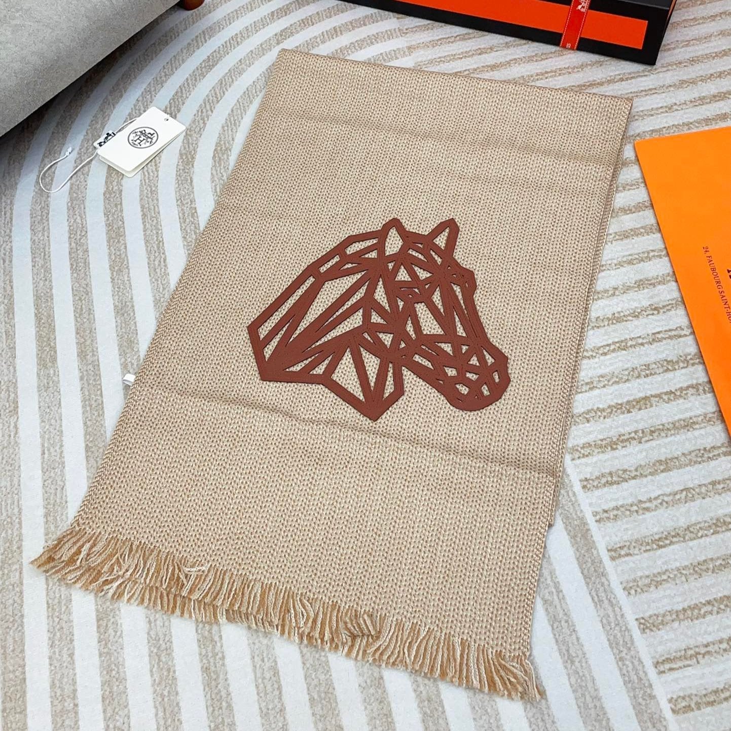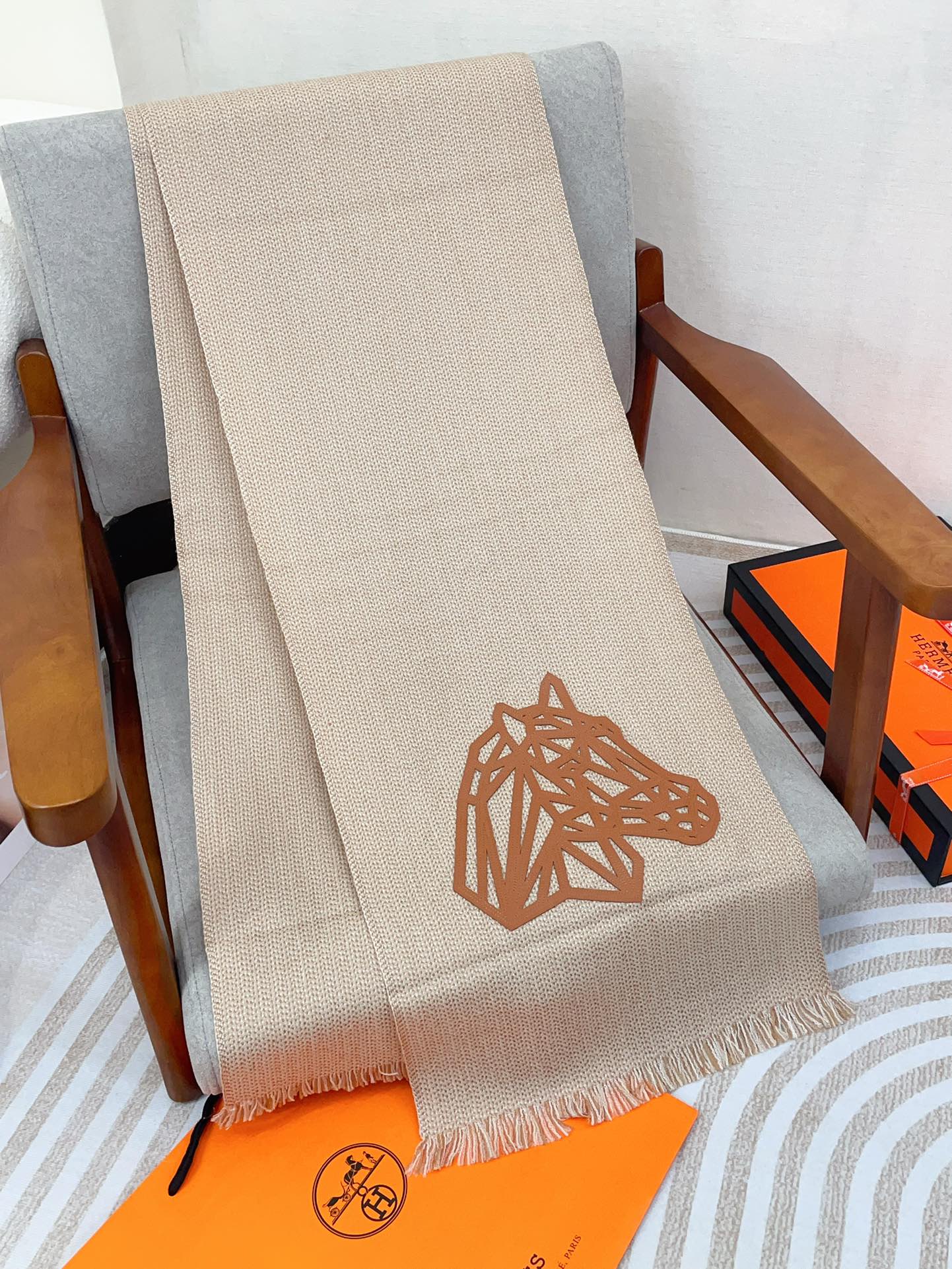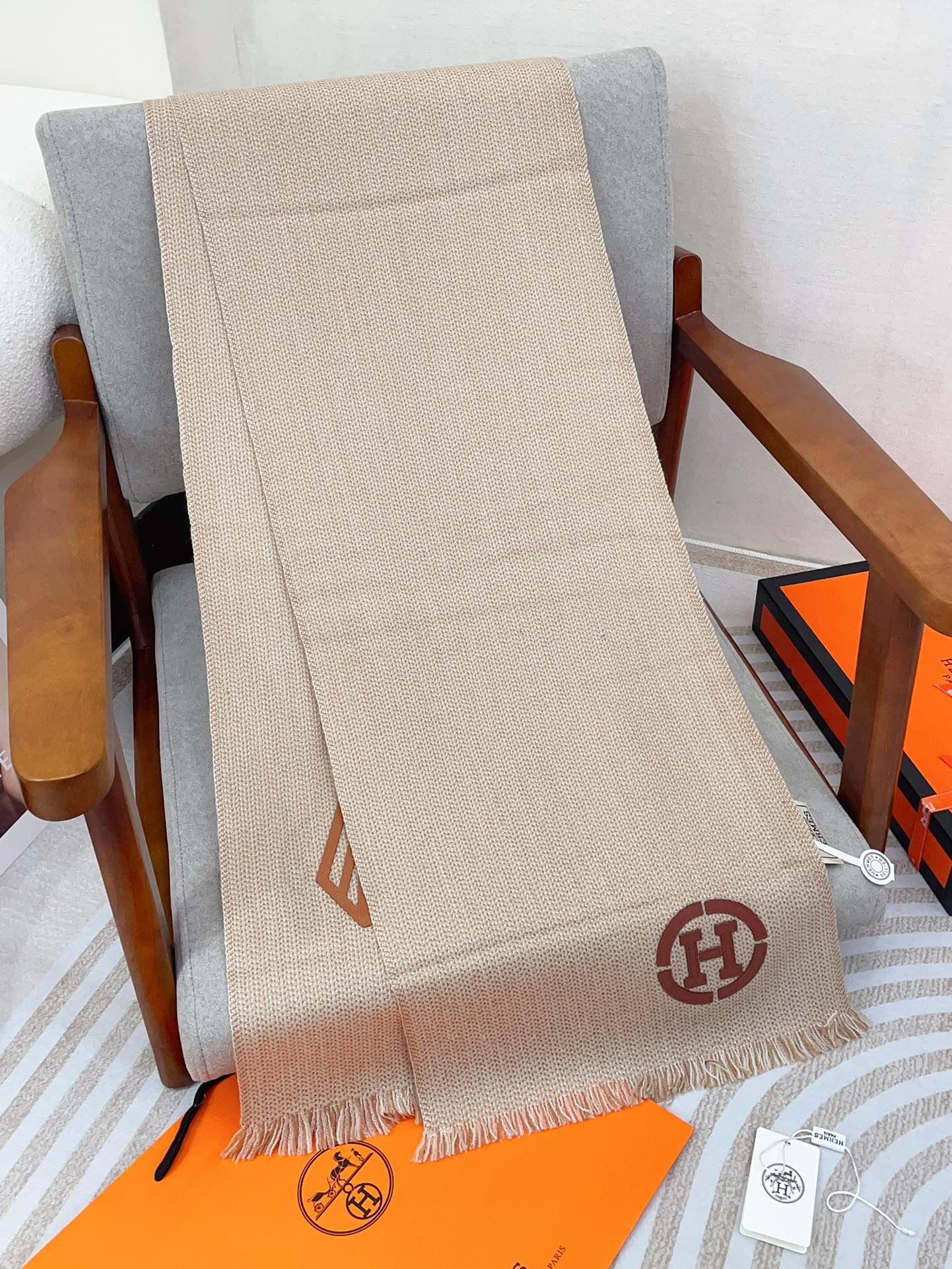 Scarf 200 CM Beige Thick Knit Fabric