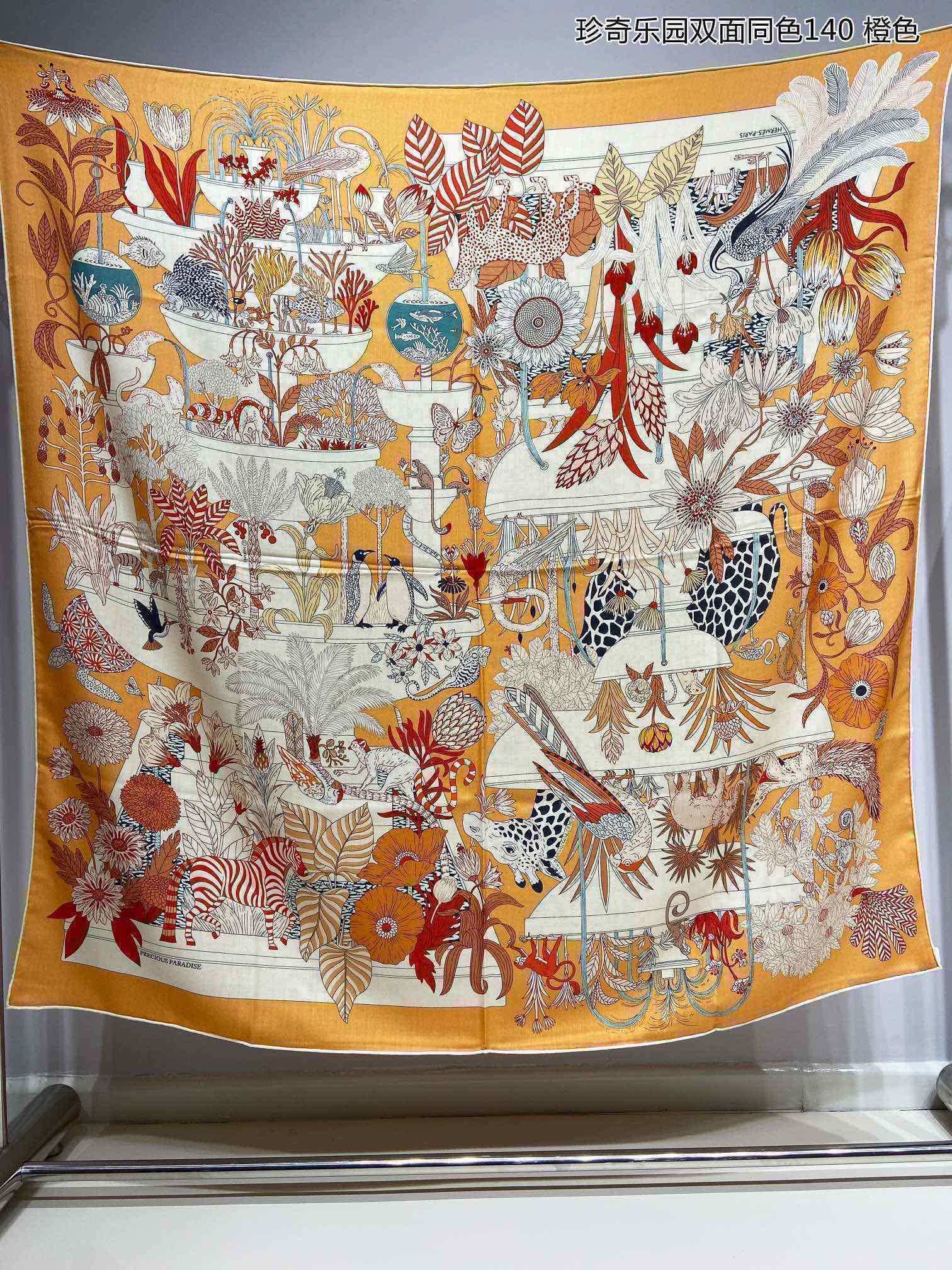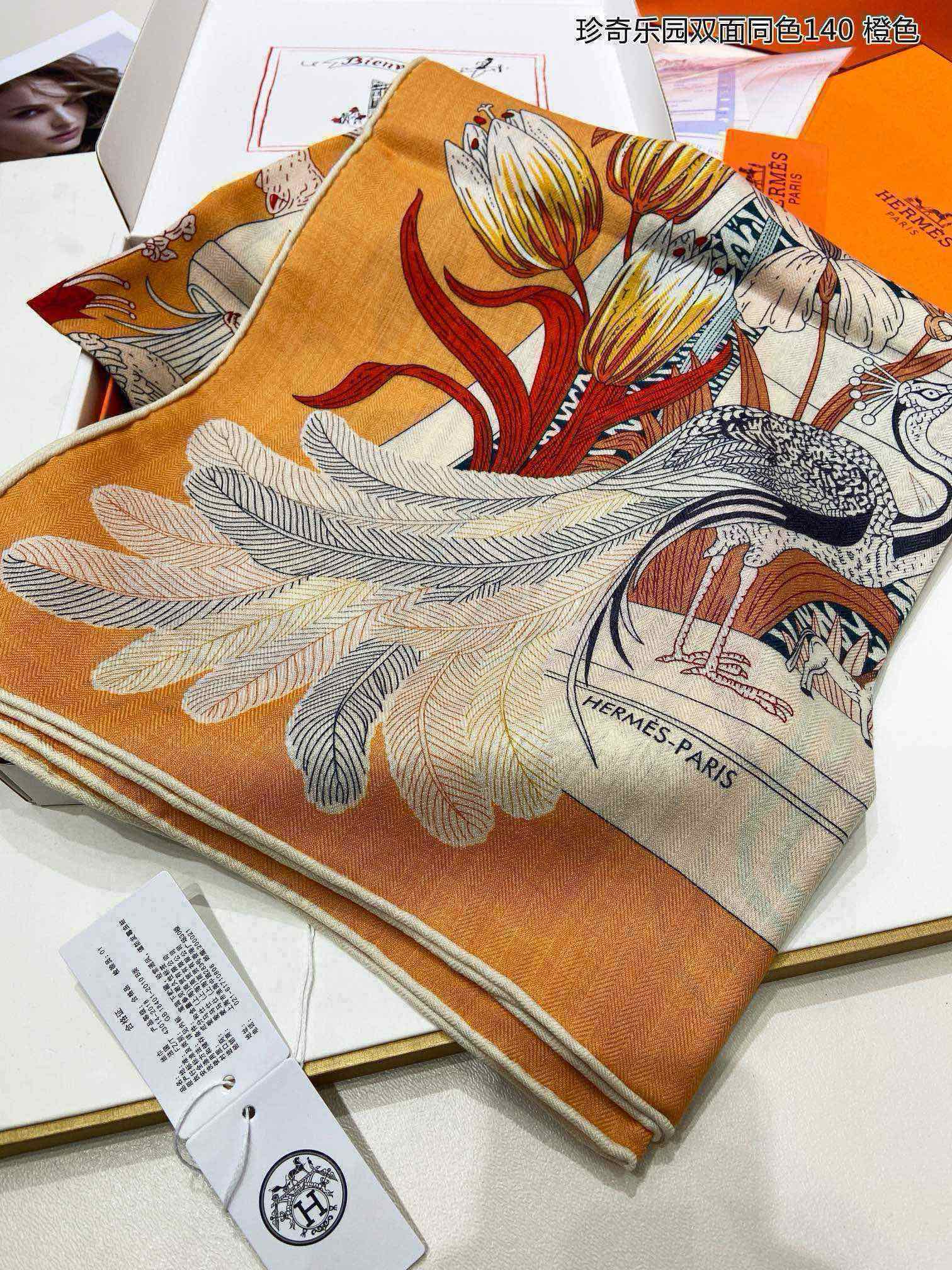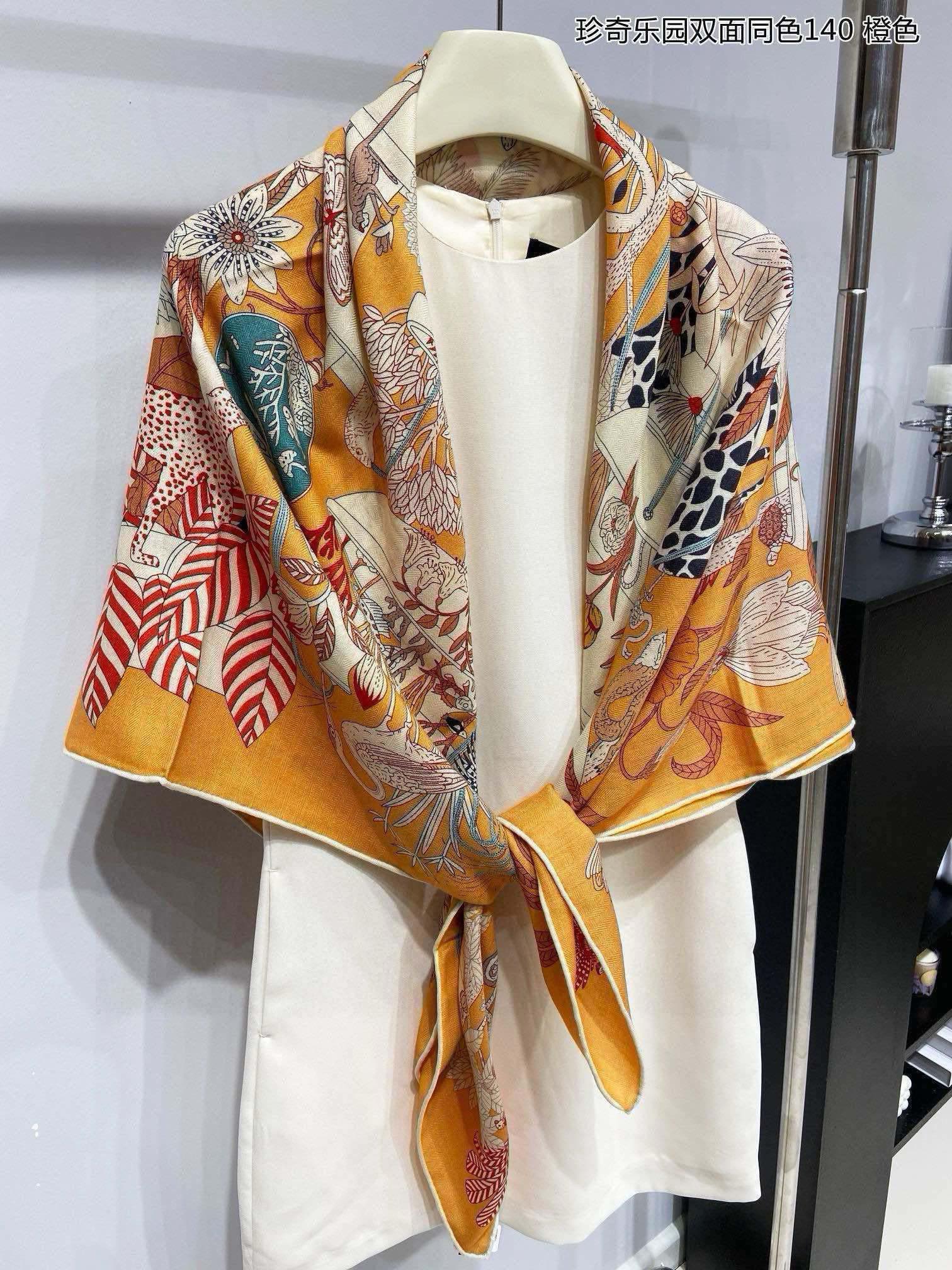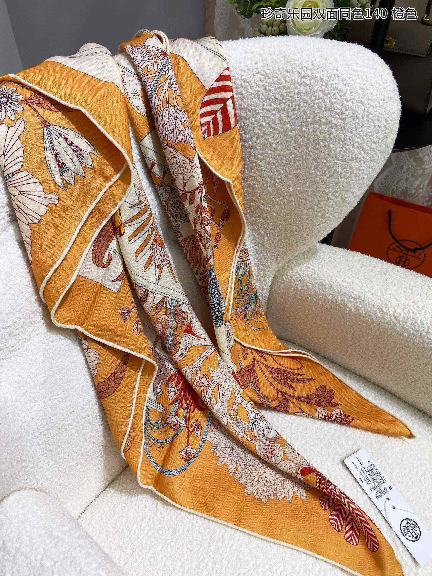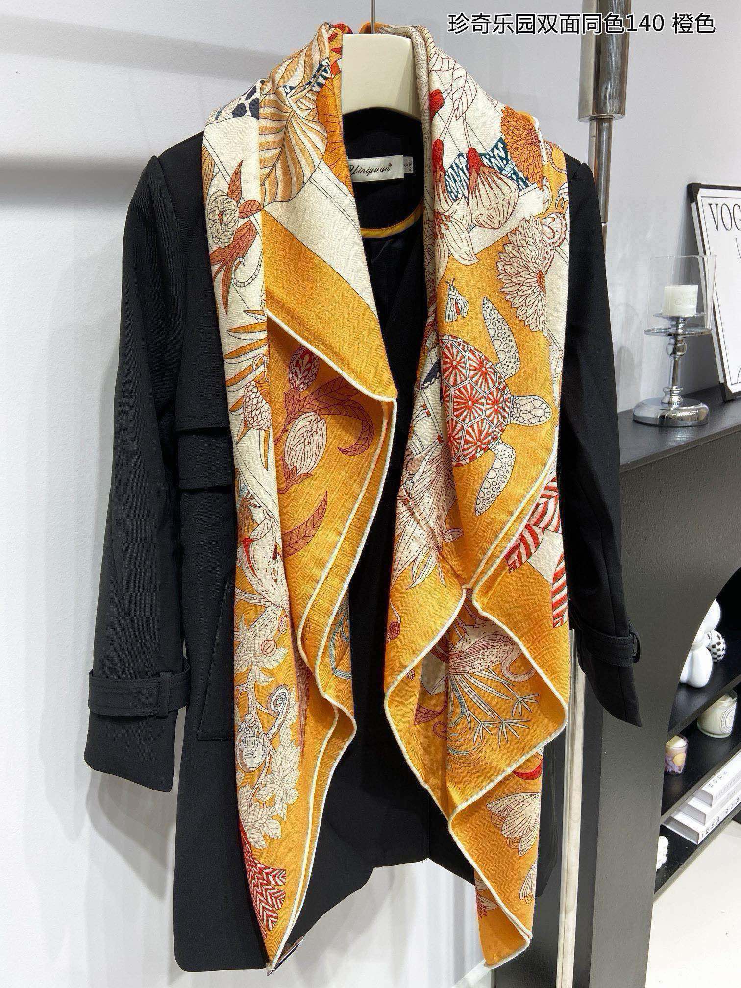 Square Scarf 140 CM Yellow Orange Colorful Cashmere And Silk