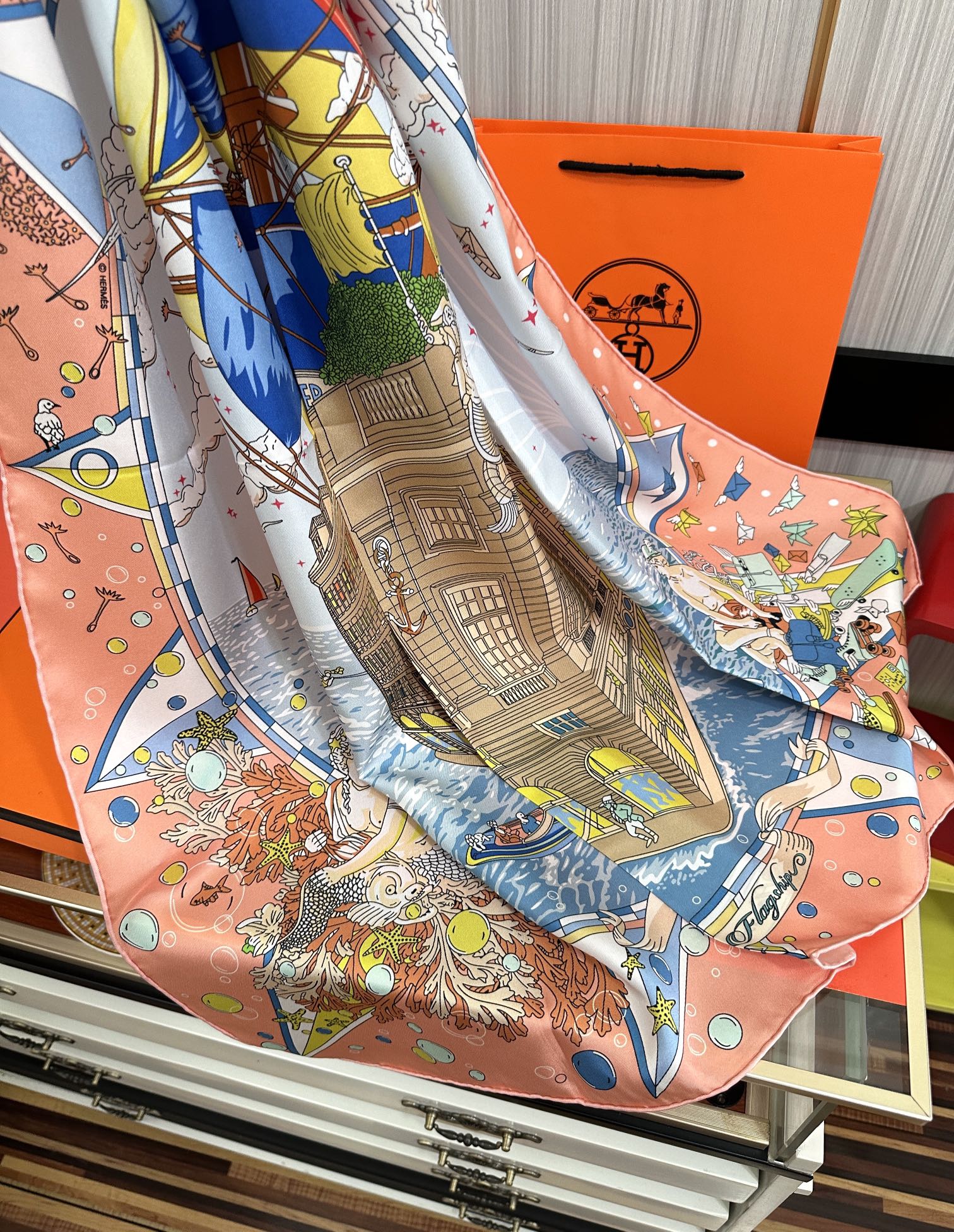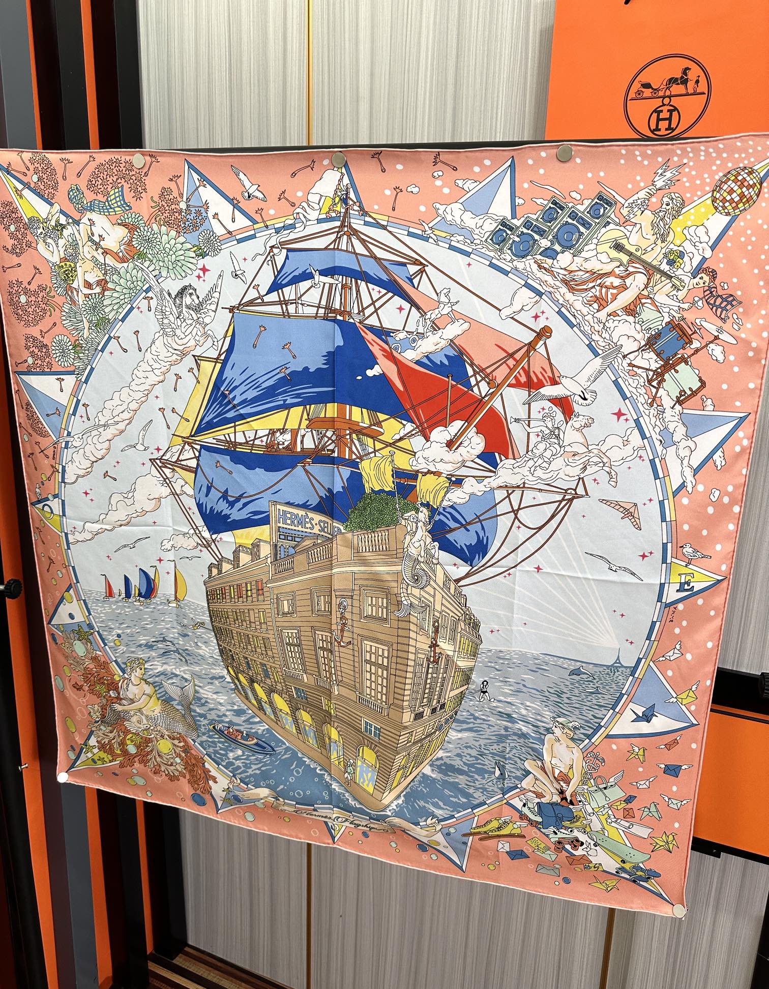 Square Scarf 90 CM Pink Orange Colorful Silk