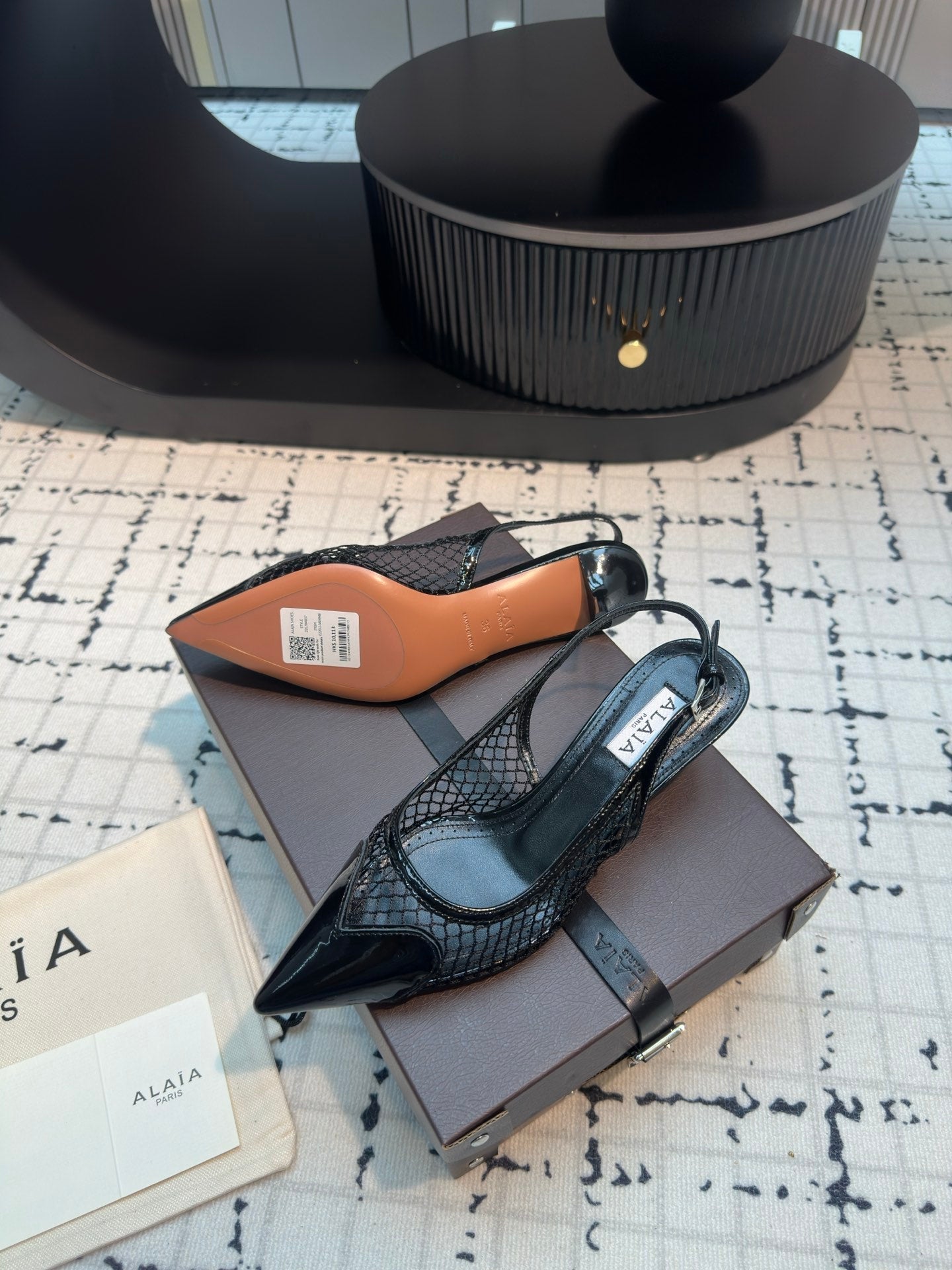 ALAIA SLINGBACKS 5 CM IN BLACK CALFSKIN WITH MESH