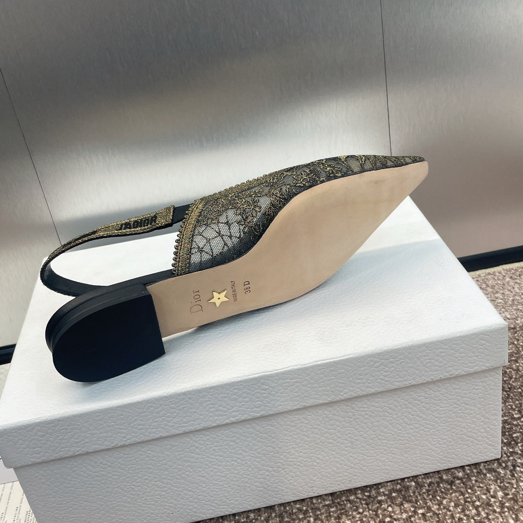 cd slingback flat transparent mesh embroidered black sun motif