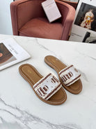 Celine 25C Slippers Beige mix Brown Fabric with Calfskin 238160