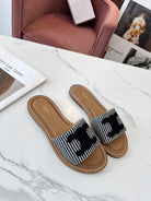 Celine 25C Slippers Black Fabric with Calfskin 238168
