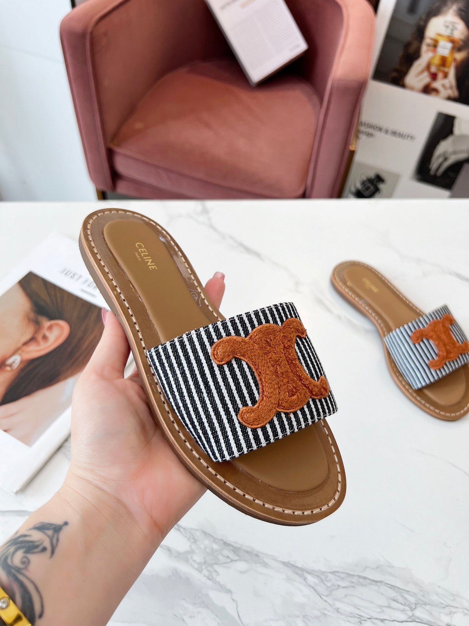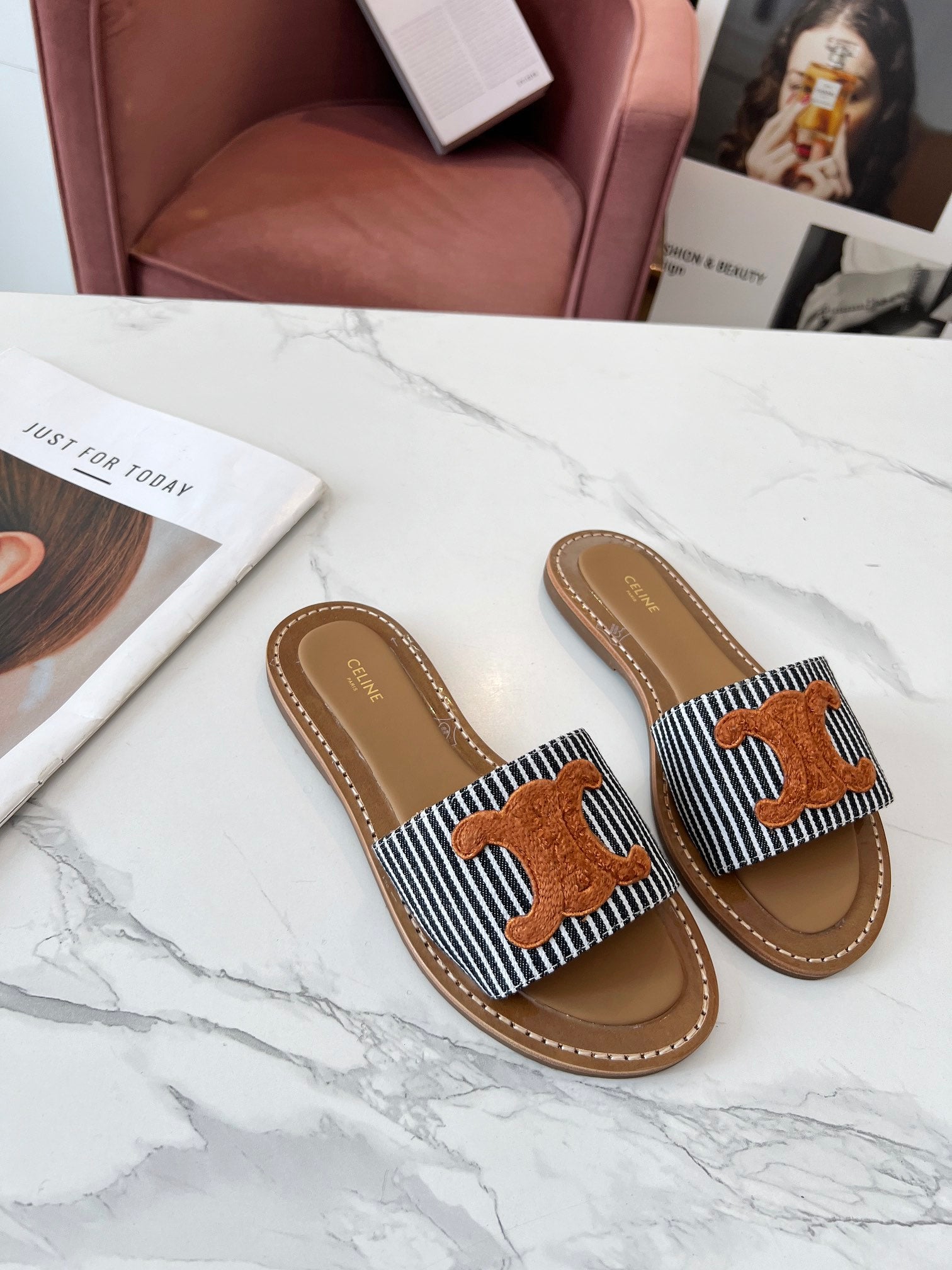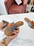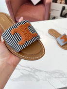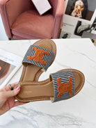Celine 25C Slippers Black mix Orange Fabric with Calfskin 238170