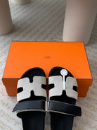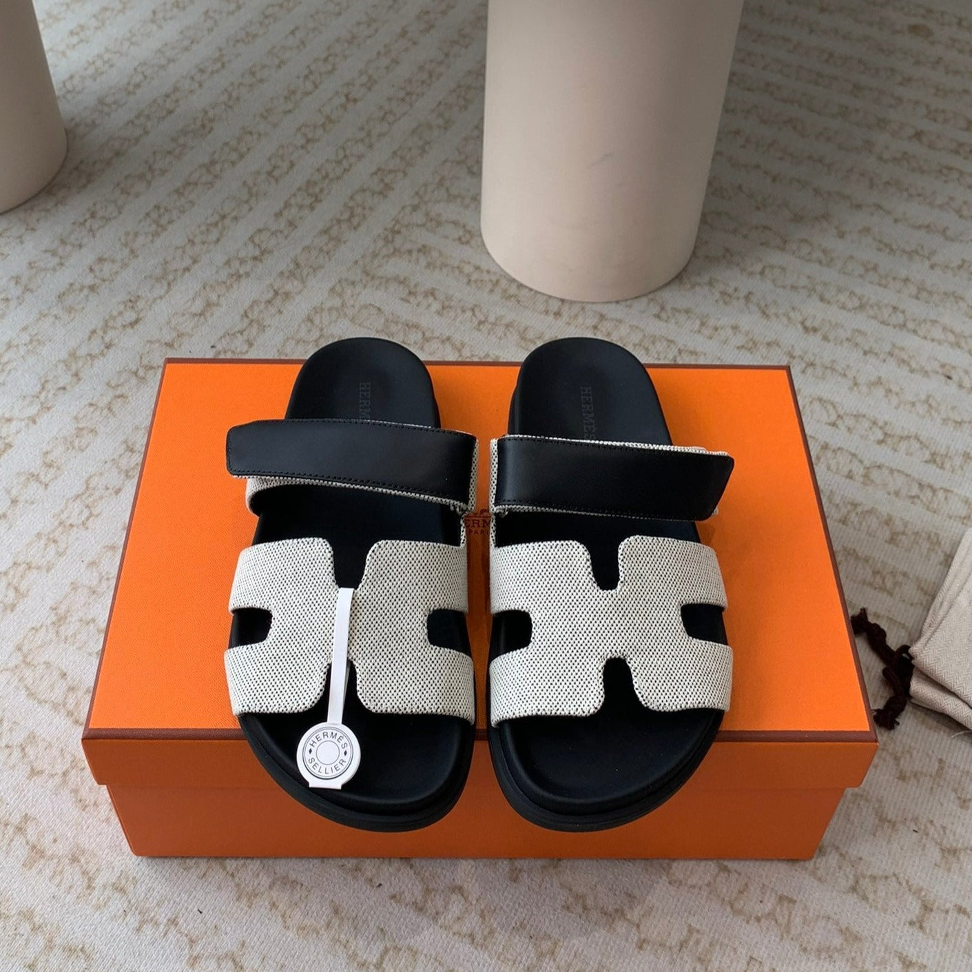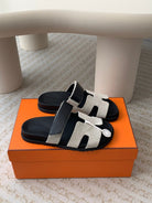 chypre sandal white canvas black calfskin