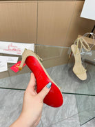 CL So Me 105 mm Strappy Sandal Cream Imported Rivets with Sheepskin 251017