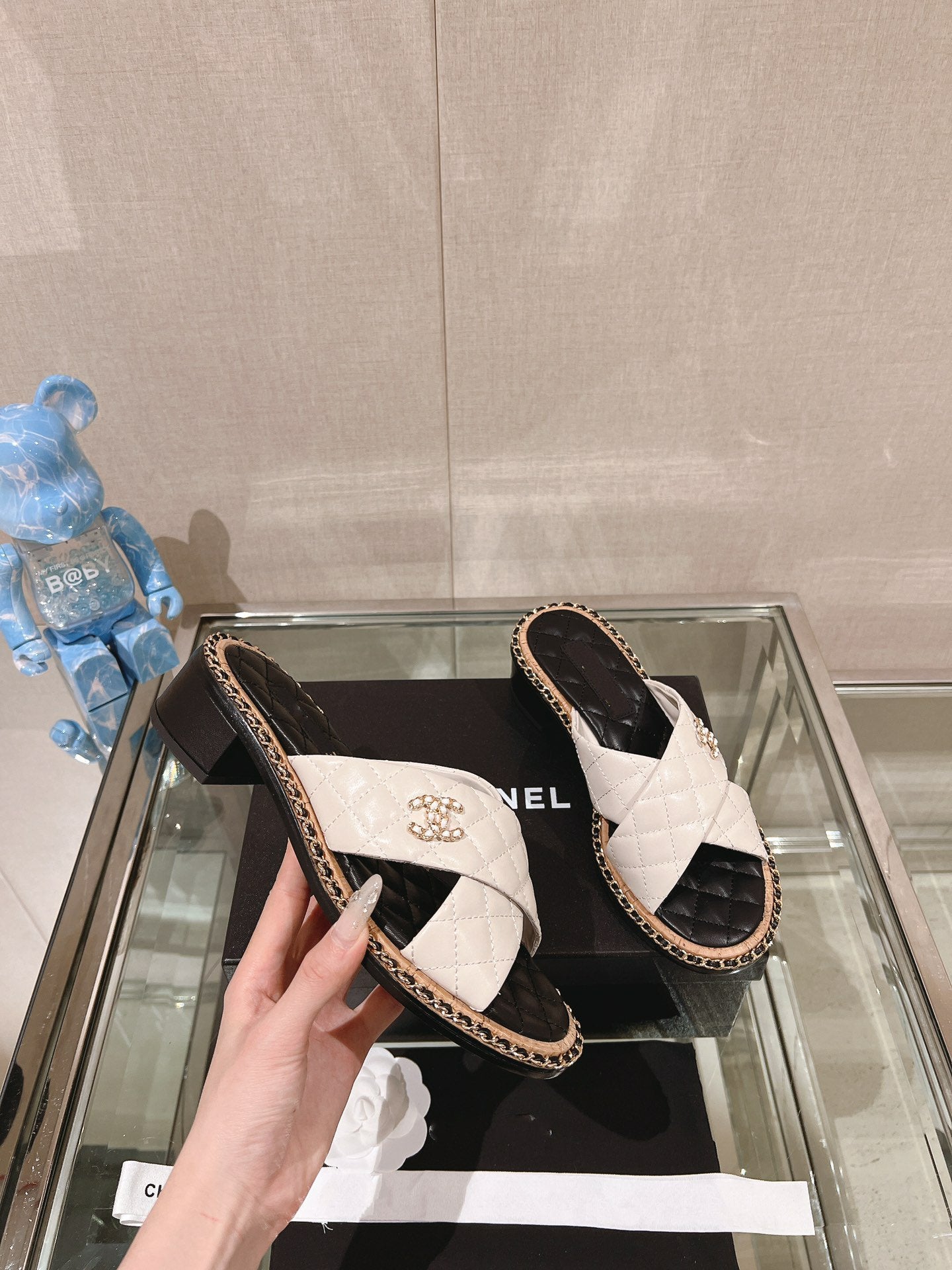 cross slippers 50 white black quilted lambskin