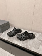 CUT-OUT MULES IN BLACK RUBBER