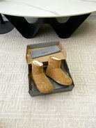FLAT ANKLE BOOTS IN CIDER BROWN SUEDE AND SHEARLING LINING