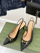 GG Horsebit Slingback 85MM Black GG Leather Point Toe