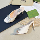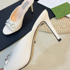 GG Women's Horsebit mid-heel slide sandal in glossy White leather